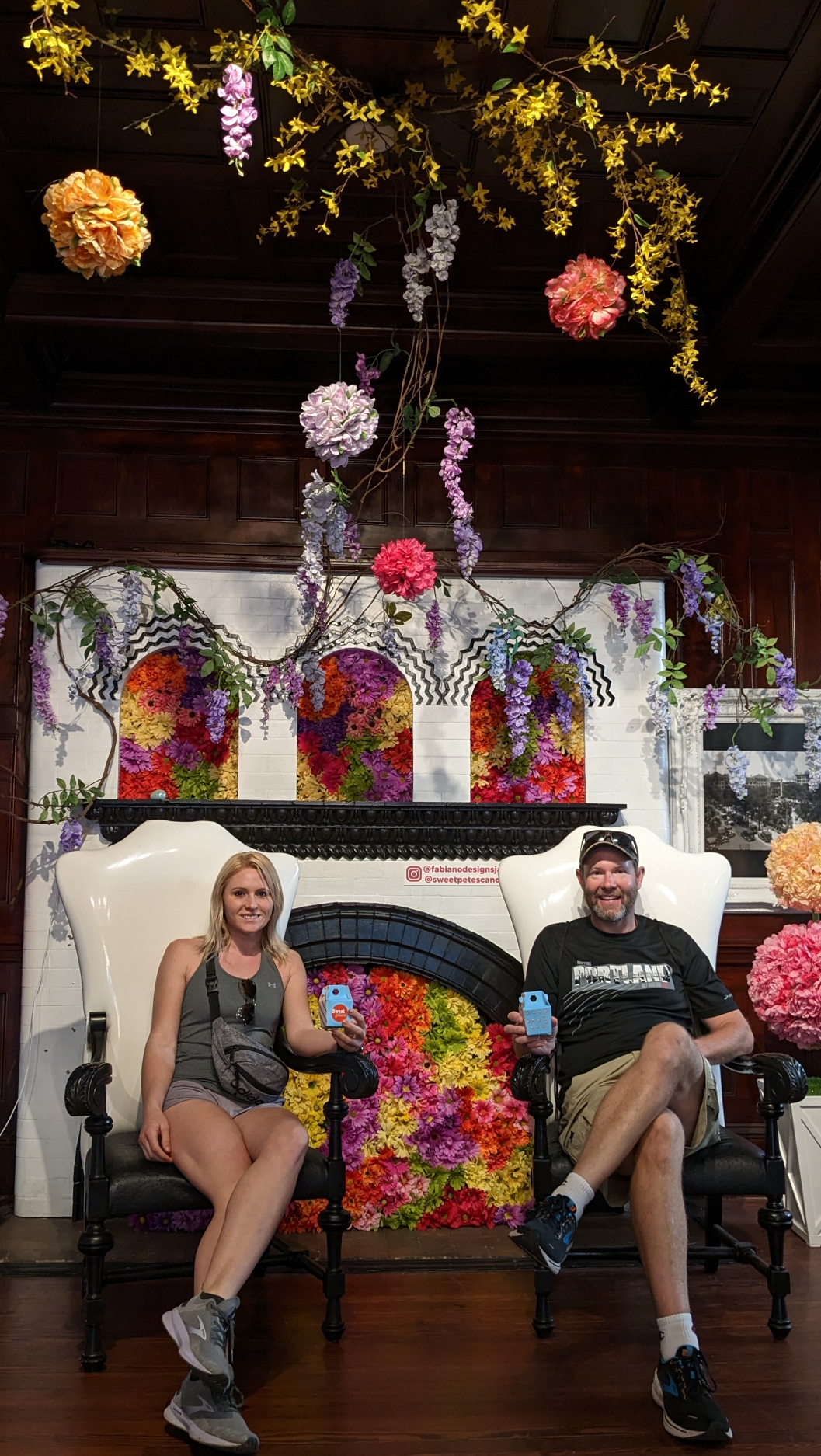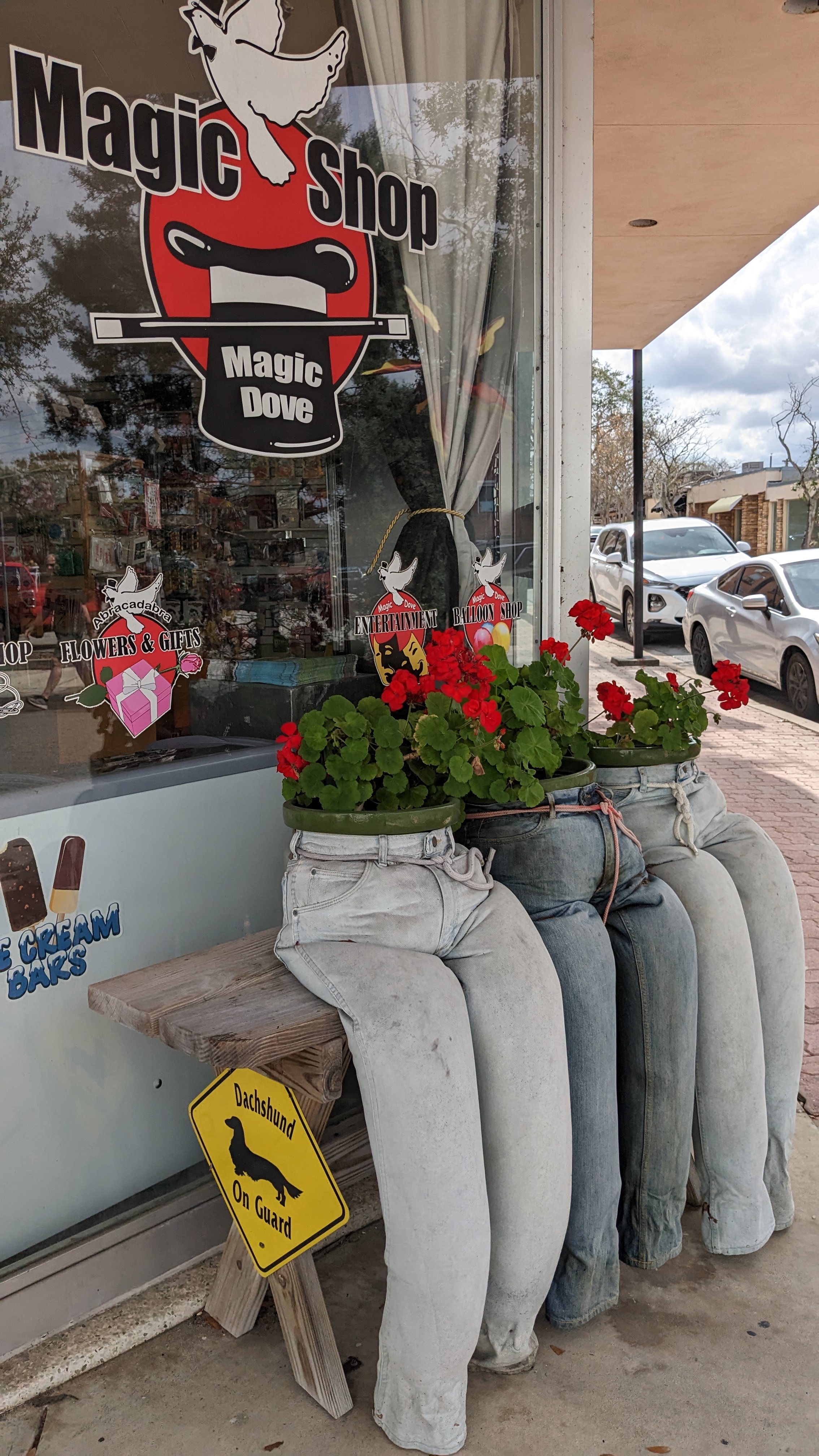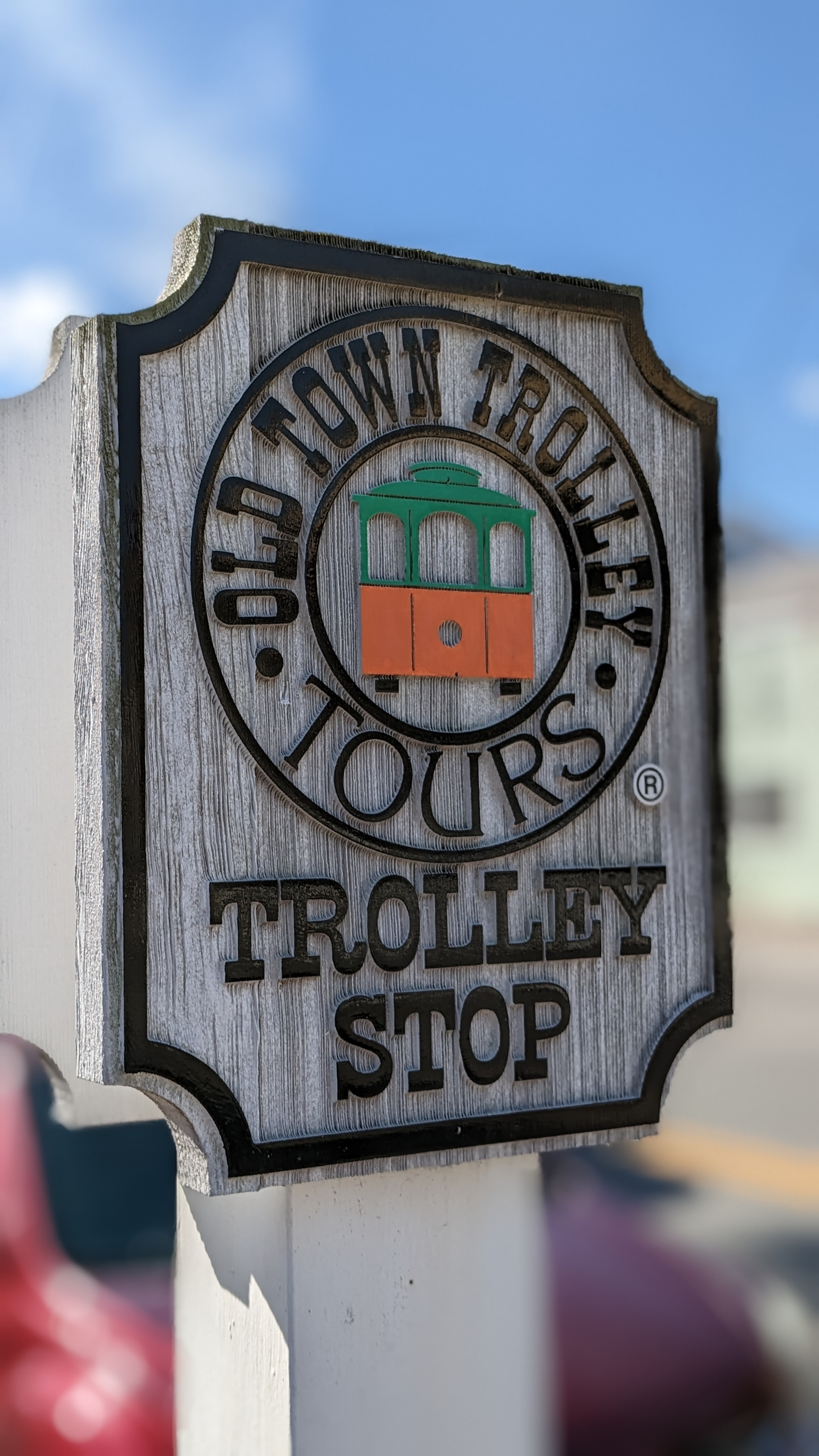 On the last day it was time to find a way to address Tonia’s allergies. The trees were blooming earlier than she was used to in WA and earlier where we were with the warmer-than-usual weather. We popped on the trolley to get closer to a pharmacy. We hopped off and walked over to get more medicine. On the way back, we hit up Hazel’s Hot Dogs for some lunch grub. Then we wrapped up the trolley tour of the town.