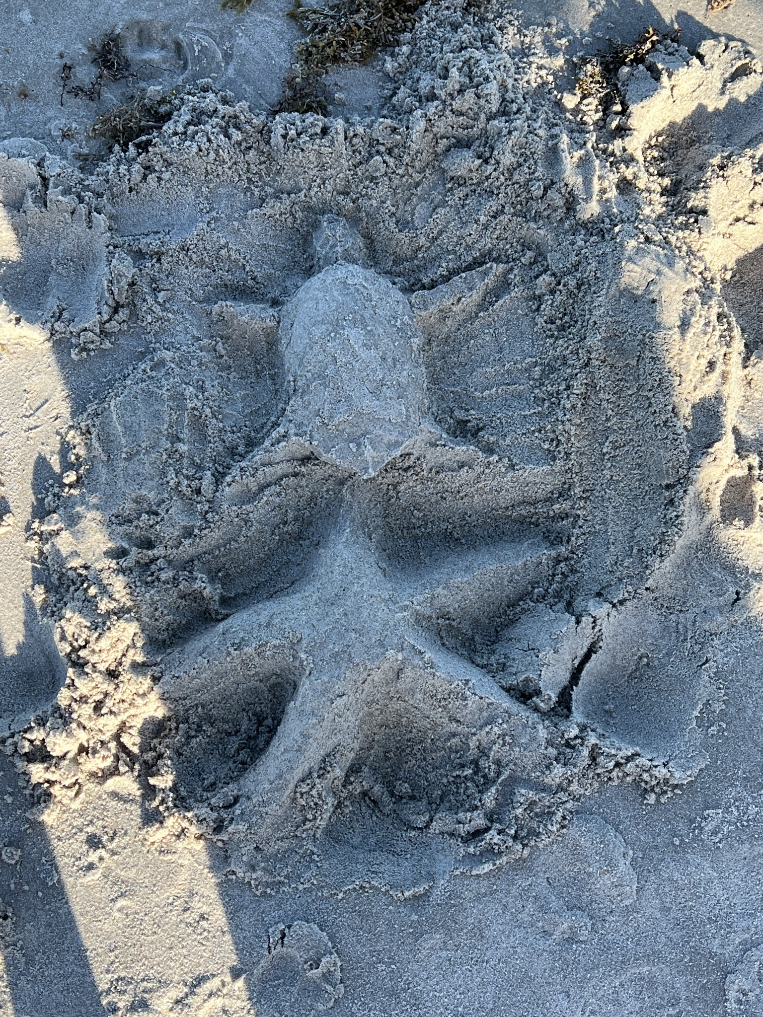 When we got back to the marina, Michael found a horseshoe crab molt. Ugly creatures but they are pretty cool and prehistoric! He’s saving it for his collection. Of what? Random things found on the beach.