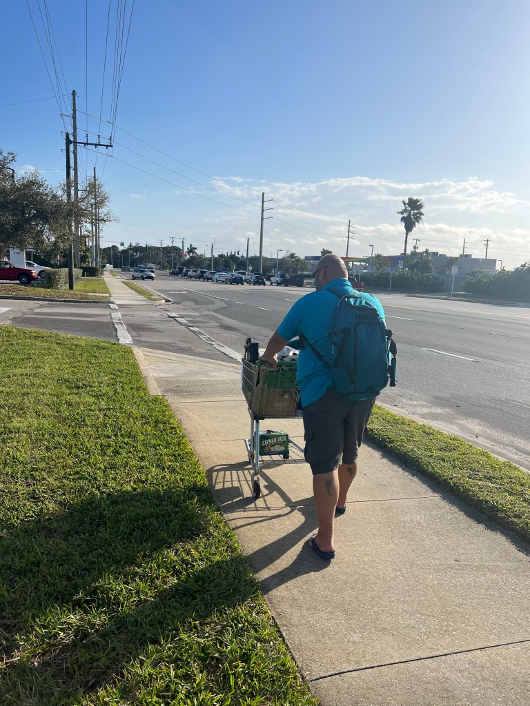 The next stop on the trip was a one-and-a-half-day layover in Melbourne (Florida). We originally planned for a day but that stretched to two to give us a bit more down time. On the arrival day we did a bit of provisioning. There was a marina close to our anchorage and only a block away from the Publix grocery store as well as a few department stores. Always good to have close access. The checkout boy at the store told us to borrow a cart so we used it for the block back to the marina.