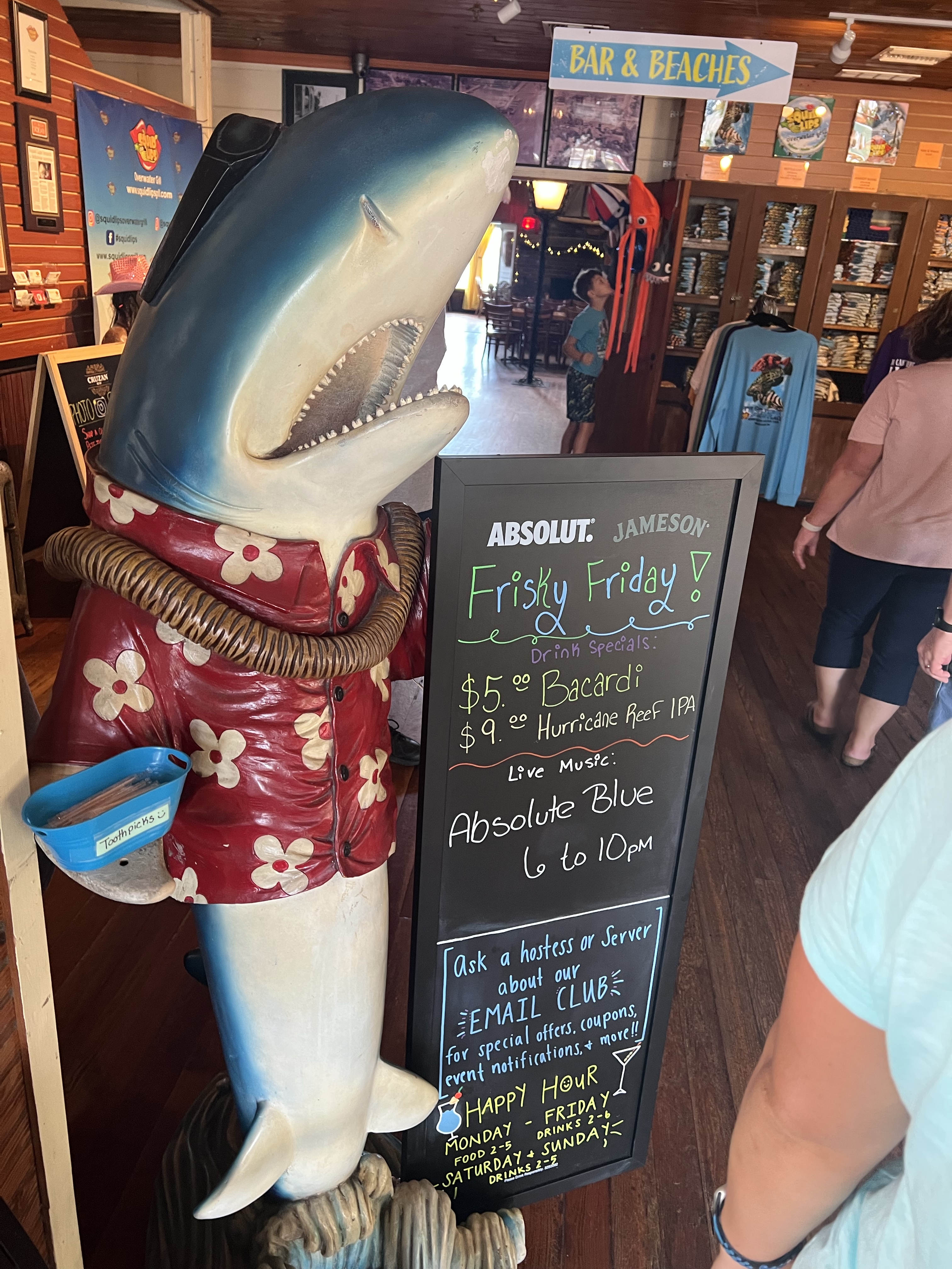 When the fun was had shopping, it was time for lunch. And when there is a place named Squid Lips, you have to go! It was a fun restaurant and we saw a manatee surface from our dining viewpoint.