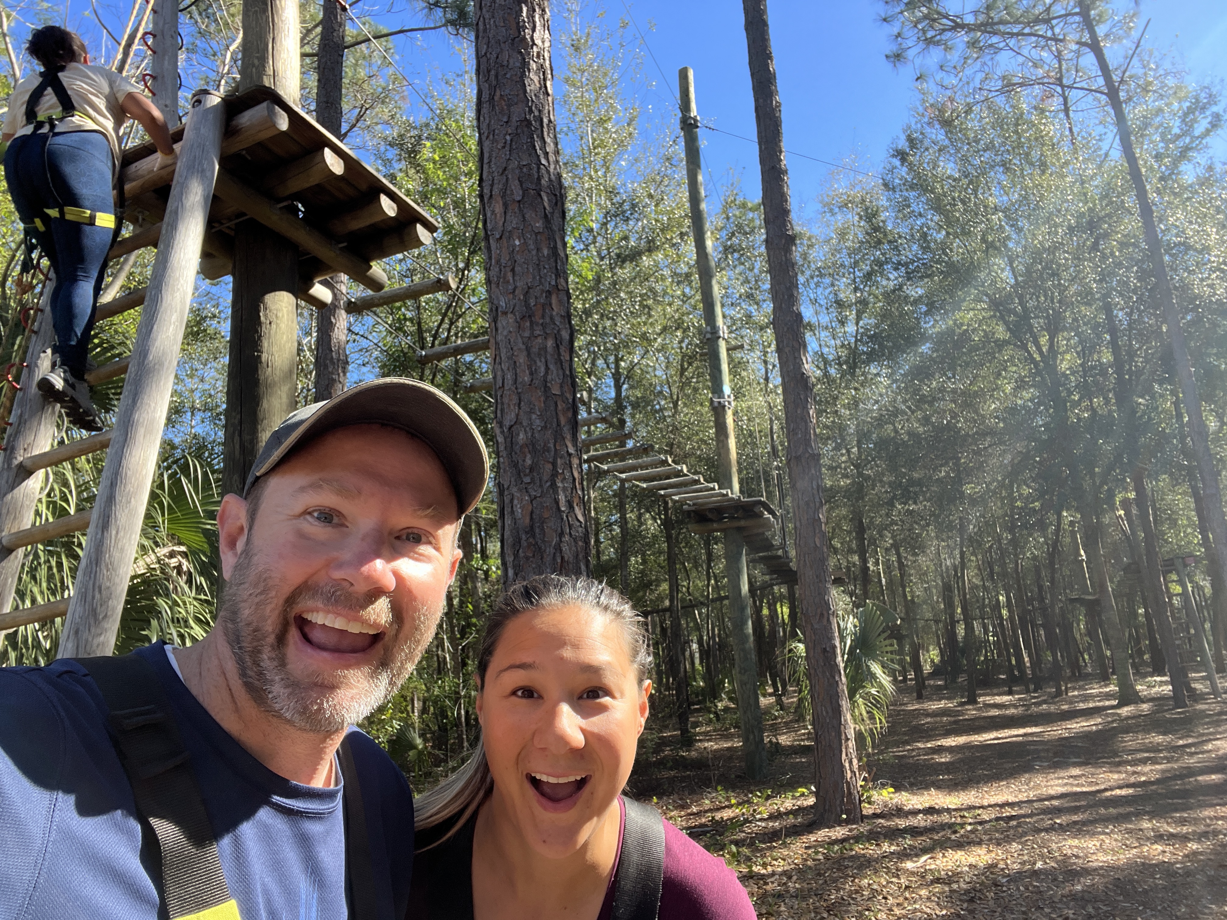 On the final day in the area, we headed back to Orlando to hit the Orlando Tree Trek Adventure Park. The Trek is not a normal obstacle course. The catch is it’s suspended in the air. It took me a few obstacles to get over my aversion to heights, but I managed to complete the four courses included. Michael was so excited that he was now tall enough to do the adult course. He’d been talking about it for days and I think he may have been more excited for it than Universal.