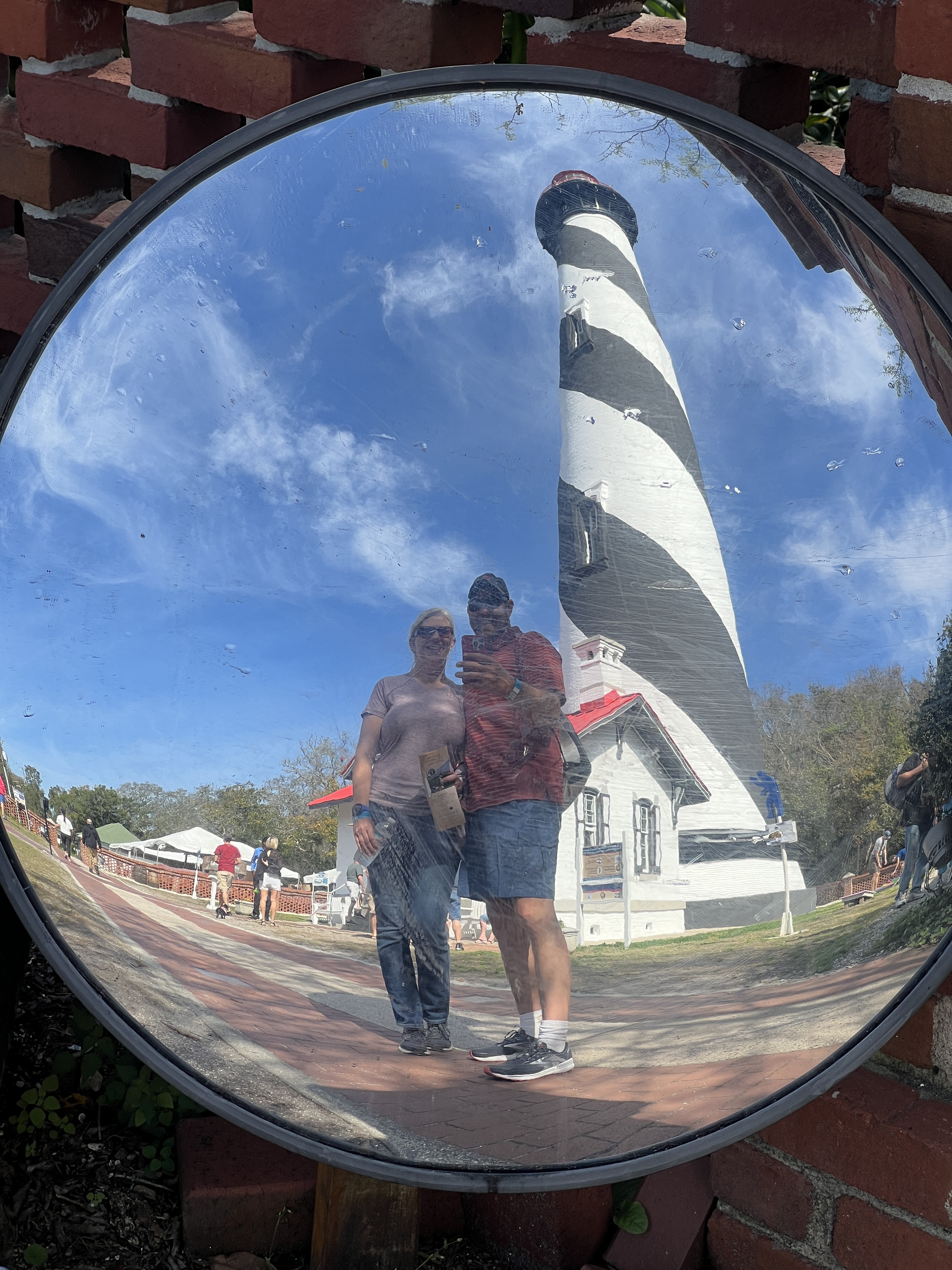 Tonia and I decided it was a good morning for a walk to check out the St. Augustine Light House. We started the journey by crossing the Bridge of Lions and checking out the lion statues on each end. Then we found coffee and “hot” cocoa. We happened upon a Whetstone Chocolates shop and had to stop. The lady at the shop was the nicest person and we had some good conversation while waiting for our drinks.