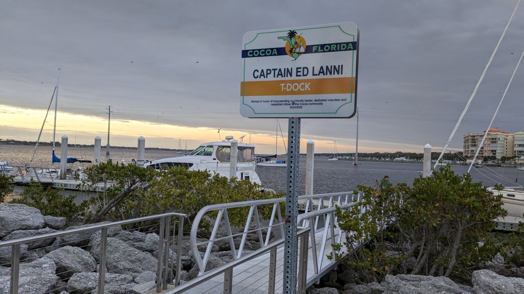 Up bright and early the next day, we headed for Cocoa. Cocoa had some damage during Hurricane Nicole in November and we knew some of their docks were destroyed. And the docks were only two years old. Luckily the big boat dock survived, though no longer with power or water. Unluckily for us, the wind was strong from the south and the stay was a bit rocky. With a few additional fenders we weathered it decently.