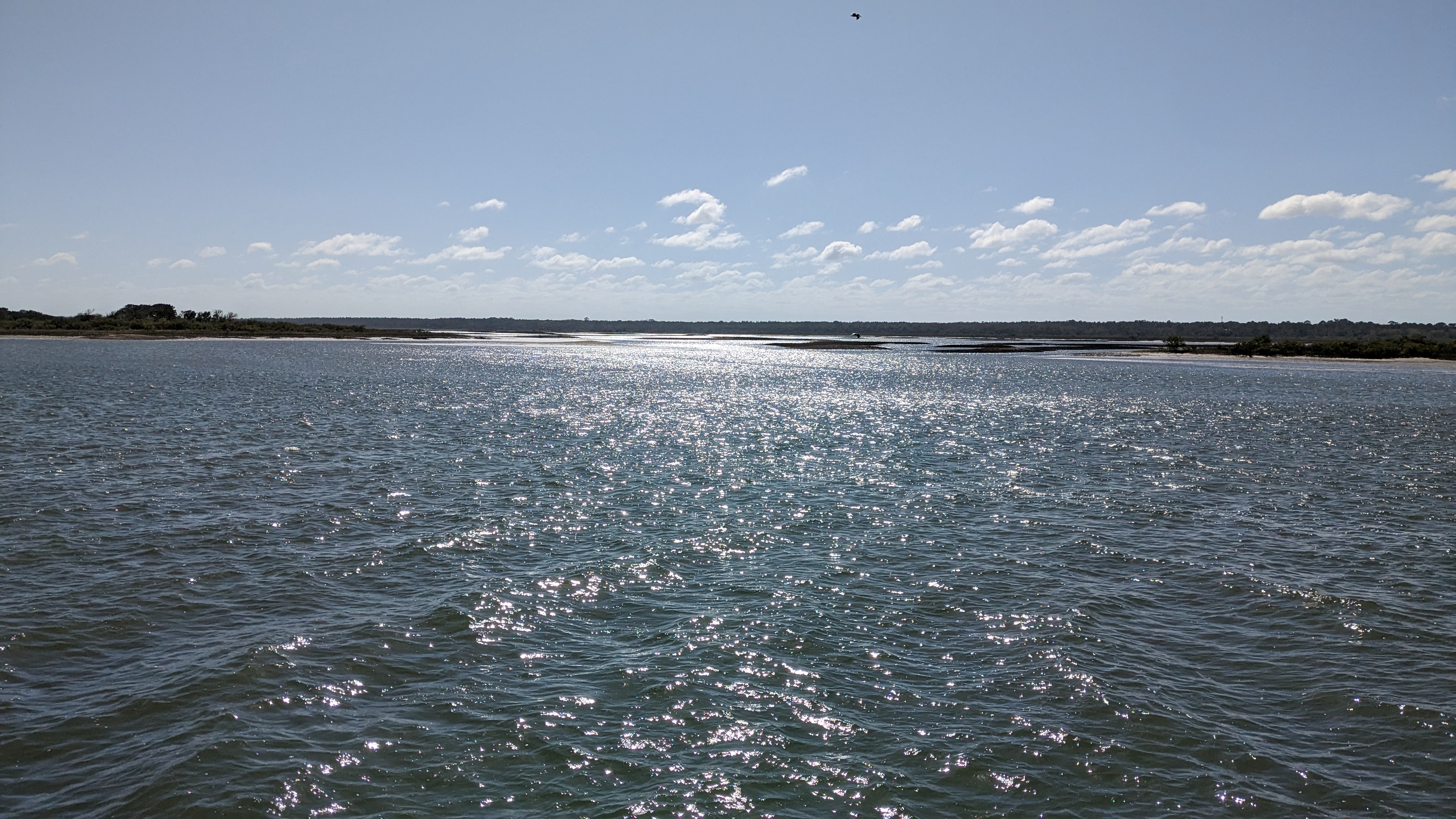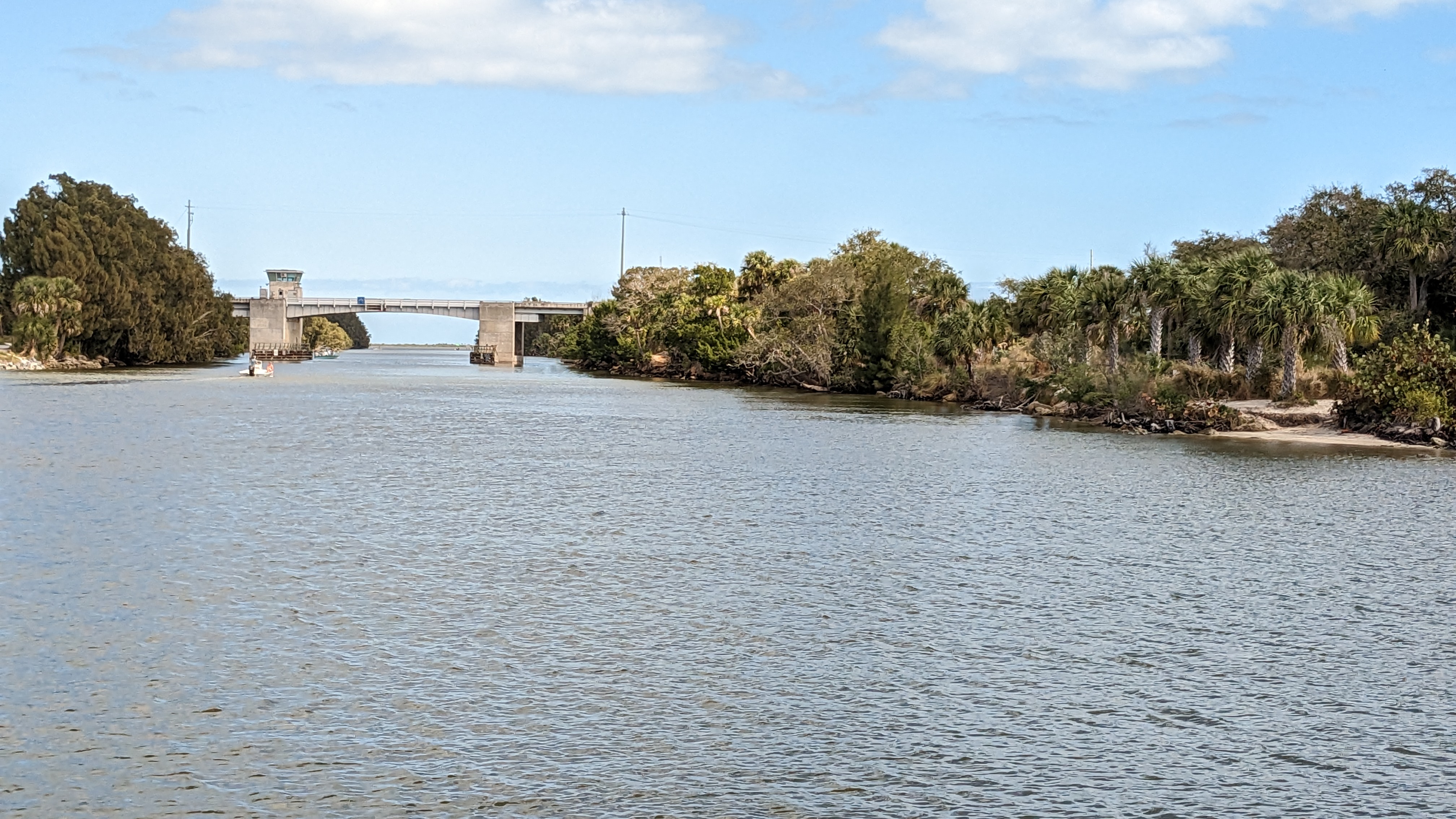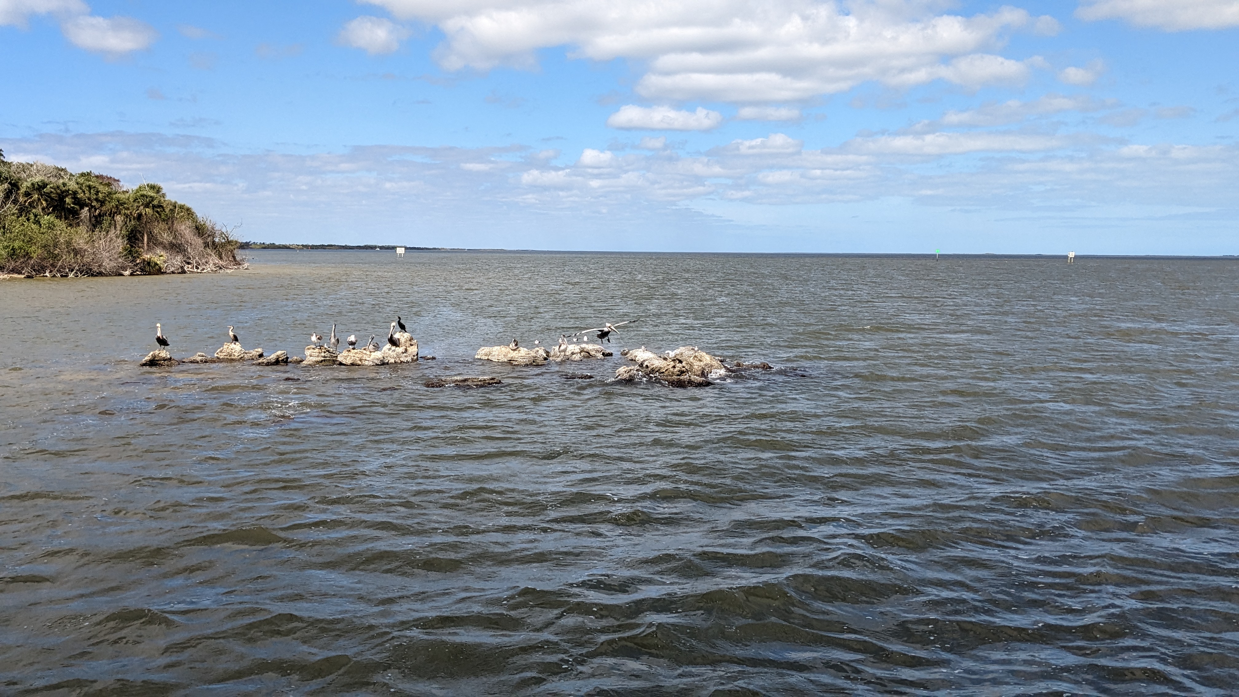 We had a nice travel day from Titusville to New Smyrna via the Indian River. One of the interesting points of the trip was Haulover Canal, which is a ~5-mile man-made canal connecting the Indian River Lagoon to the Mosquito Lagoon. The name ‘Haulover’ comes from pre-canal times when Native Americans and early settlers carried canoes and small boats across land to get from one body of water to the other. The canal is now a popular spot to view manatees as they congregate in the warmer, shallower waters of the canal. We saw many though they are still camera shy!