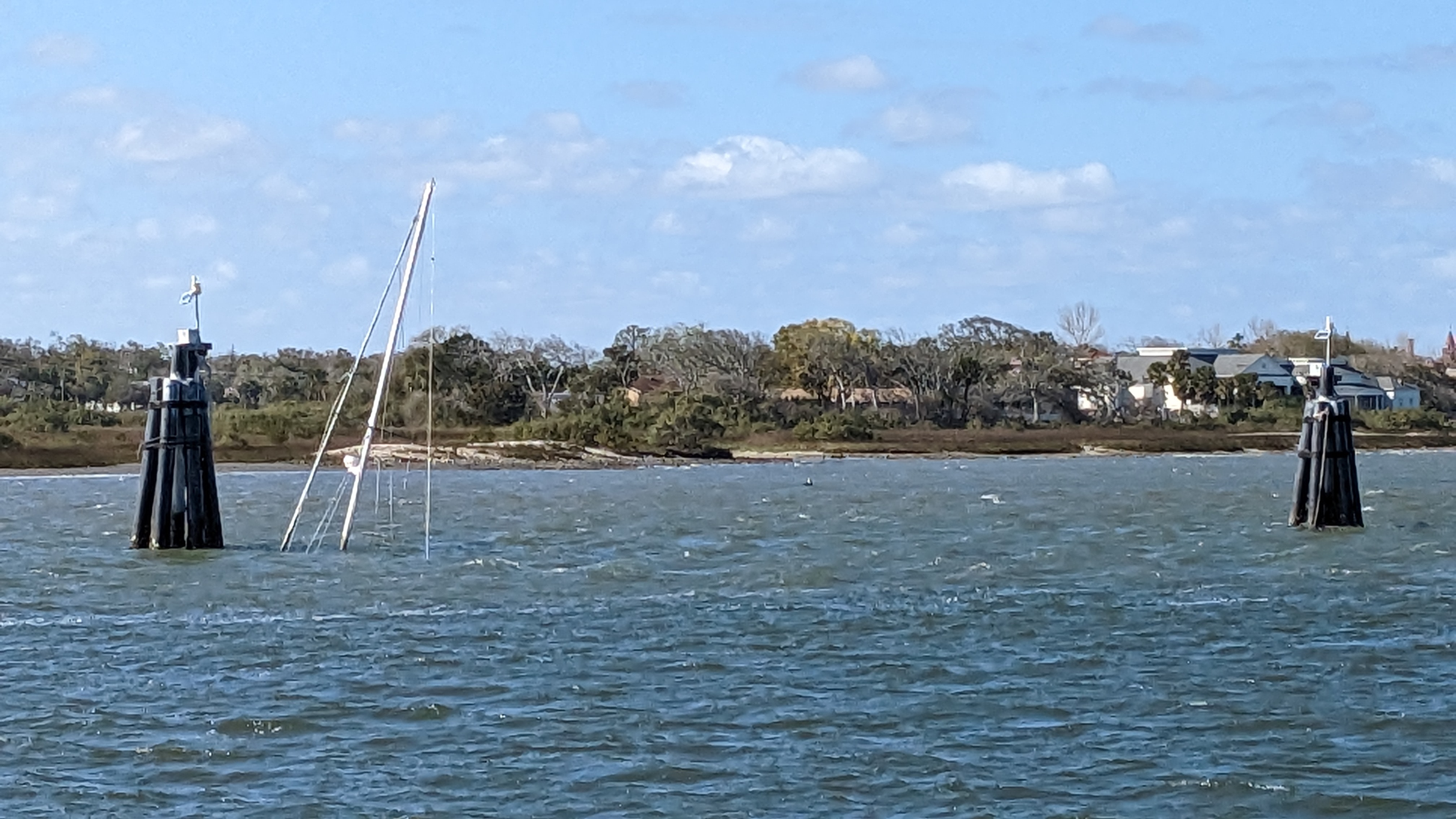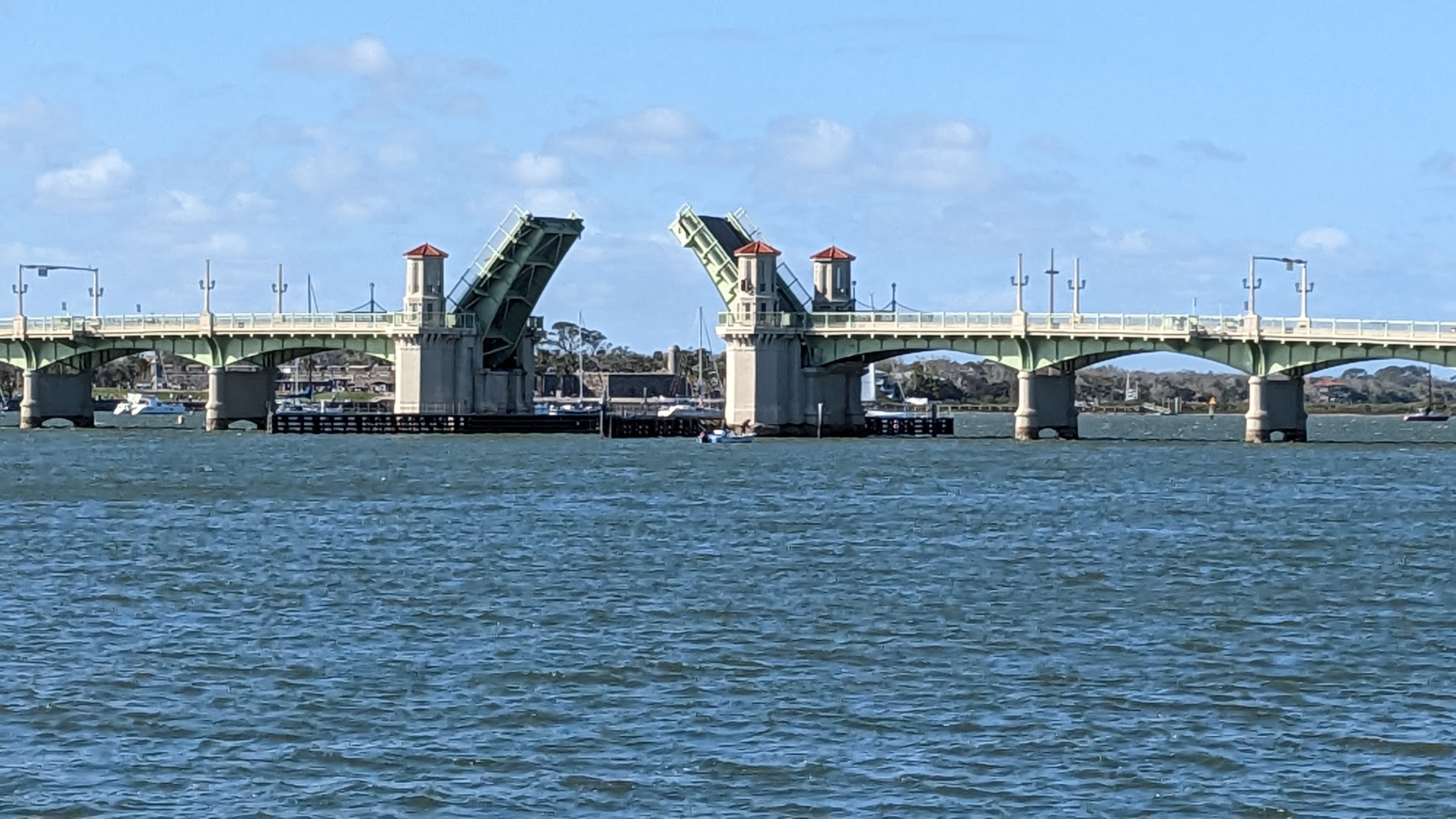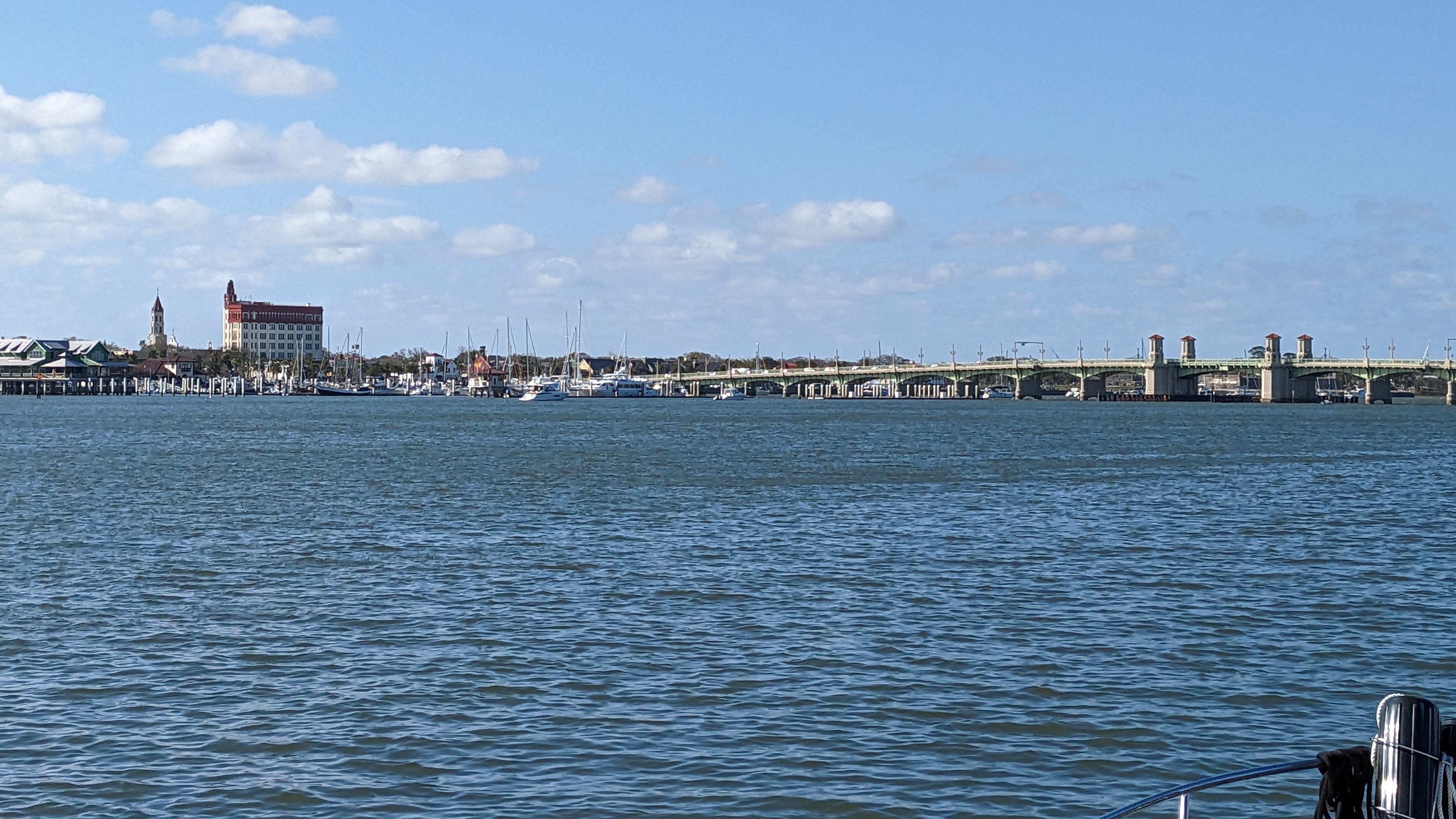 Our trip from Palm Coast to St. Augustine was pretty smooth though we had a shallow curve to navigate that a local had forewarned us about. Indeed, it was a tricky area, and we were happy to have the first-hand knowledge to get us through.