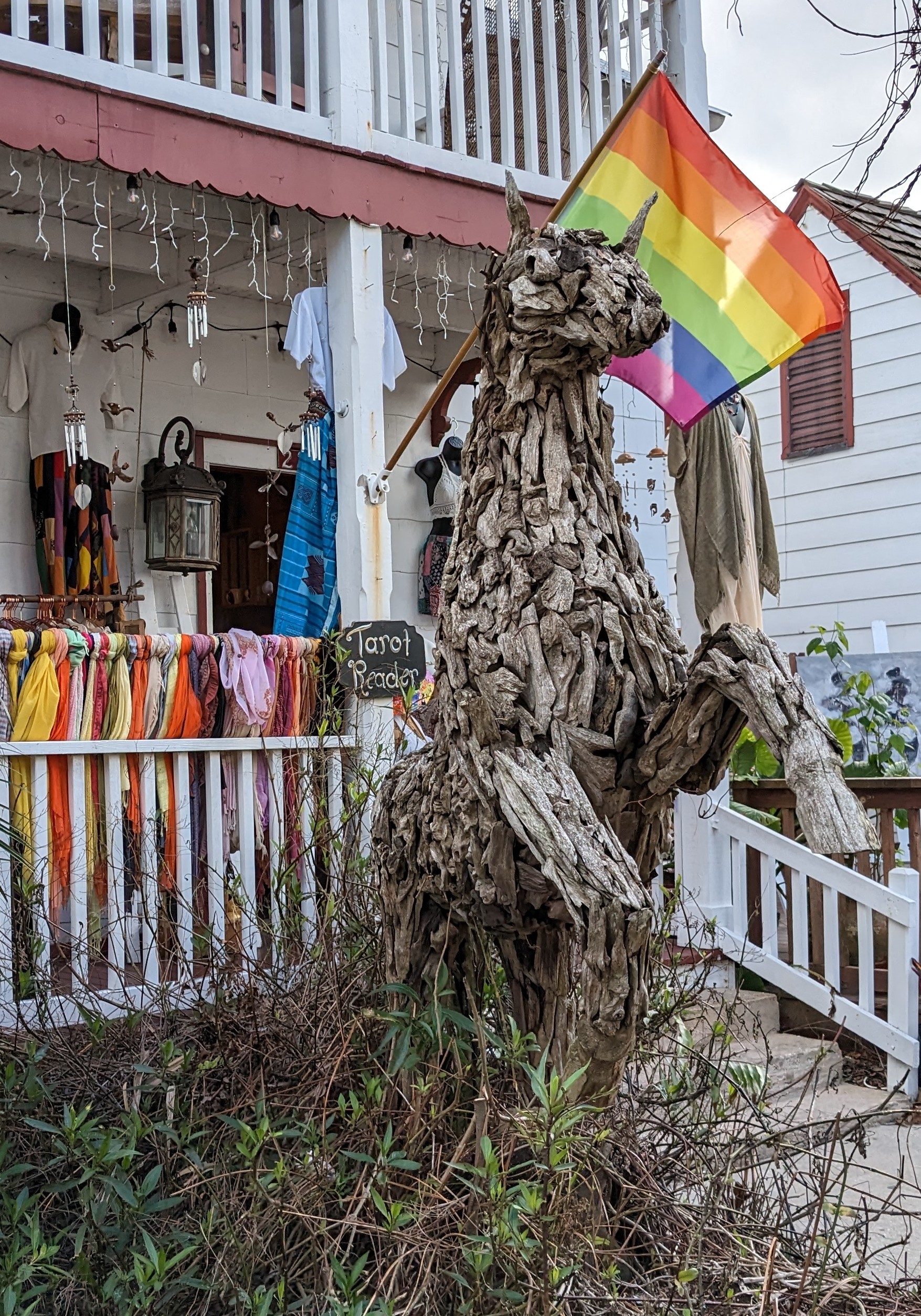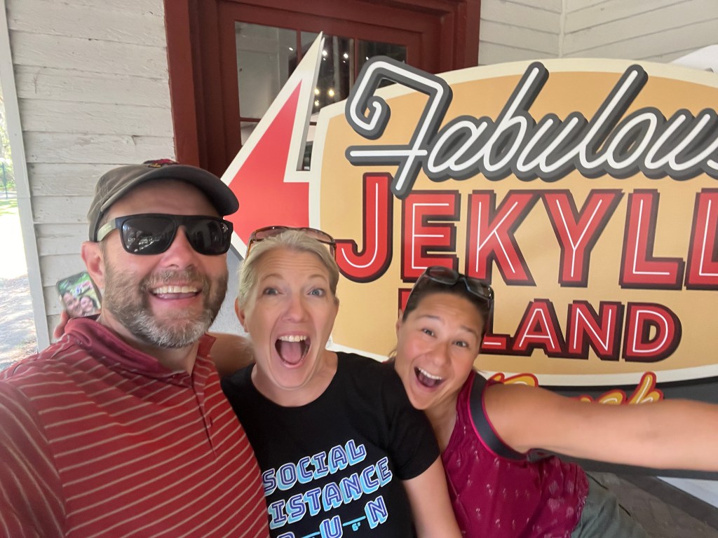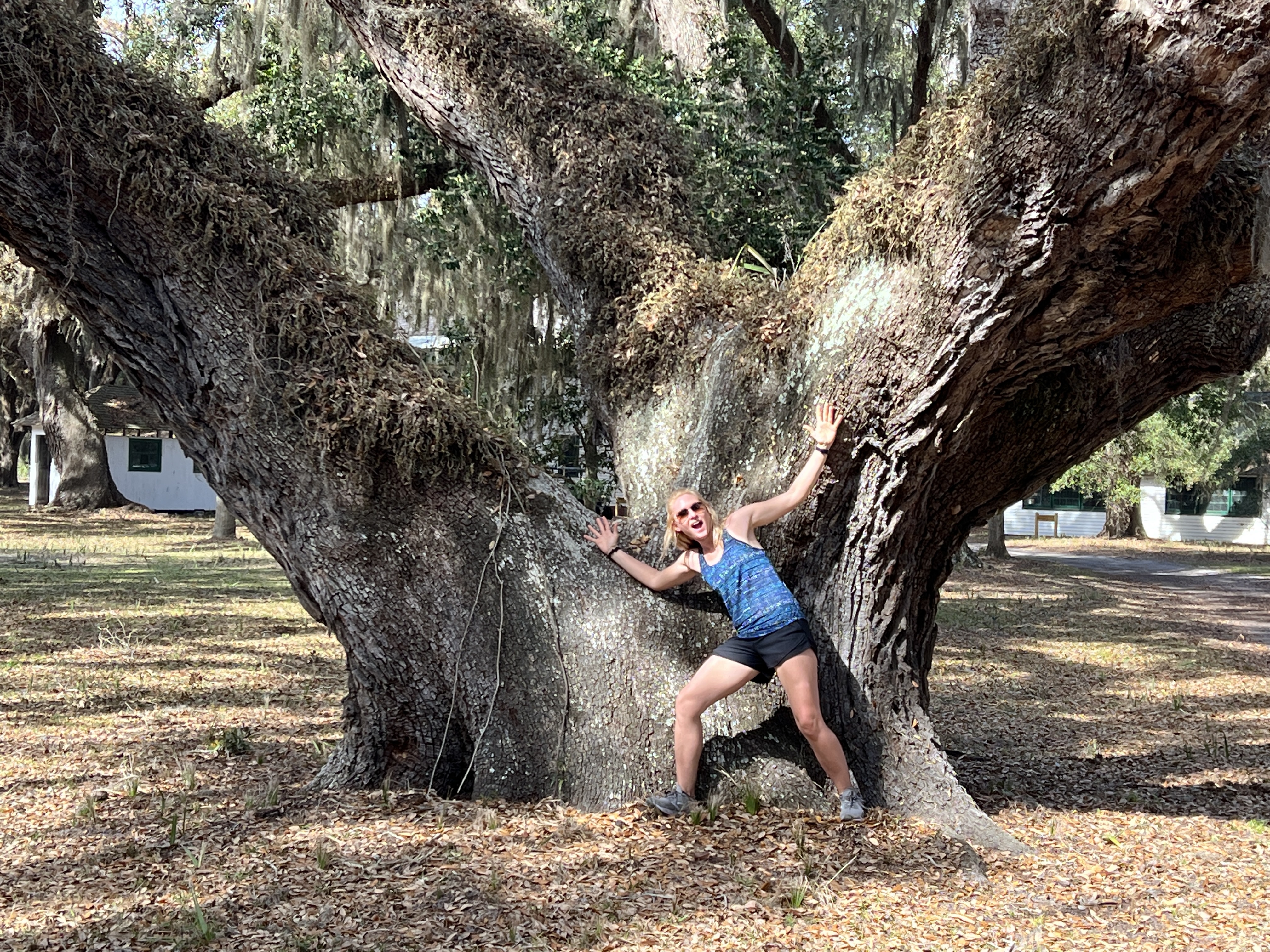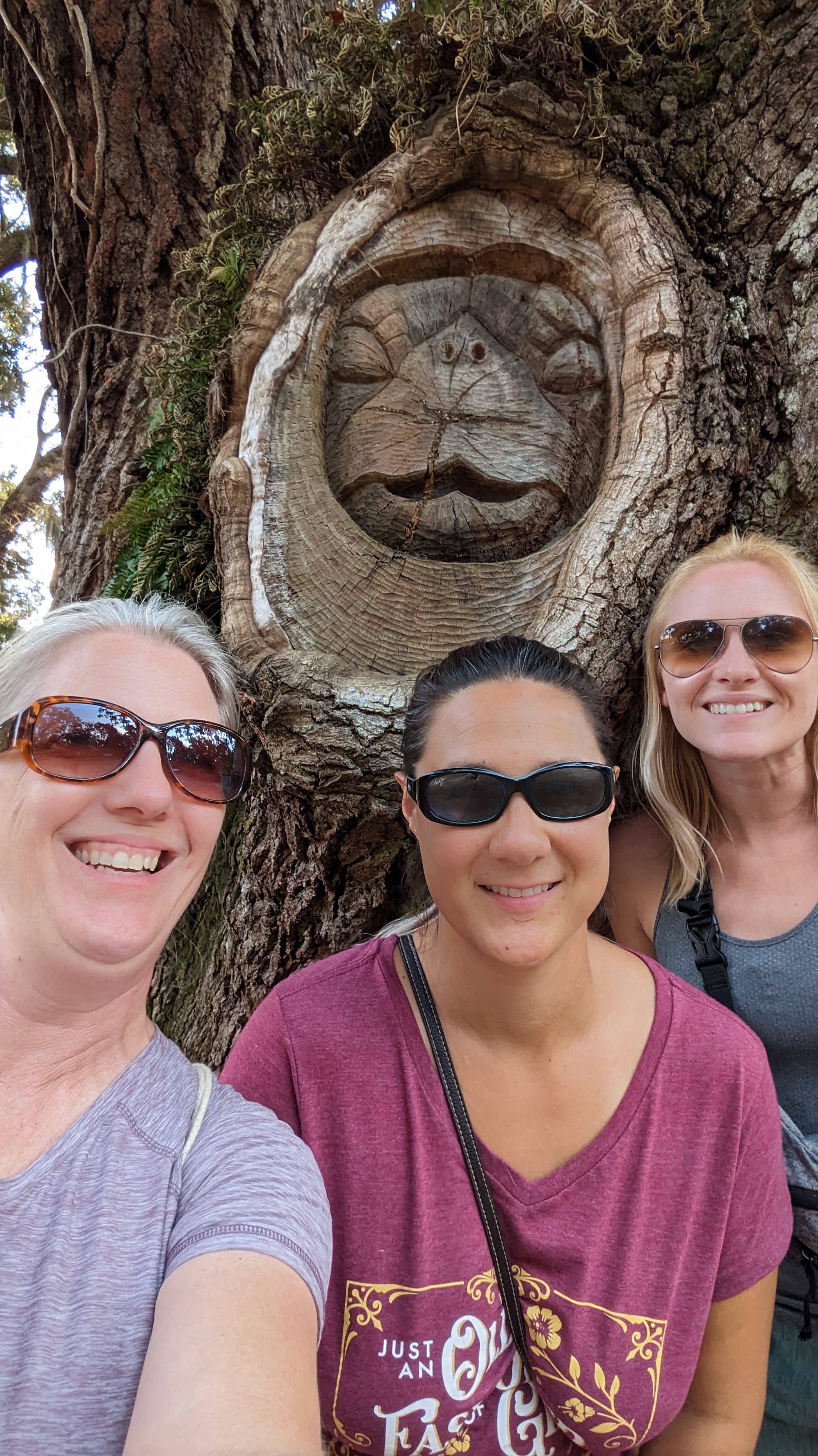 Mayli had read about the St. Simons tree spirits. Her, Tonia, and Emily were going to find some! They attempted to get a Lyft/Uber ride from the park to the downtown starting point except the rides were sparse or out 20-30 minutes. They decided they could use the movement and steps and walked the 3 miles to town.