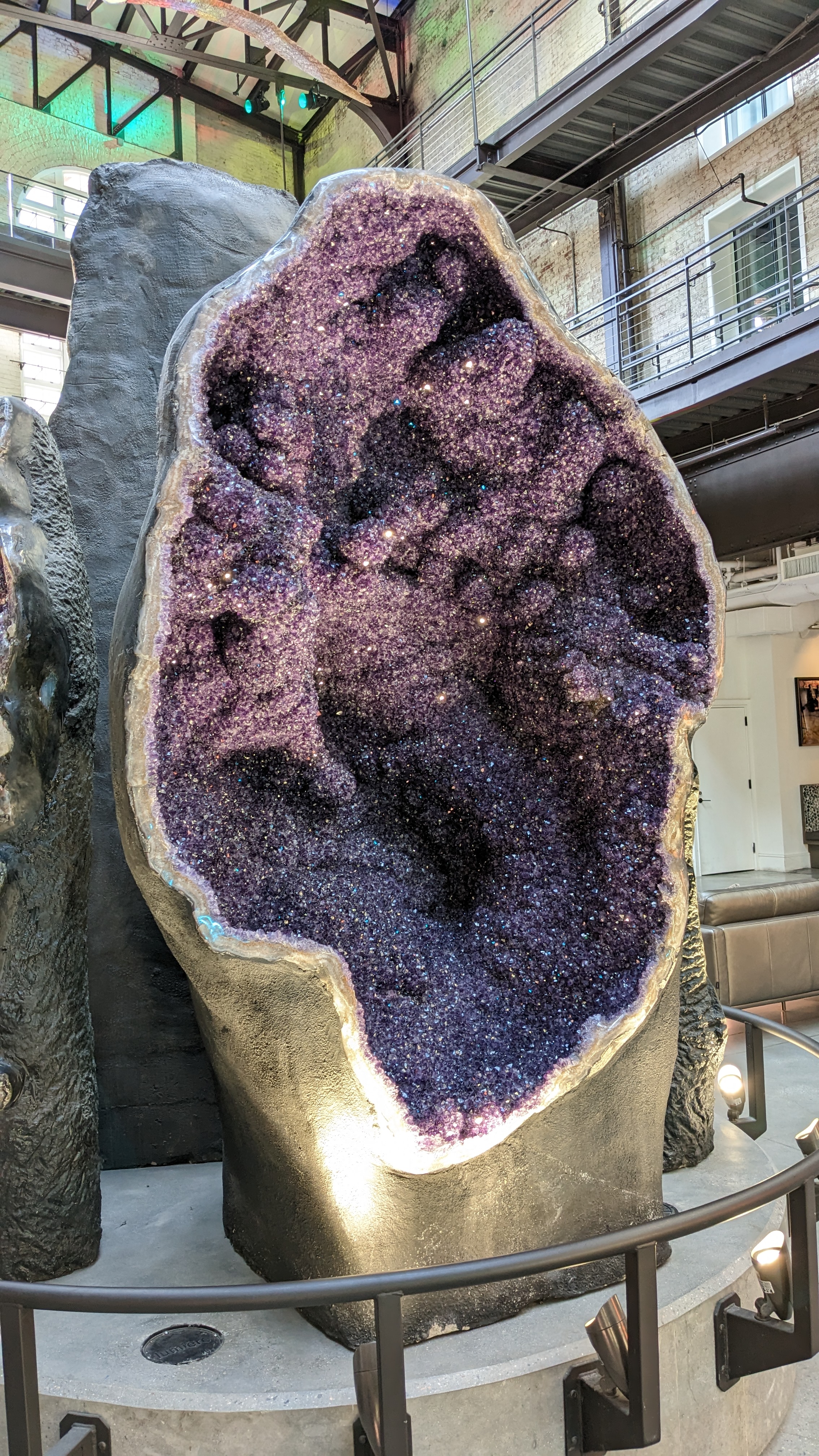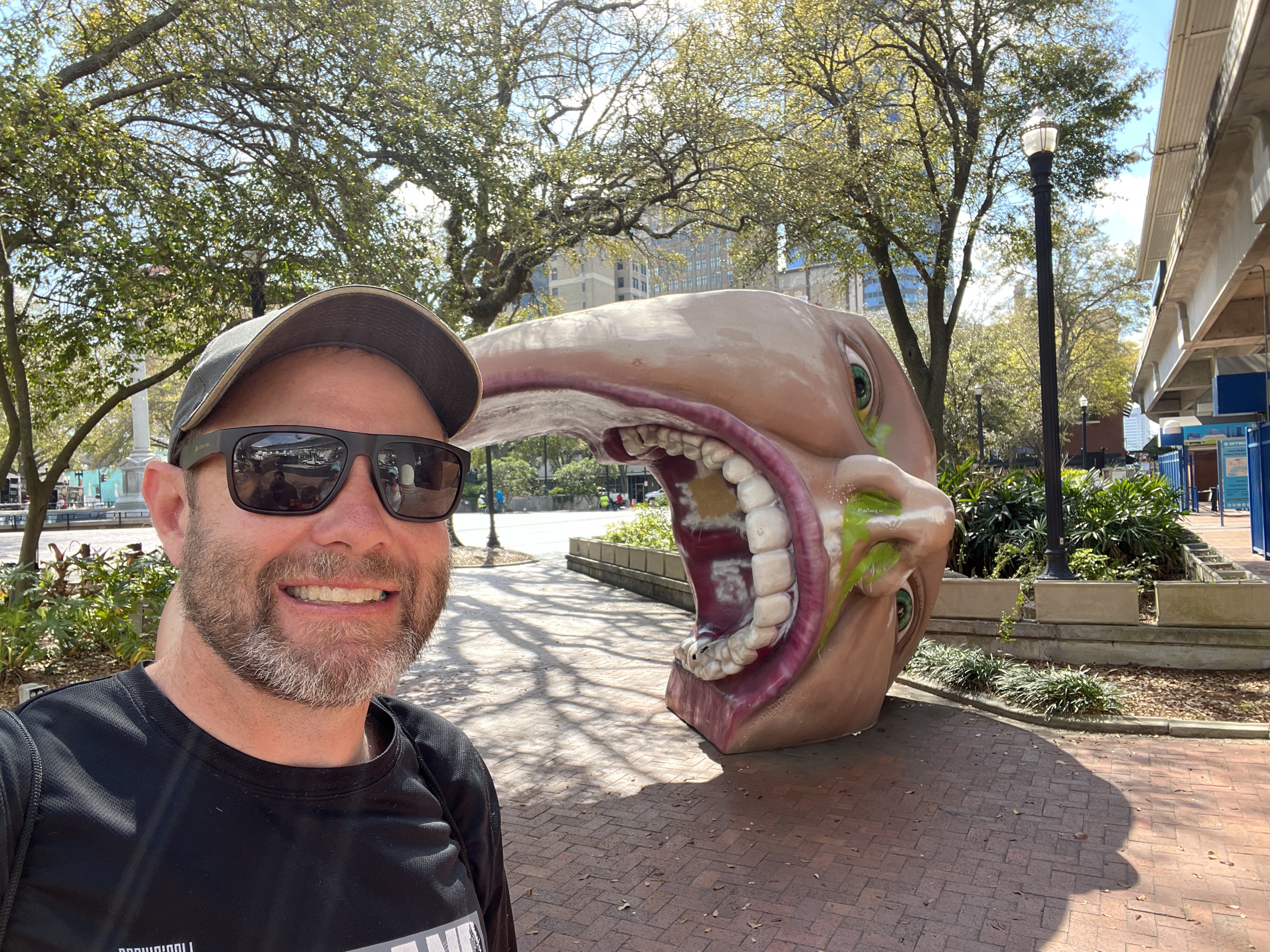 After some grub and drinks, the gals went for a stroll along the waterfront to check out the shops and sights. The guys went back to the boats for, um, a nap? There were lots of fun shops where some immediate purchases (like the guys’ shirts above) were made. There were shops to try out southern-style pralines and sweet and savory cookies. The Marriott was cool as it was renovated from the old, abandoned power plant. The super-large atrium had humungous, person-sized geodes and fossil replicas as well as lots of other cool art. Even if you can’t stay there, it was neat to walk through to check out.