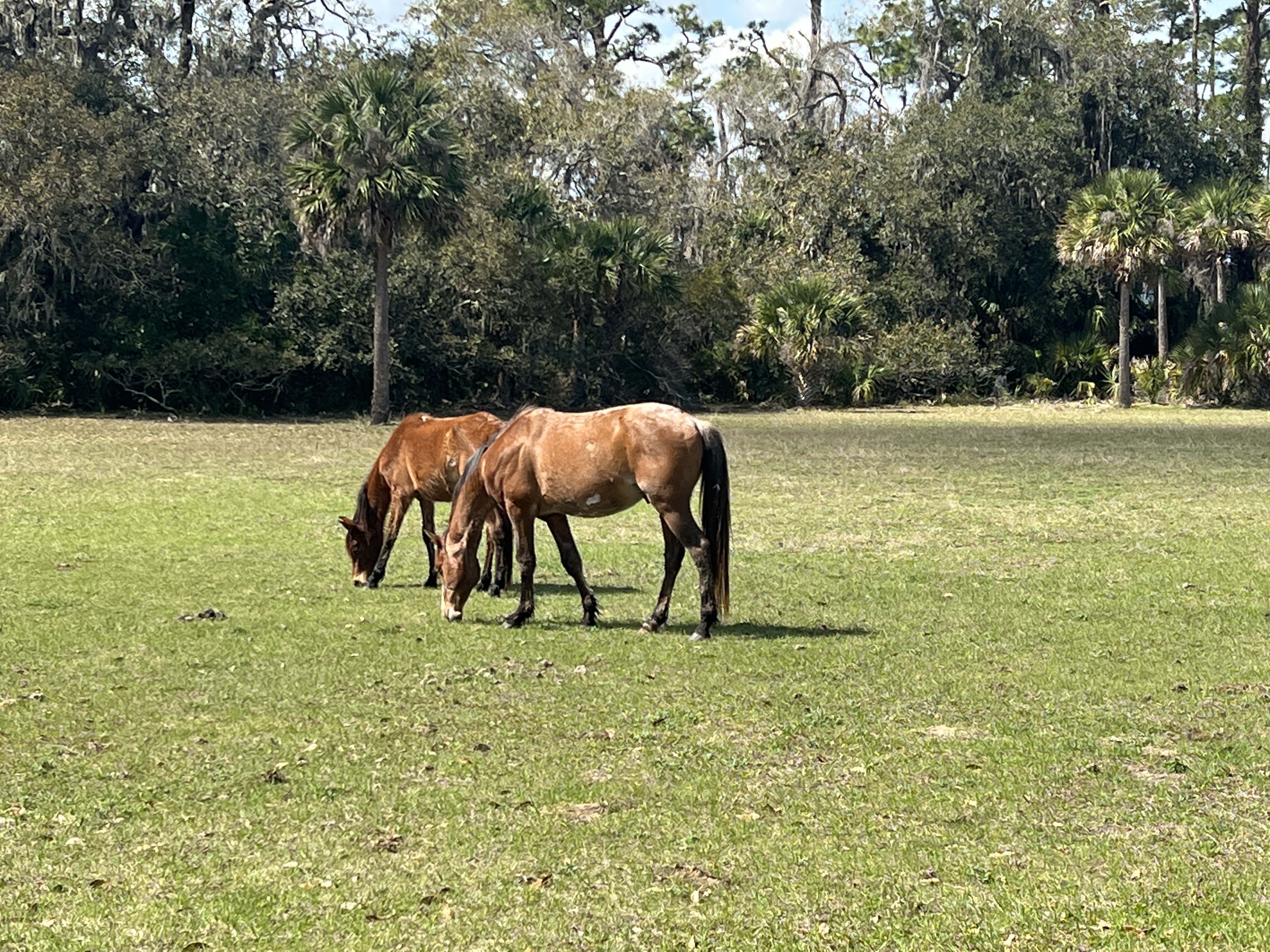 Another interesting quirk of Cumberland Island is the wildlife. The island is home to many wild horses that can be easily seen wandering around the ruins and trails as well as the beach (see above). Careful where you step! We also spotted five armadillos along our way through the island and trails.
