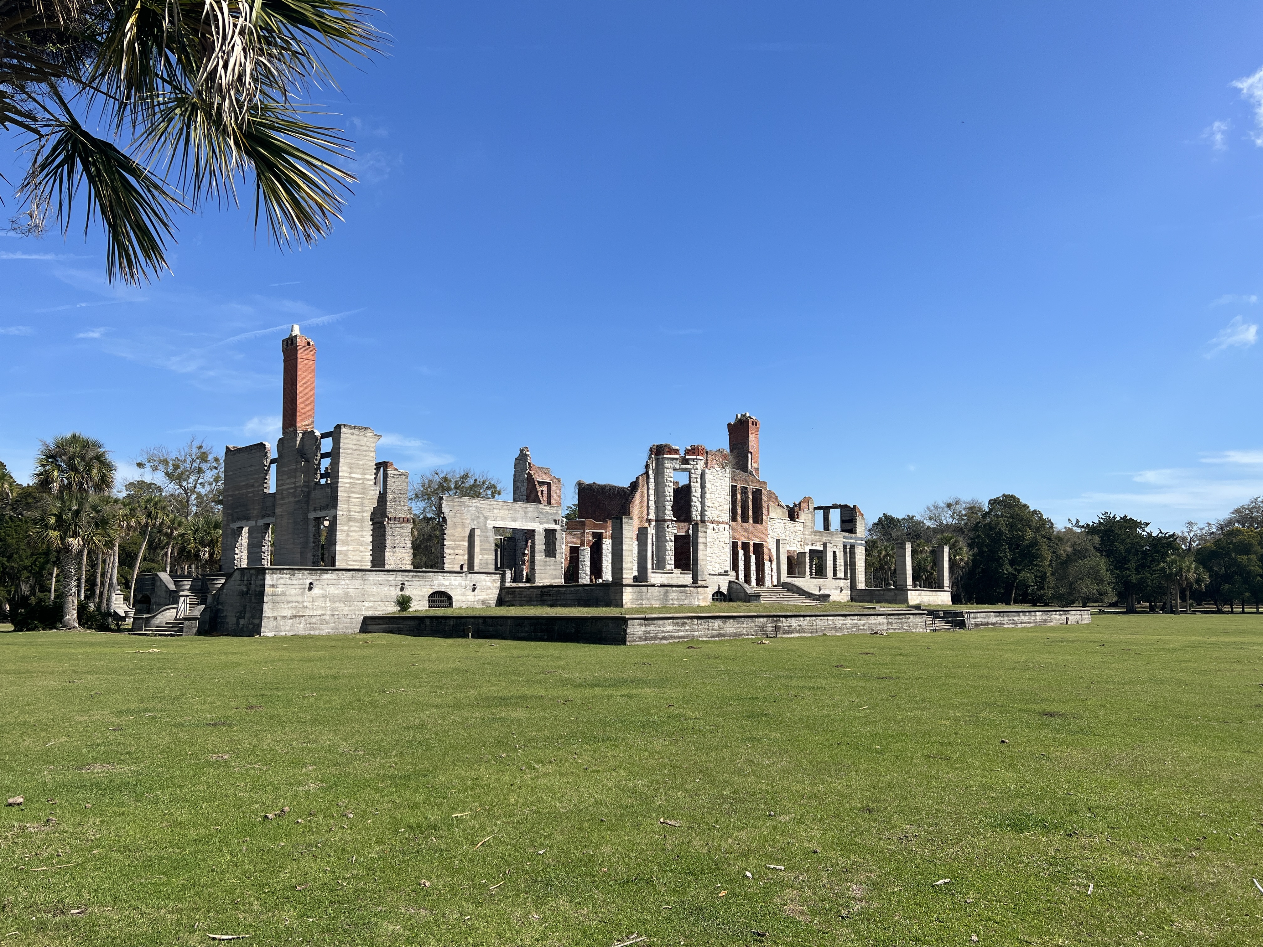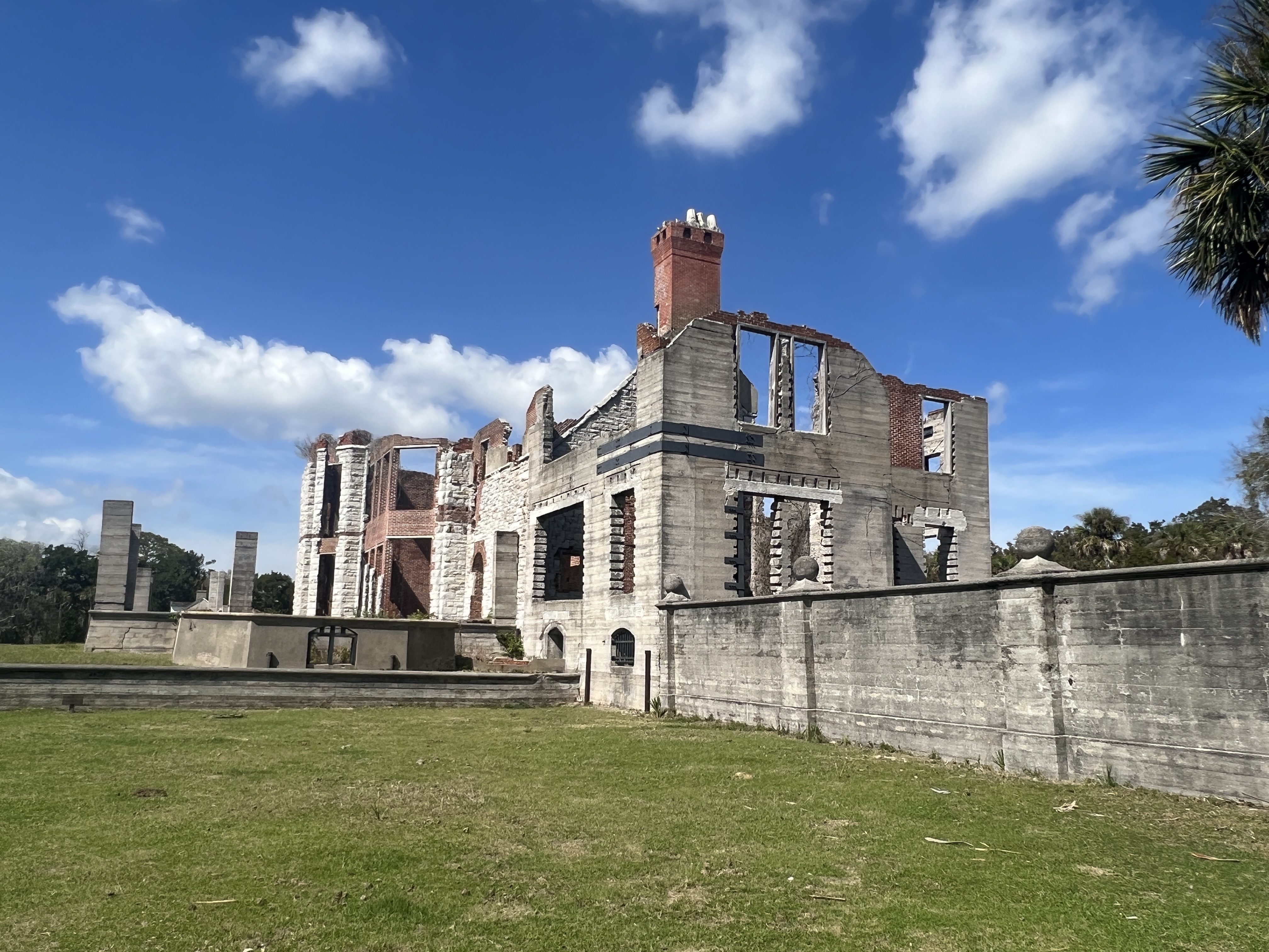 After the trip we anchored next to Cumberland Island. Cumberland Island is home to the Dungeness Ruins. Dungeness is a ruined mansion that was donated by the Carnegie family and is now a national park. The ruins area is a vast estate where the family started on the island before each Carnegie child built their own mansions nearby. Unfortunately, the ruins exist because of a fire in 1959 that destroyed most of the house. It was fun seeing all the workings of an estate from the early 1900s and the beautiful island and grounds there.