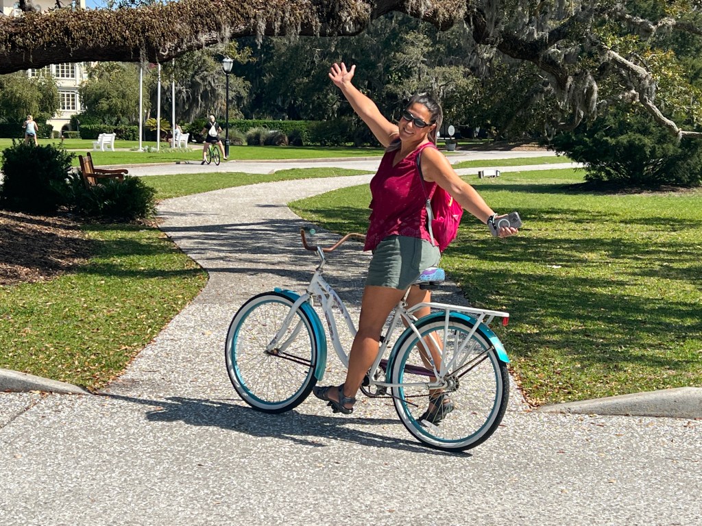 The Jekyll Harbor Marina was really welcoming and also offered free bikes to use, so we took advantage. We all selected our bikes and took off for the historic district. It was an easy one-mile ride on a nice, paved trail along the waterfront. You’ll never guess the first stop…