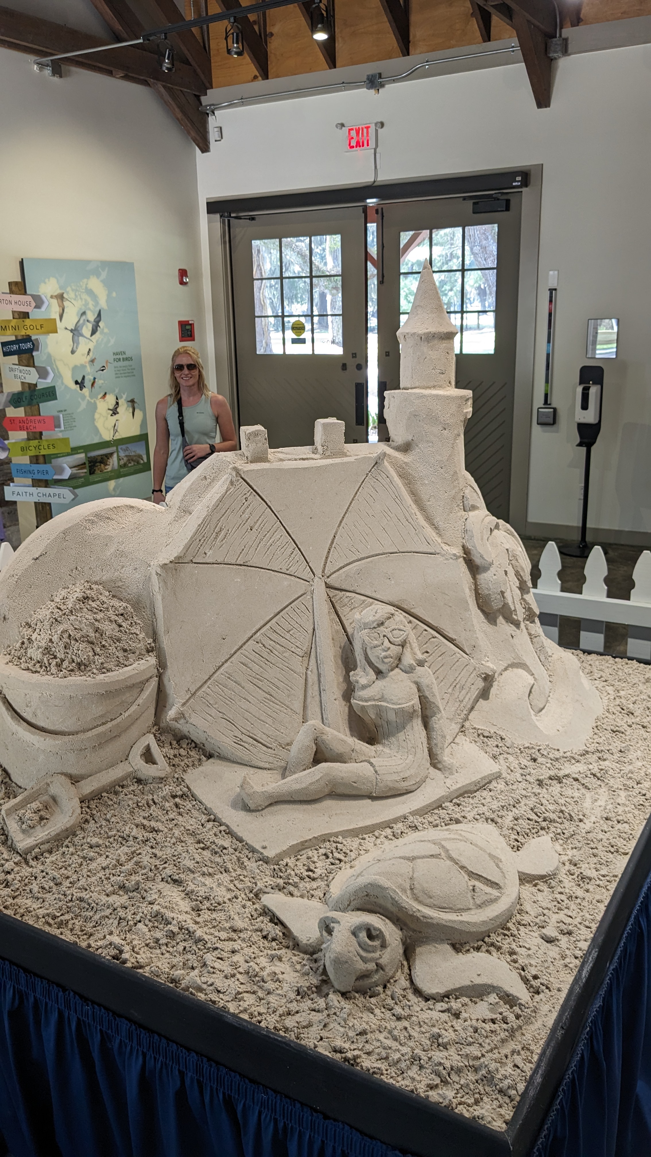 The Golden Isles Welcome Center provided a map of where to find the 11 carvings on live trees throughout the island. The first tree spirit was an easy find! The full-size mermaid was right next to the Welcome Center!