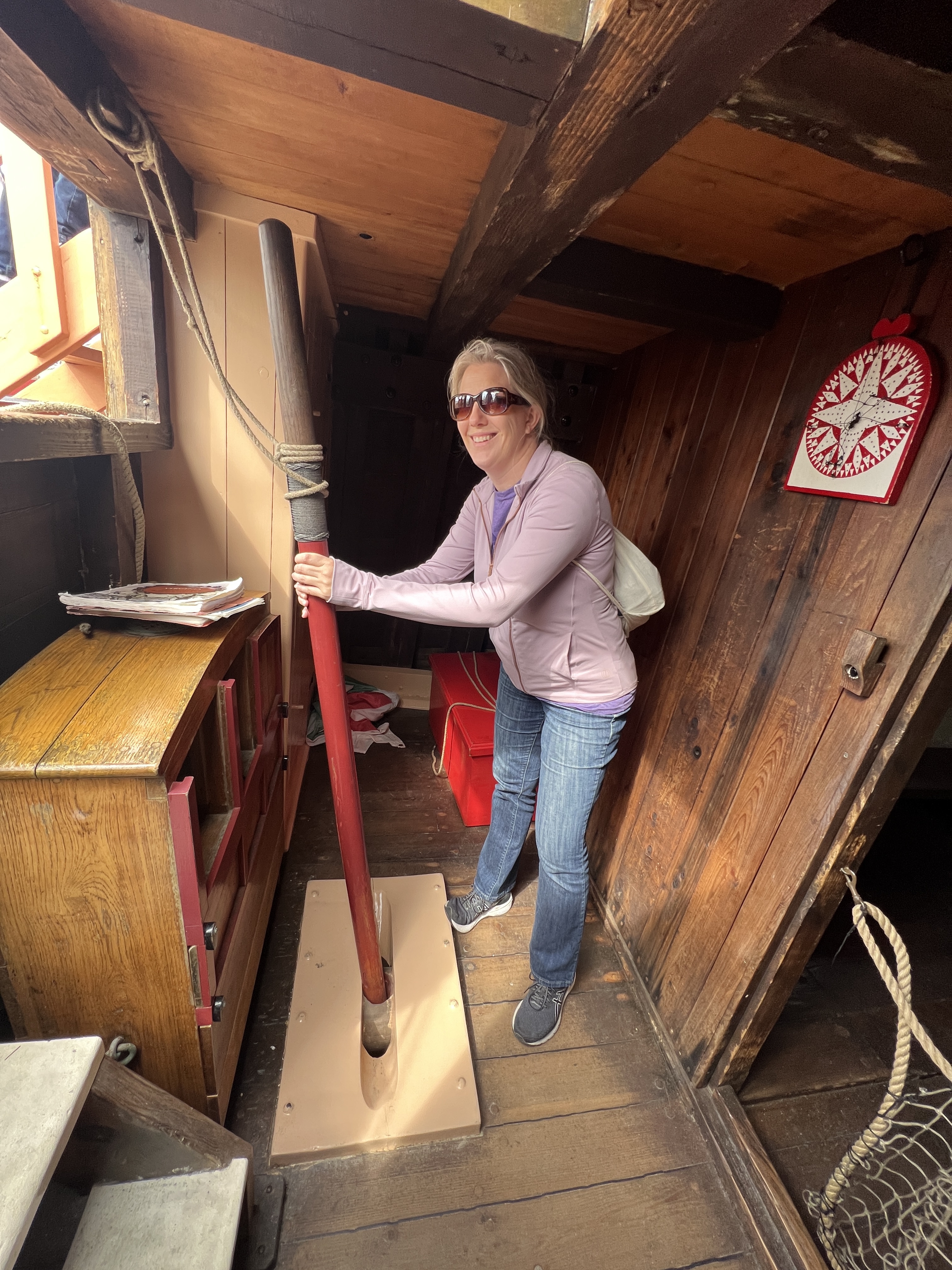 After the truck event, we all went back to Sudden Inspiration for one last quick trip out with Carter at the wheel. Since Sudden Inspiration will be sitting for a while, we wanted to get it running again. And bonus was we could get it pumped out, so we don’t leave it stinky. Carter was having fun as a captain in training. He also got to watch a boat in the marina we’re at get pulled out of the water.