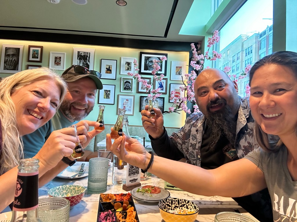 Then there was a wedding. Part of the reason for the timing of when we traveled back was to see Amy and Dave get hitched. Shwetha, a friend and former coworker of Tonia’s, flew back for the wedding too. So we also got to hang out with her and Christian & Liz, the other newlyweds. It was a fun ceremony (yep, the ceremony had some well thought out laughs and some unintended ones too) and great celebration! Cheers to Amy & Dave!
