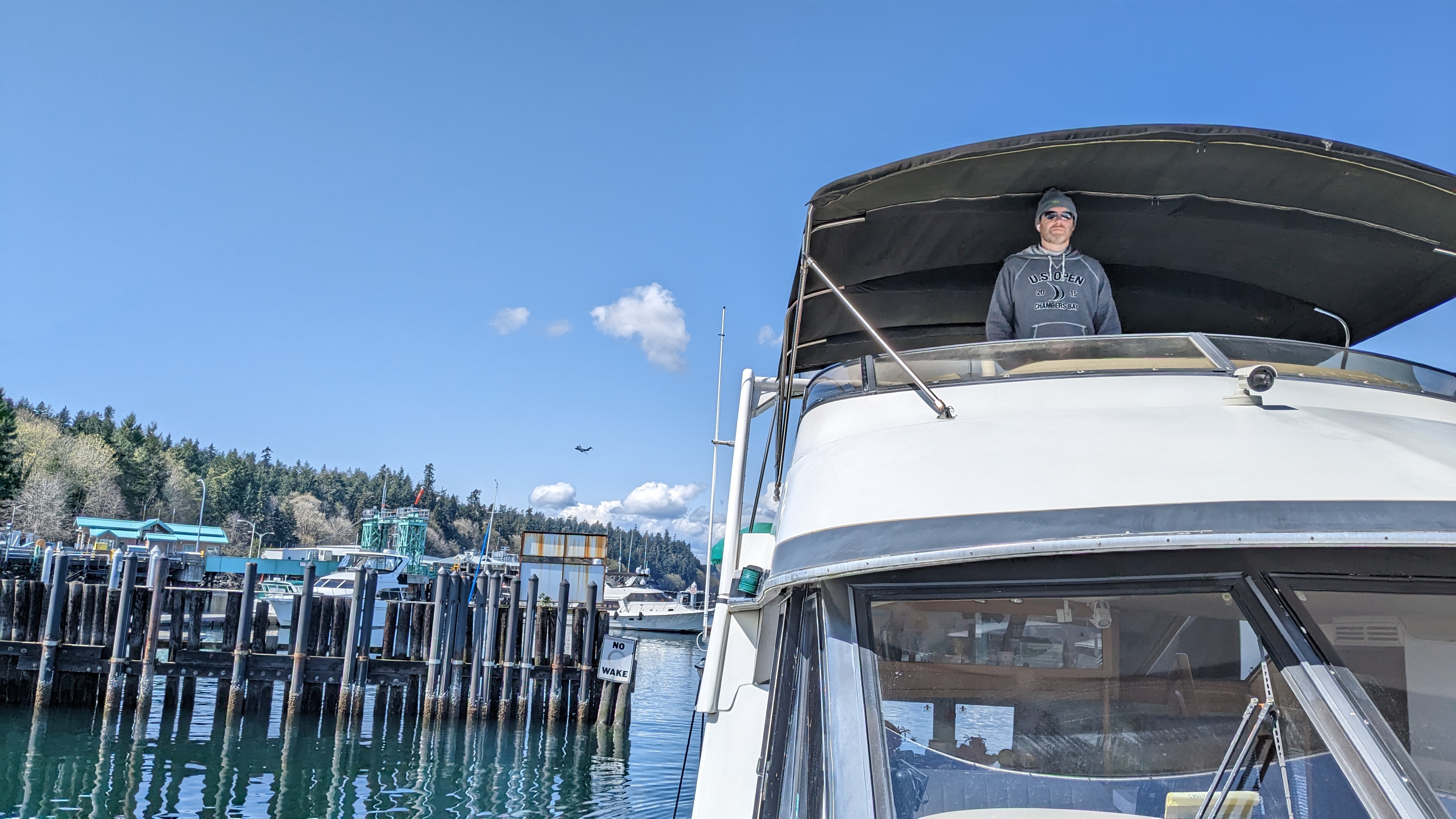 The first items on the agenda were to join up with Tyee for the monthly dinner meeting and then get Sudden Inspiration fired up and travel down to Tacoma for the annual Daffodil festivities. Randy and Gayle joined us for an overnight stay after the dinner meeting and joined for part of the cruise south. We dropped them off in Des Moines, WA, on our way to Tacoma so they could hop a flight to Hawaii. Rough!
