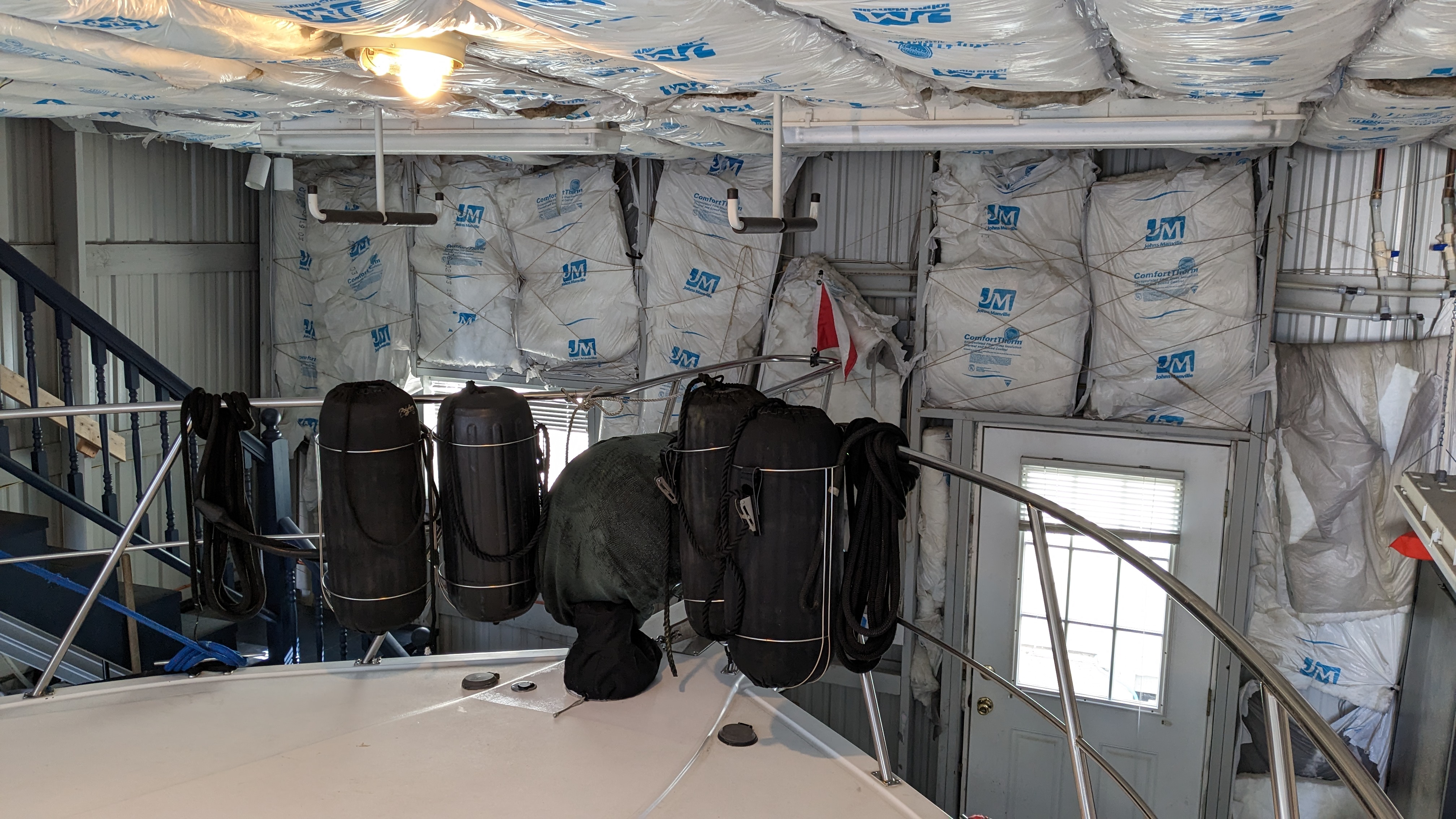 When we finally got called in, we were tied to a boat house and then realized we could fit in it, so we repositioned inside. It was a tight fit. Had a few inches of space all around. Wish I owned the boat house. It would be great for the boat.