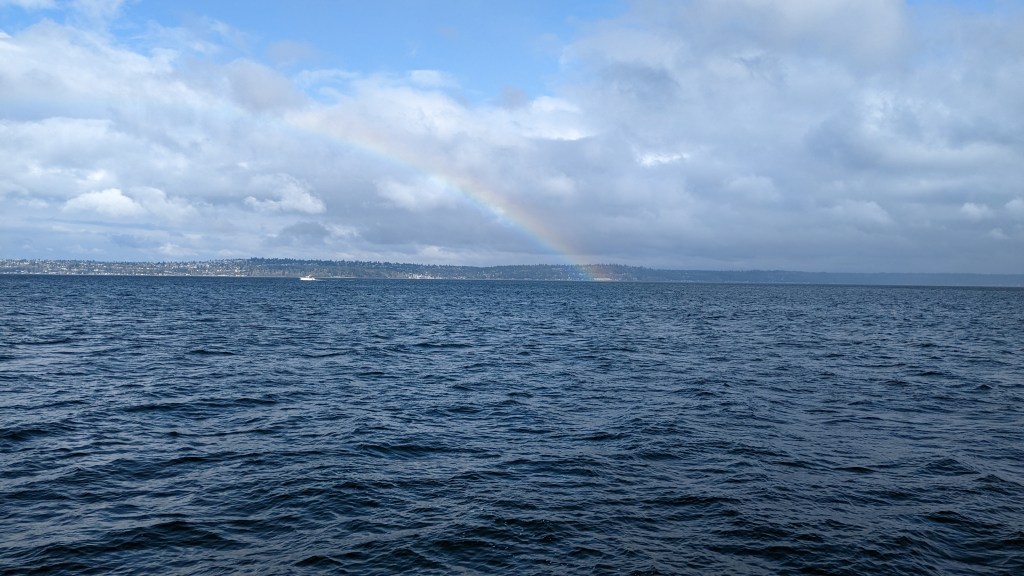 The voyage out the Ballard Locks and down the Puget Sound was as good as it gets. Blue skies and no wind. I sent a message to the Loopers saying my depth gauge must be broken because we weren’t in 10 feet of water (or less) any longer.