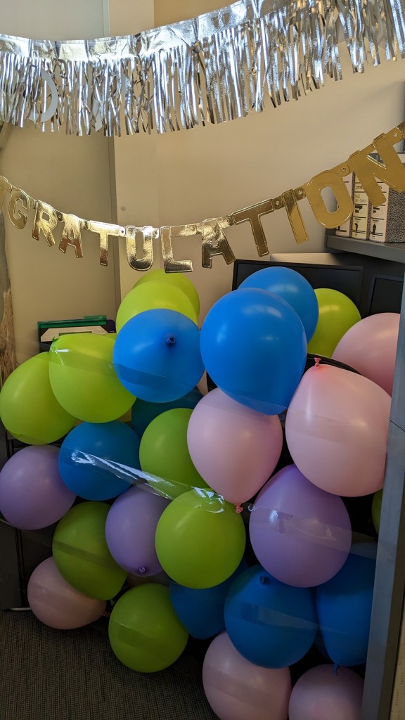 Prior to coming back to the office/lab, Tonia’s coworker reached out and gave me the heads up they were doing a surprise celebration for Tonia’s 15 years at HHMI. I had to purge the evidence off all our devices to keep her in the dark and it worked. She was surprised!