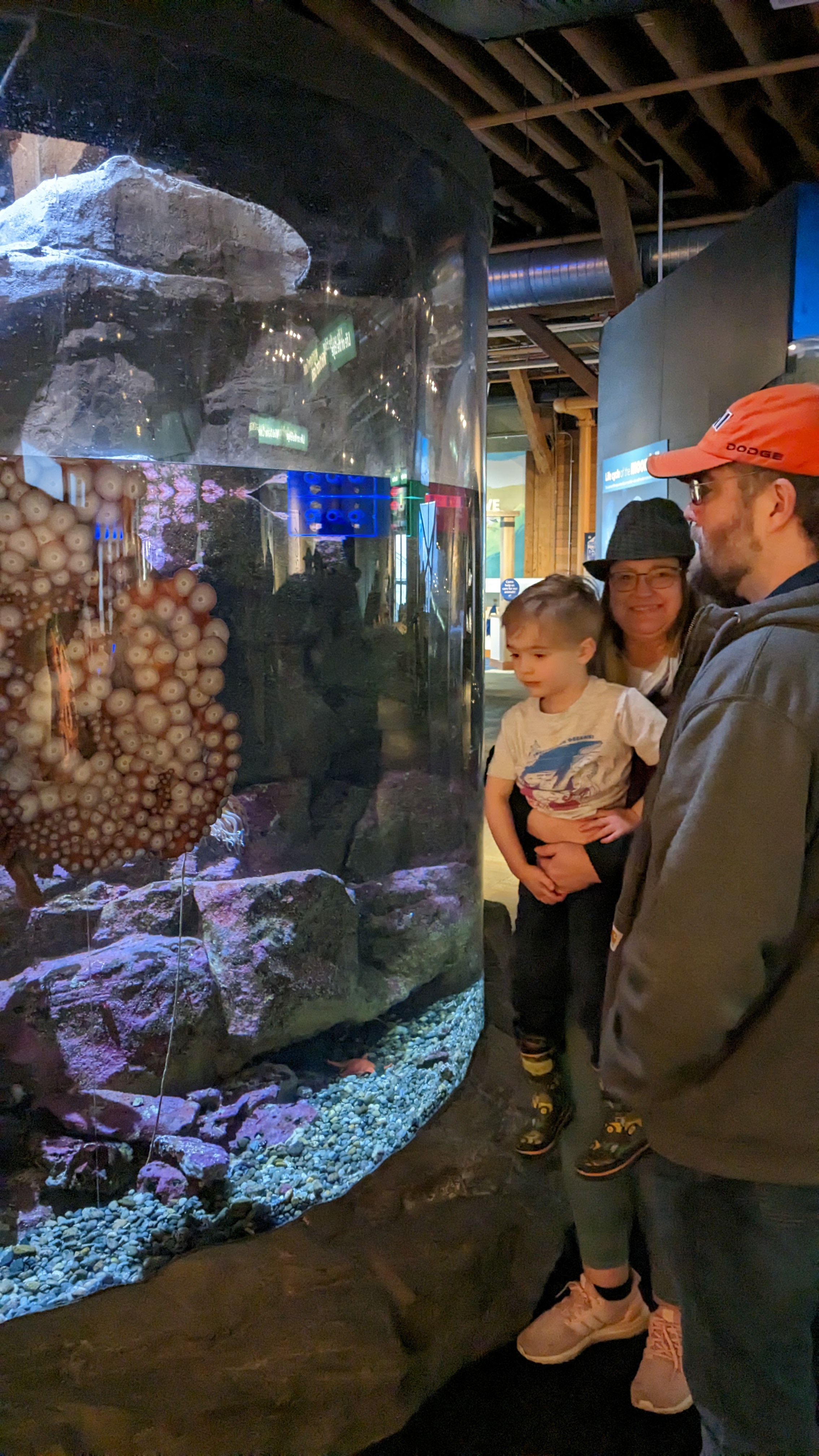 We had multiple activities planned with Tonia’s brother Justin, Erika & Carter. The first was a trip to the Seattle Aquarium. It was fun watching Carter look at the fish and sea life. He didn’t spend much time at each: he’d take it in, then declare it was time to go to the next. Pretty entertaining in itself.