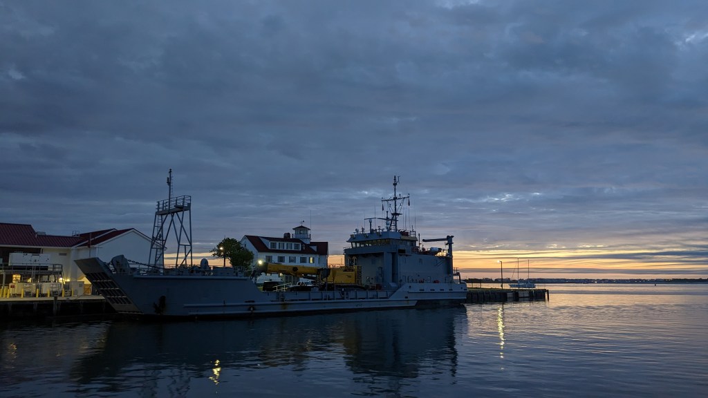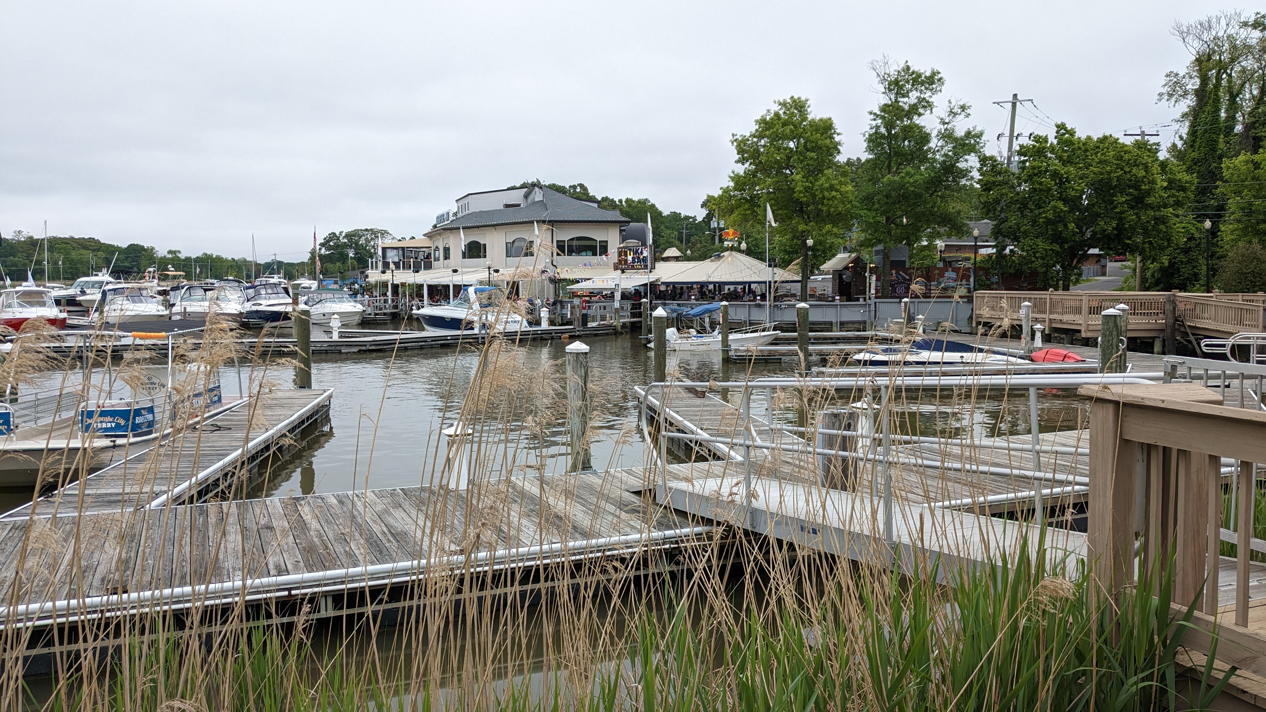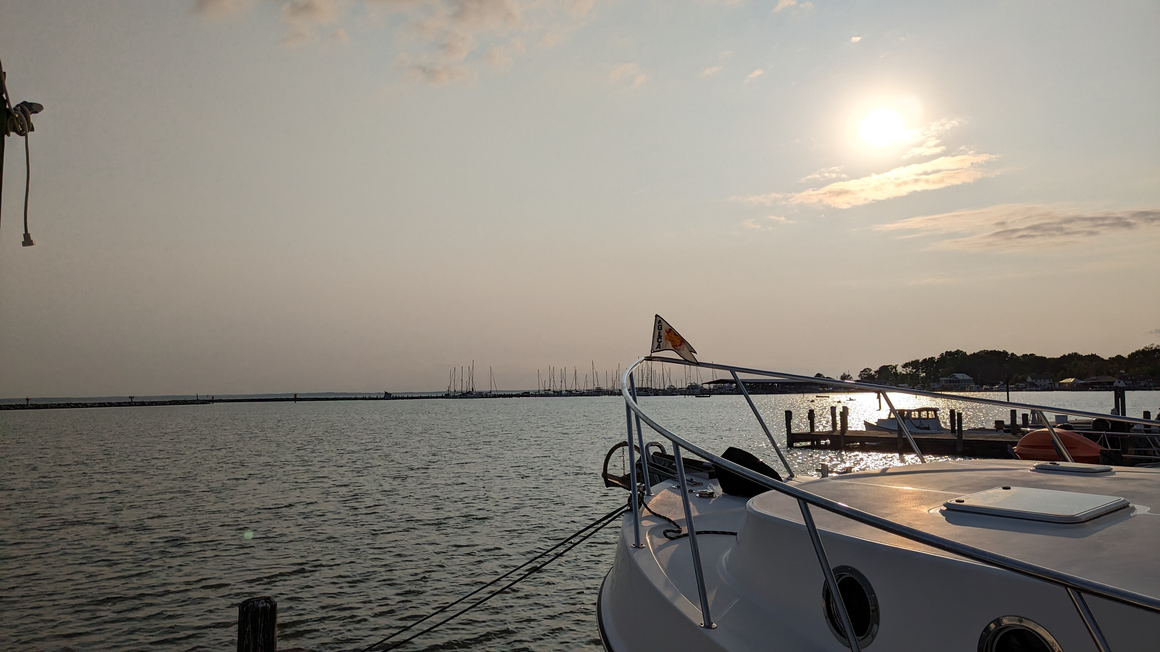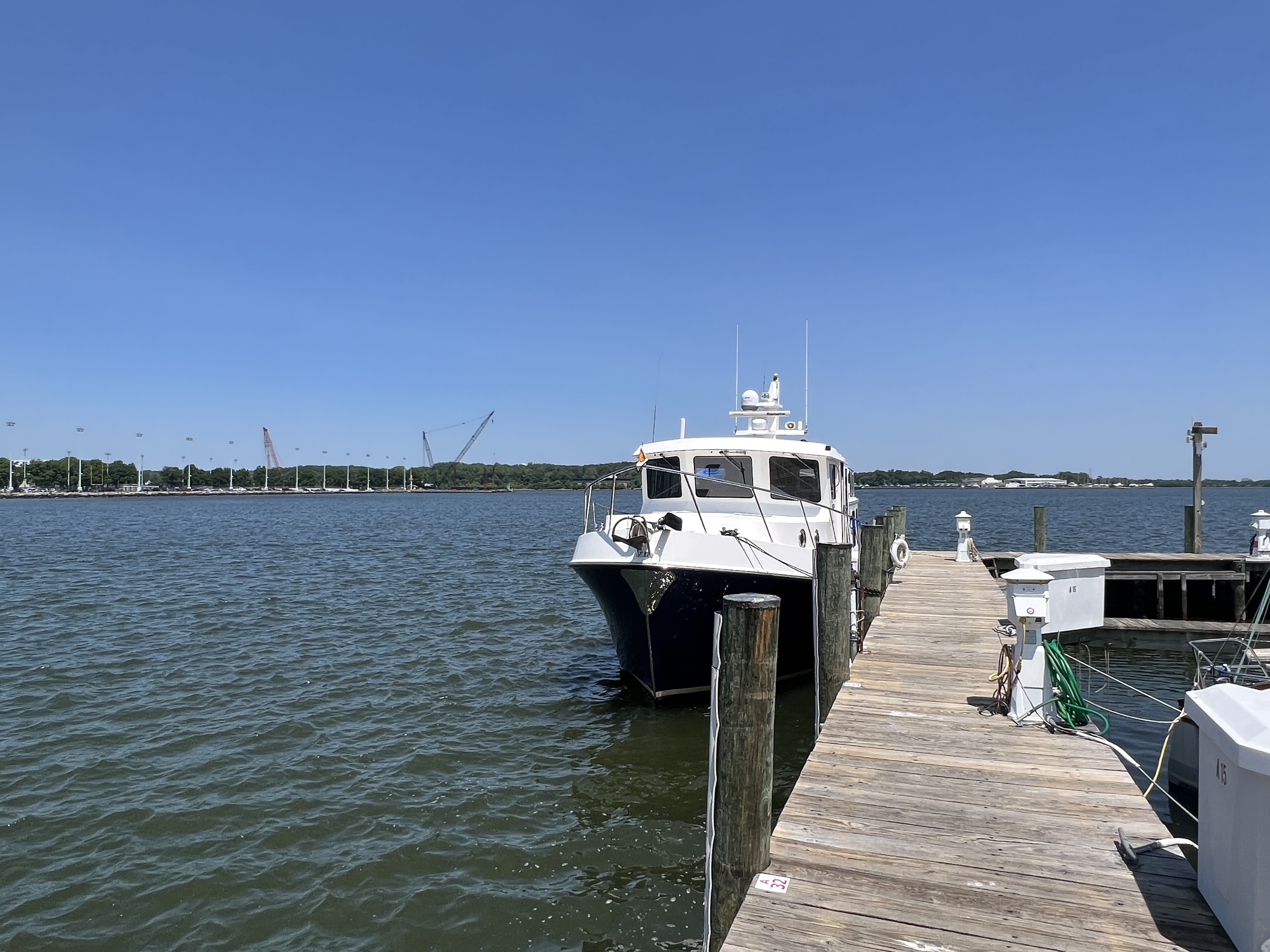 Tonia was pretty much in we’re going to die mode so, yeah, not fun. When we got close to Sandy Hook (the jog to the left on the map above Long Branch) she just wanted to stop and tuck in around the peninsula and anchor. Luckily, the waves “calmed” as we rounded the area, and I was able to convince her to complete the trip as planned to Great Kills Harbor. Thankfully Boris had Saga already hunkered down on a mooring ball and was at the ready in his dinghy to help us secure our mooring ball.