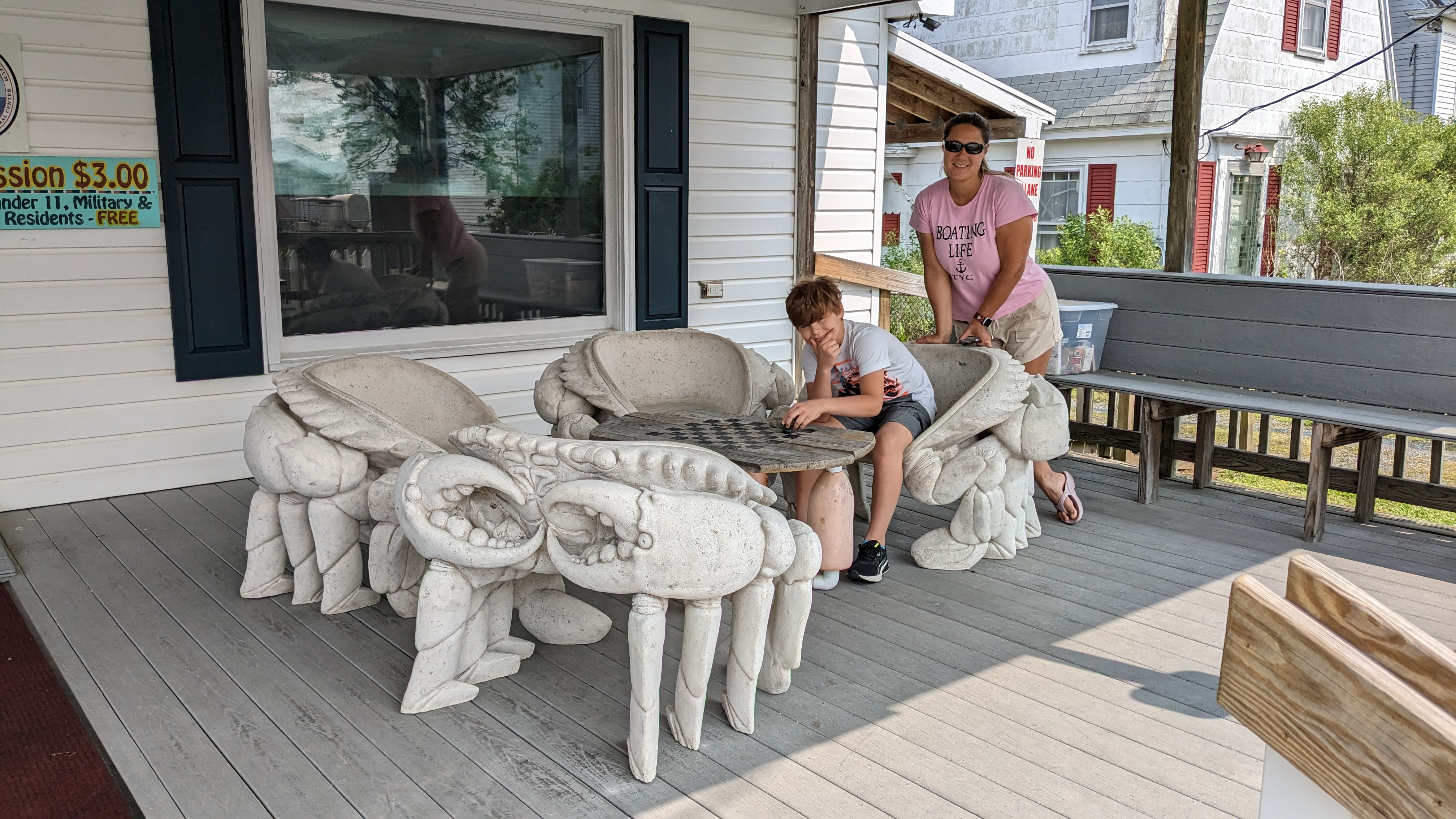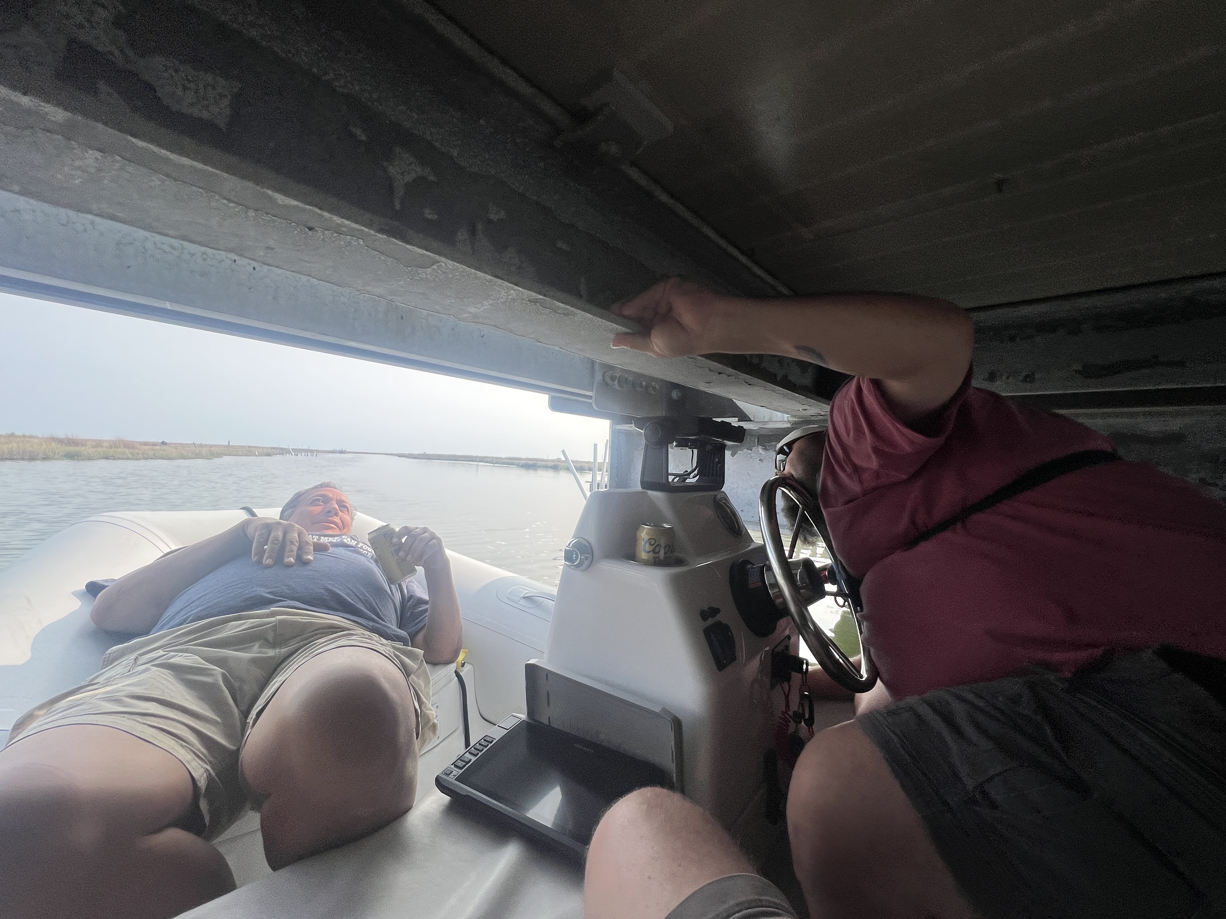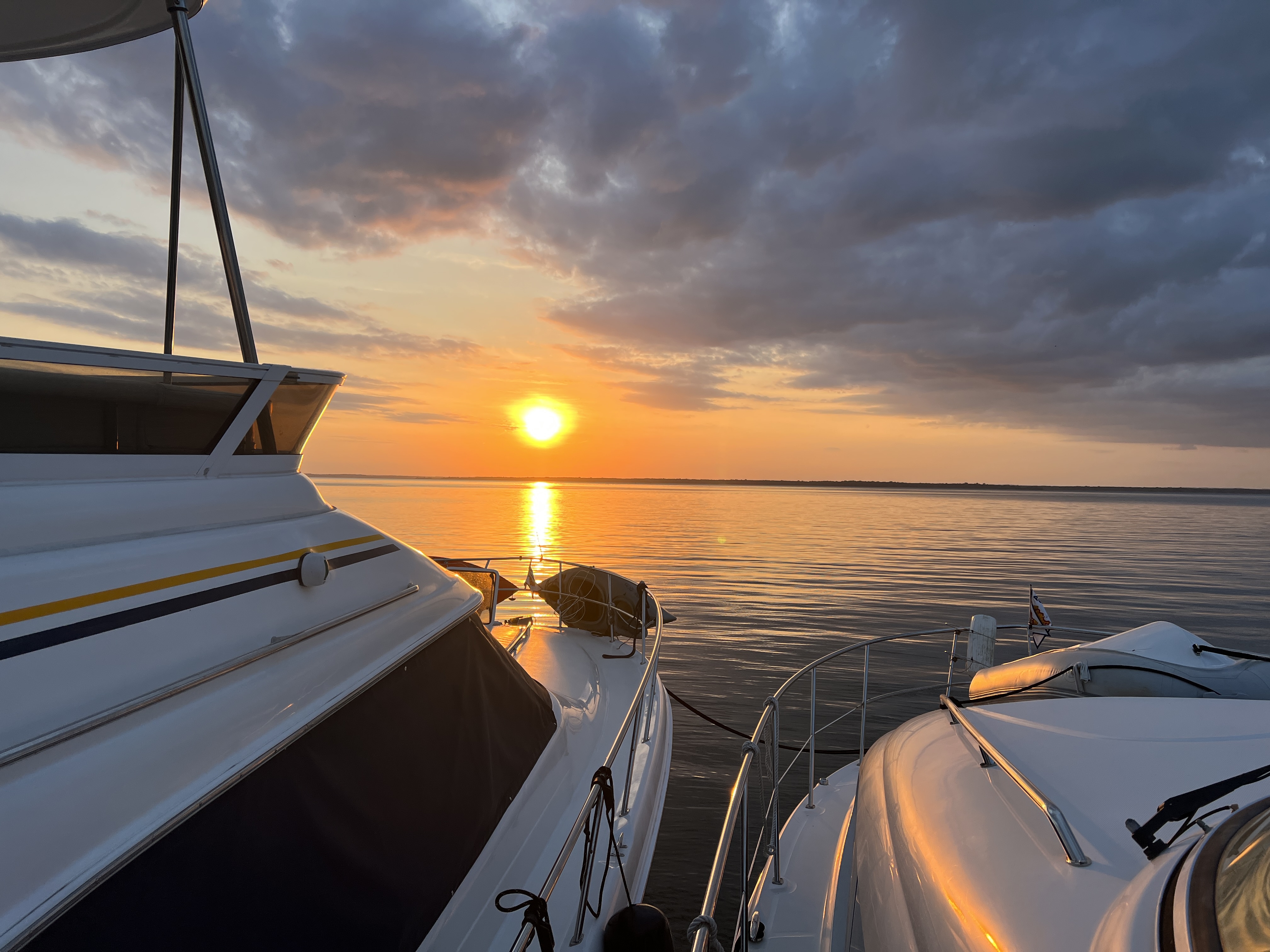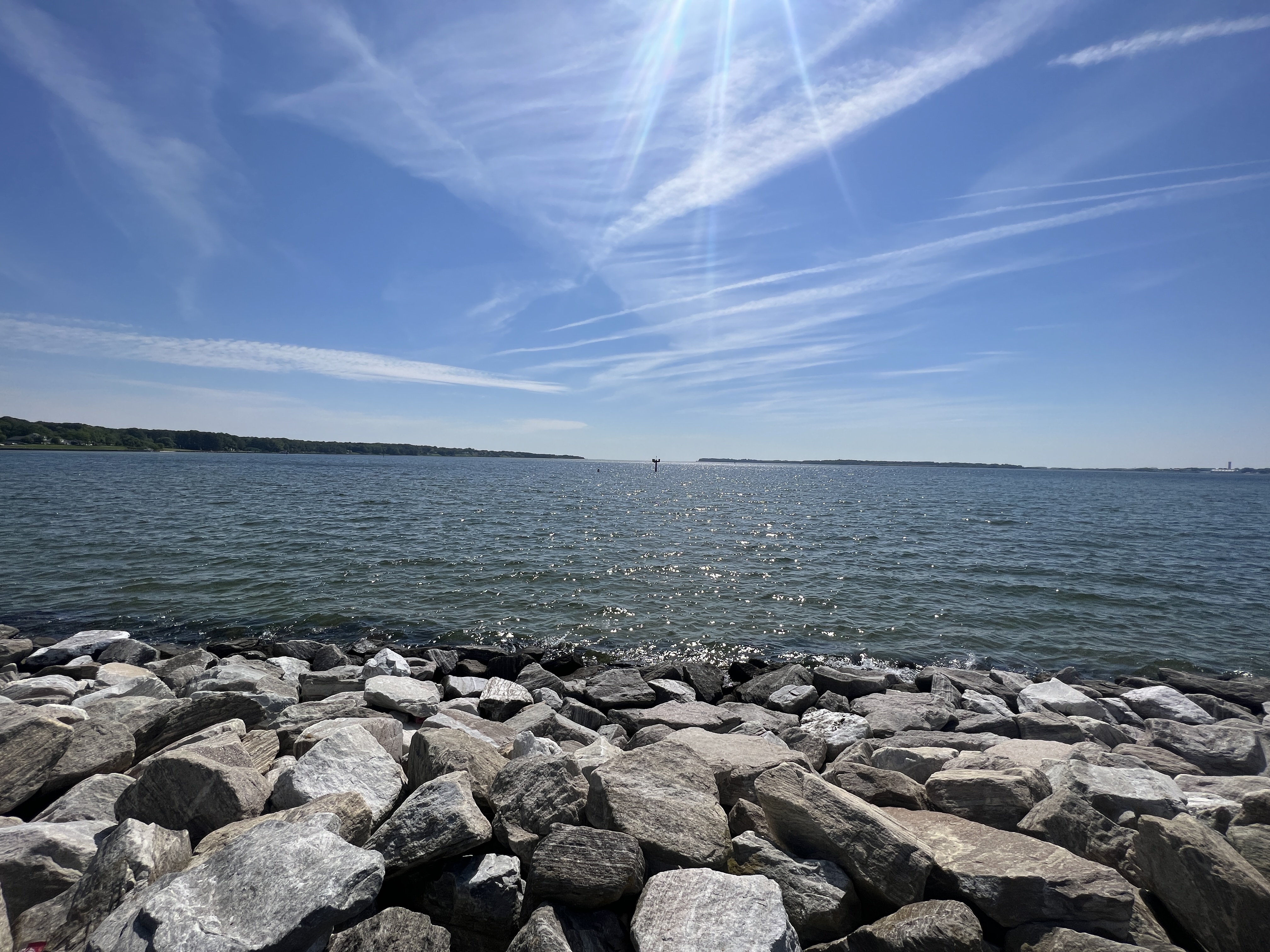 Tonia was pretty much in we’re going to die mode so, yeah, not fun. When we got close to Sandy Hook (the jog to the left on the map above Long Branch) she just wanted to stop and tuck in around the peninsula and anchor. Luckily, the waves “calmed” as we rounded the area, and I was able to convince her to complete the trip as planned to Great Kills Harbor. Thankfully Boris had Saga already hunkered down on a mooring ball and was at the ready in his dinghy to help us secure our mooring ball.