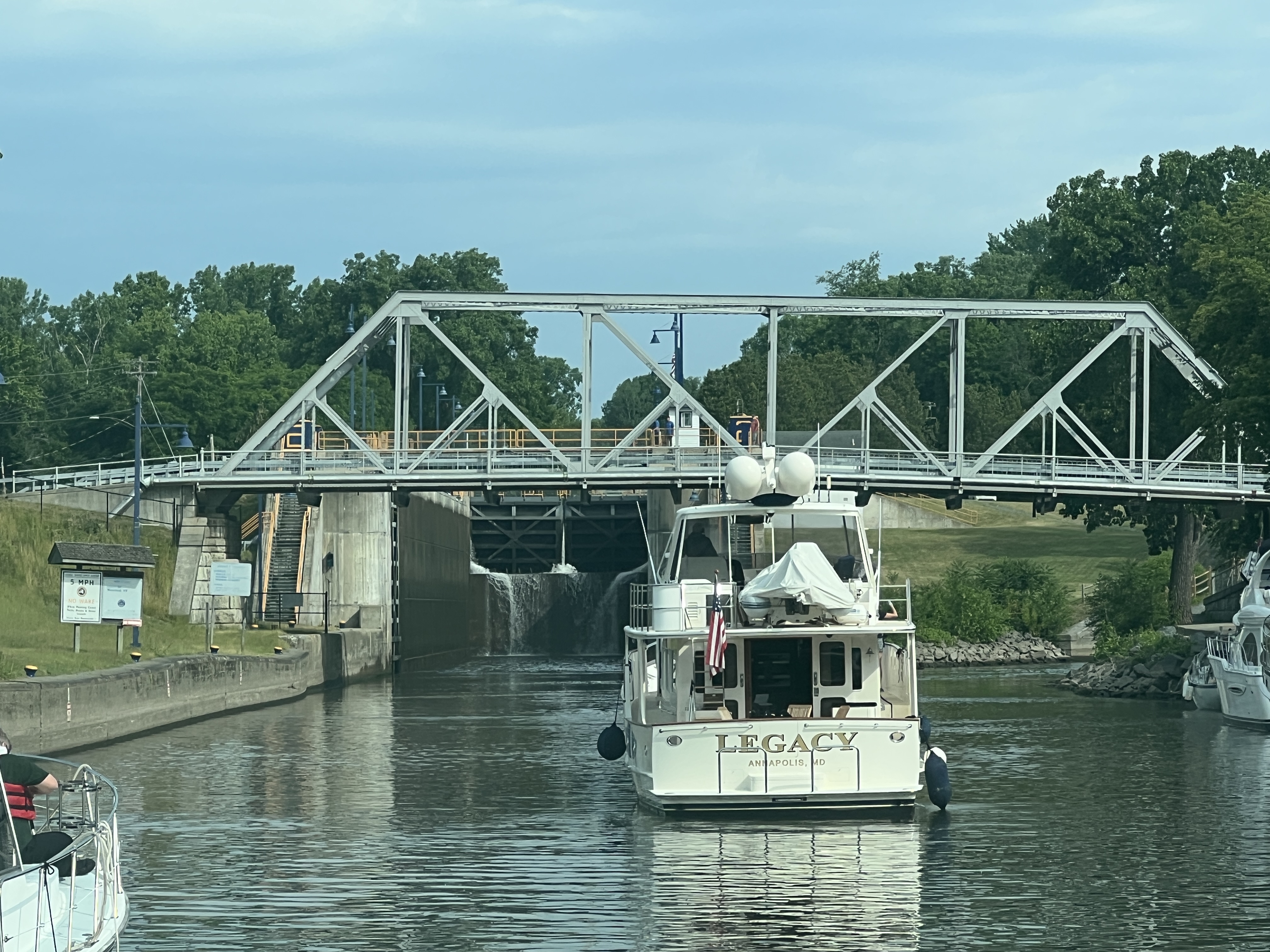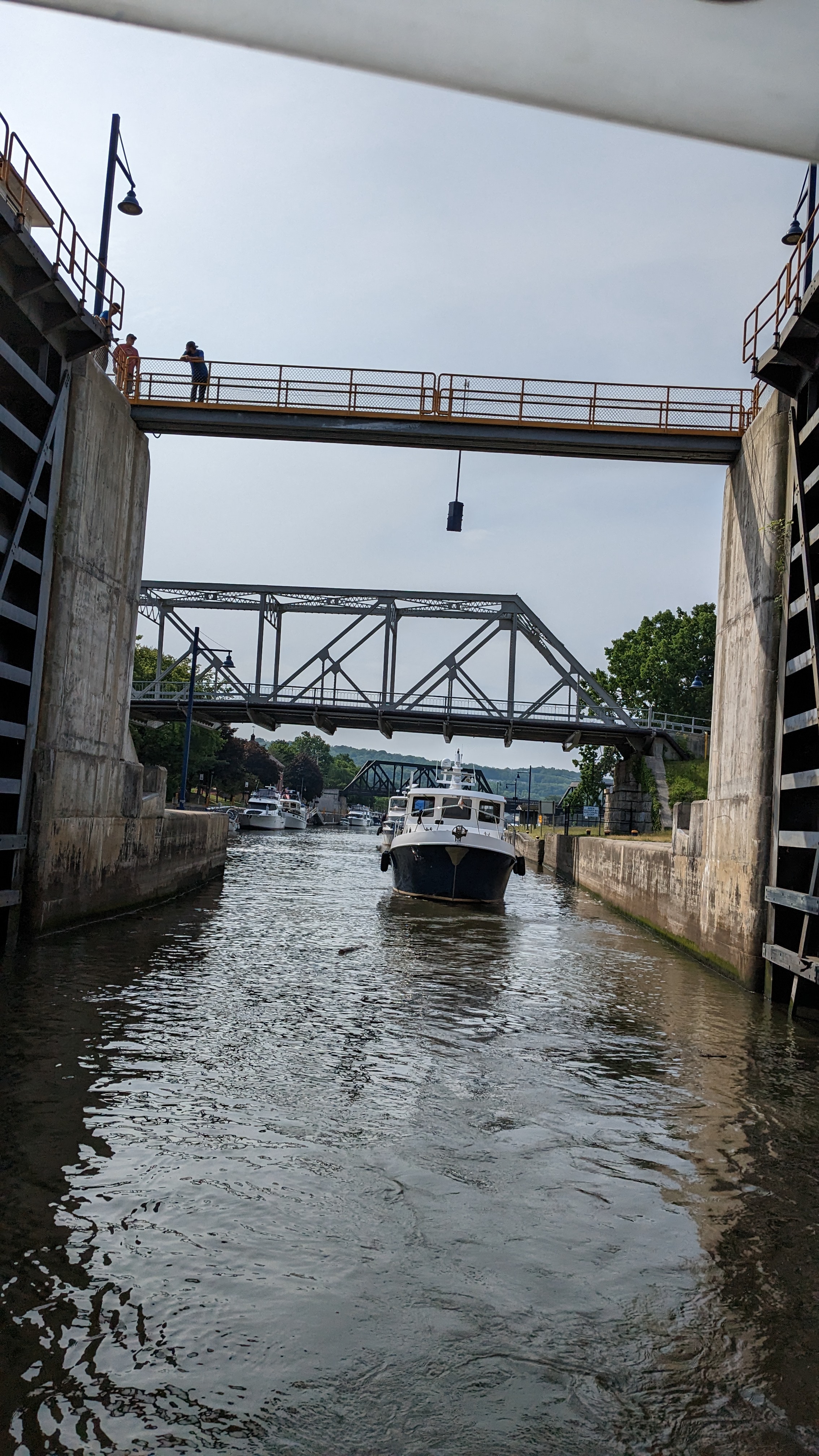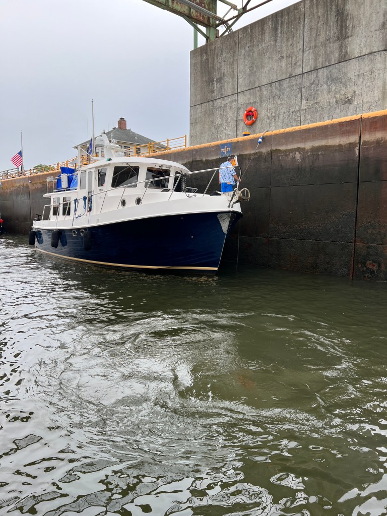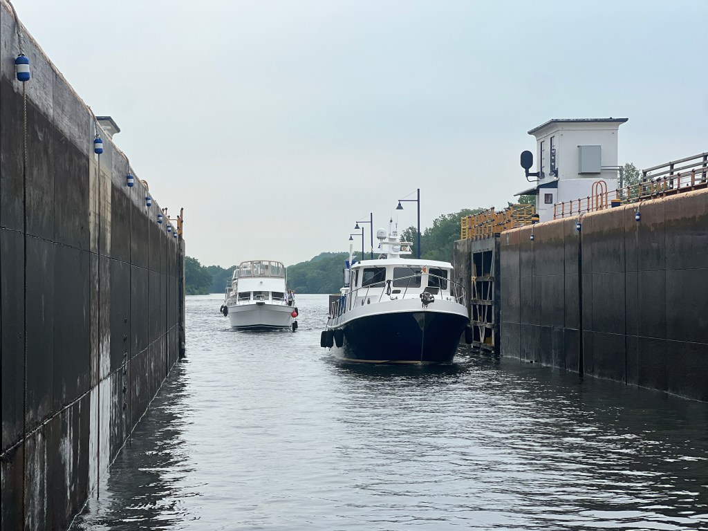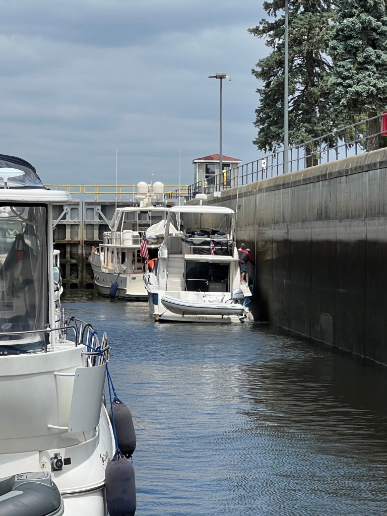 After the completing our segment on the Erie Canal we turned the boats north and into the Oswego Canal. The remainder of the day was transiting thru the O1 to O6 locks. We have tons of pictures, in part thanks to the great lock master at the O2 lock, Call J Metz. He takes lots of pictures and keeps the Great Loop group updated on river conditions and closures.