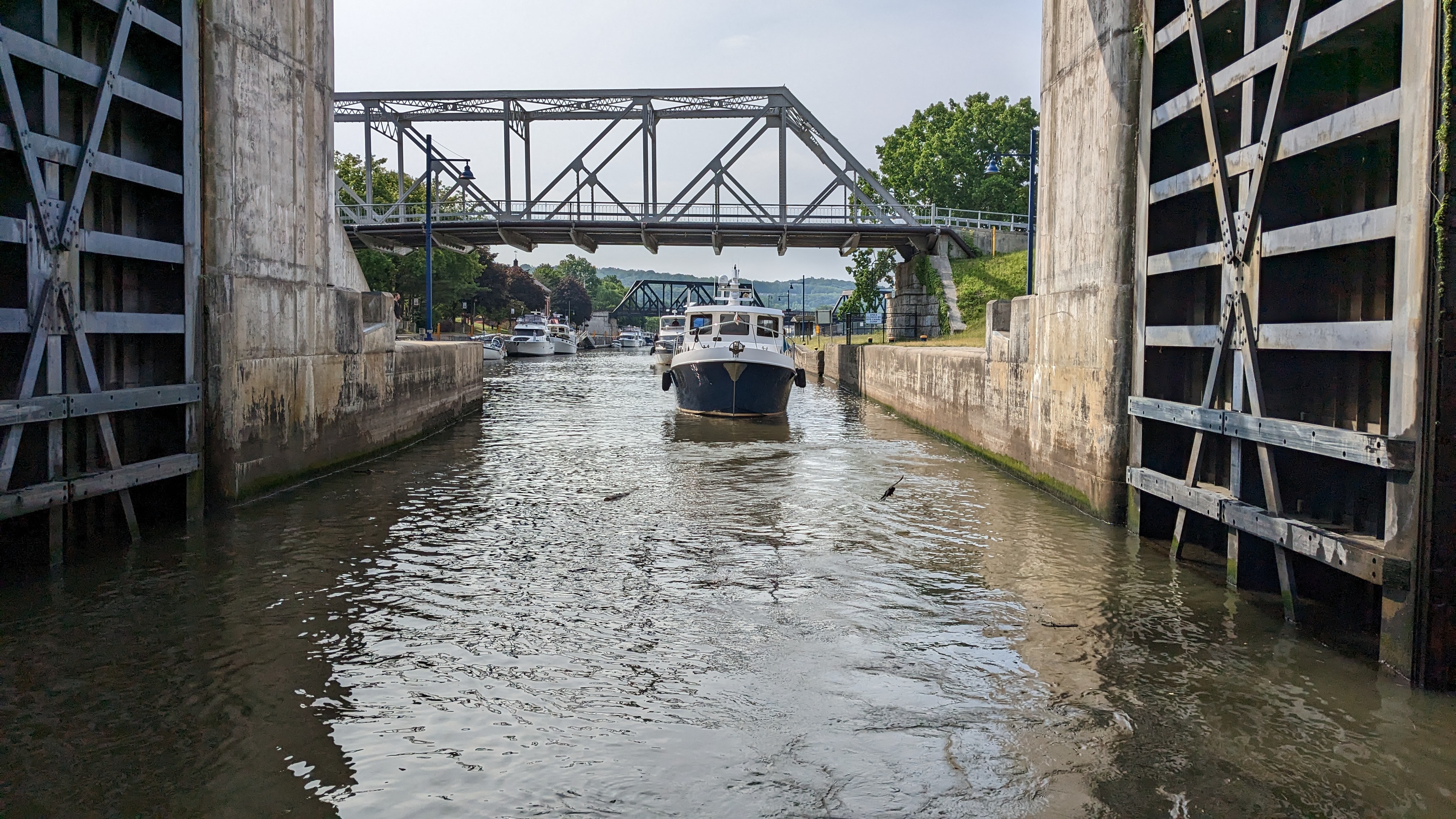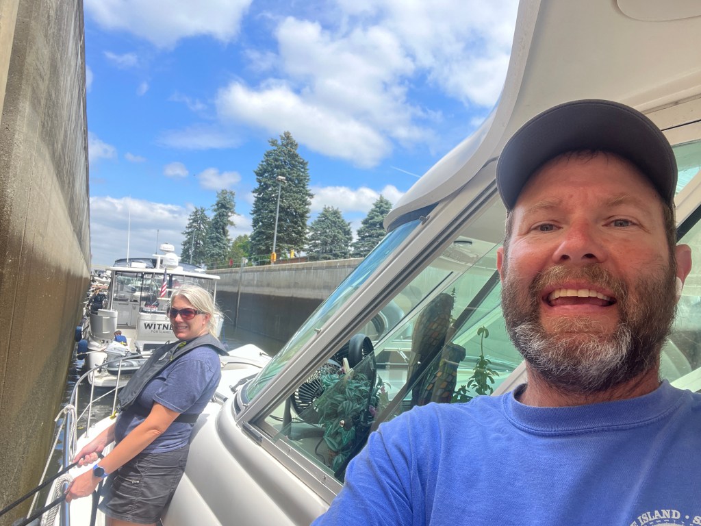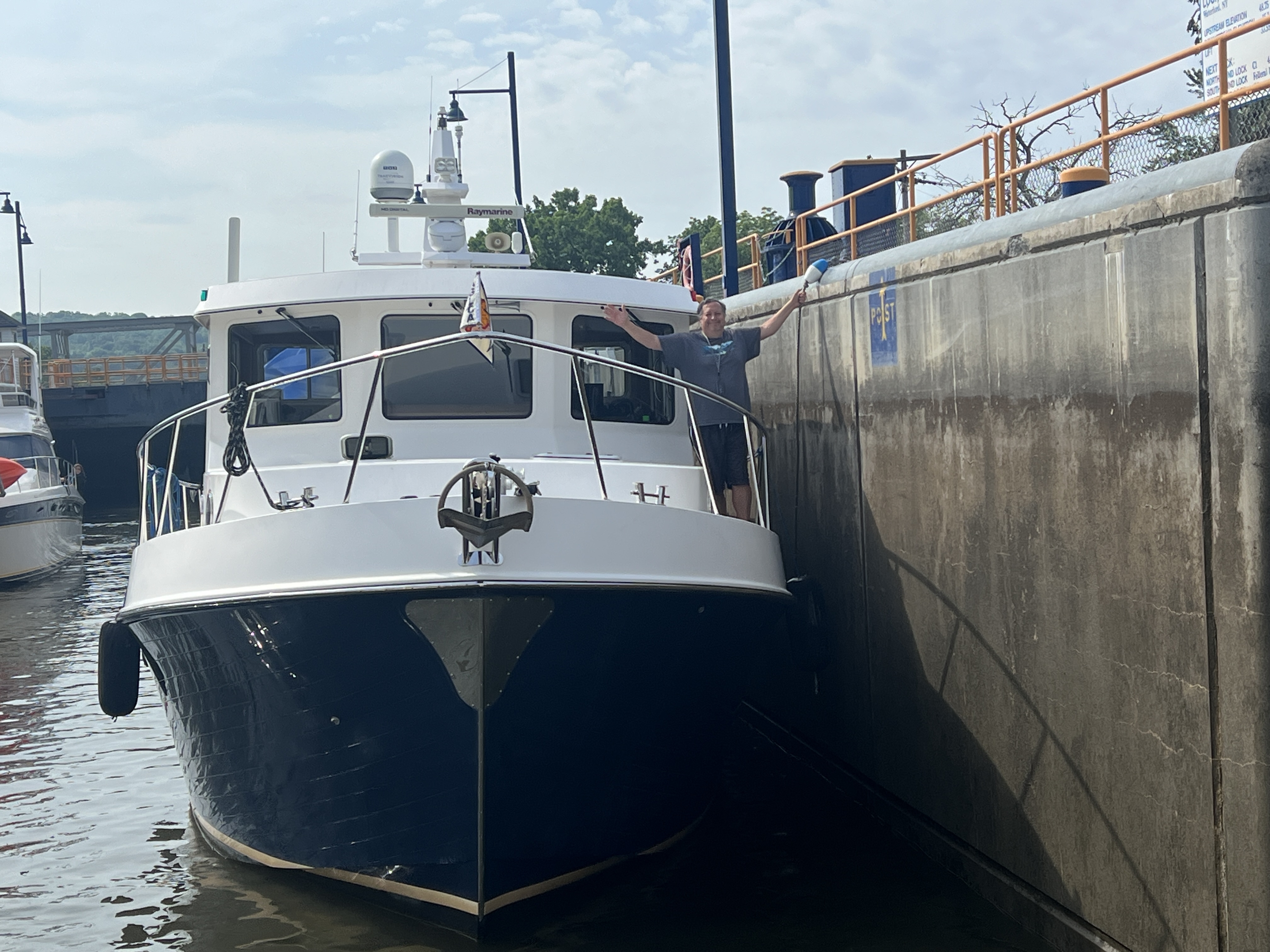 After the completing our segment on the Erie Canal we turned the boats north and into the Oswego Canal. The remainder of the day was transiting thru the O1 to O6 locks. We have tons of pictures, in part thanks to the great lock master at the O2 lock, Call J Metz. He takes lots of pictures and keeps the Great Loop group updated on river conditions and closures.
