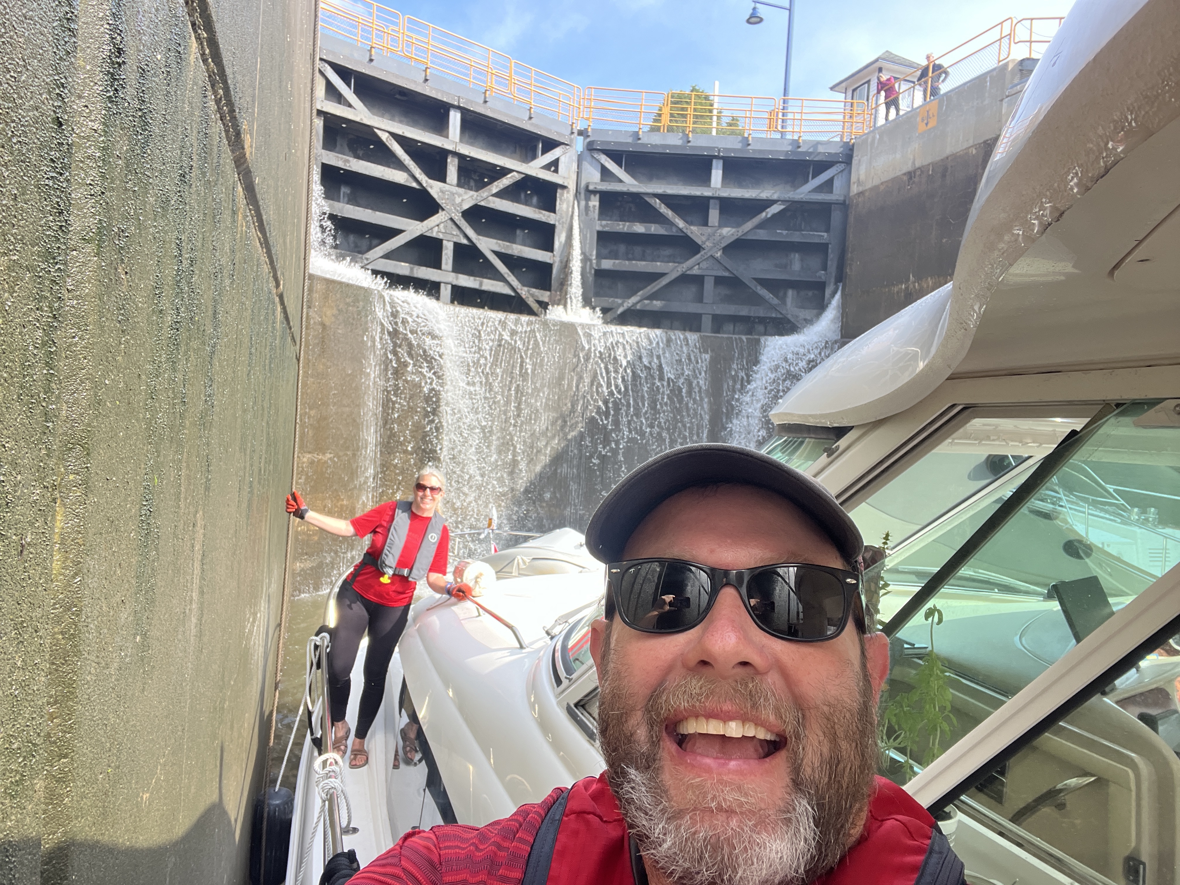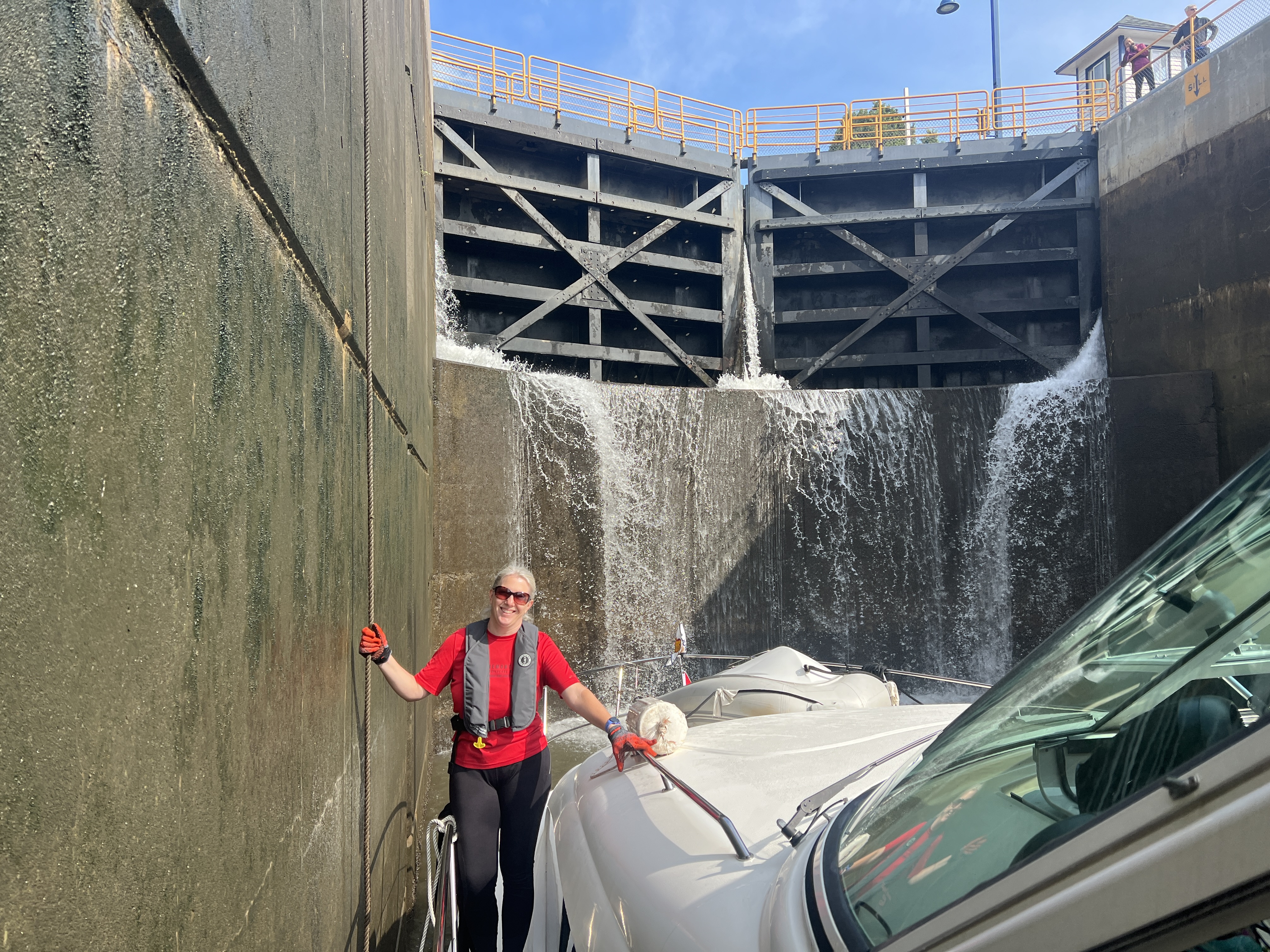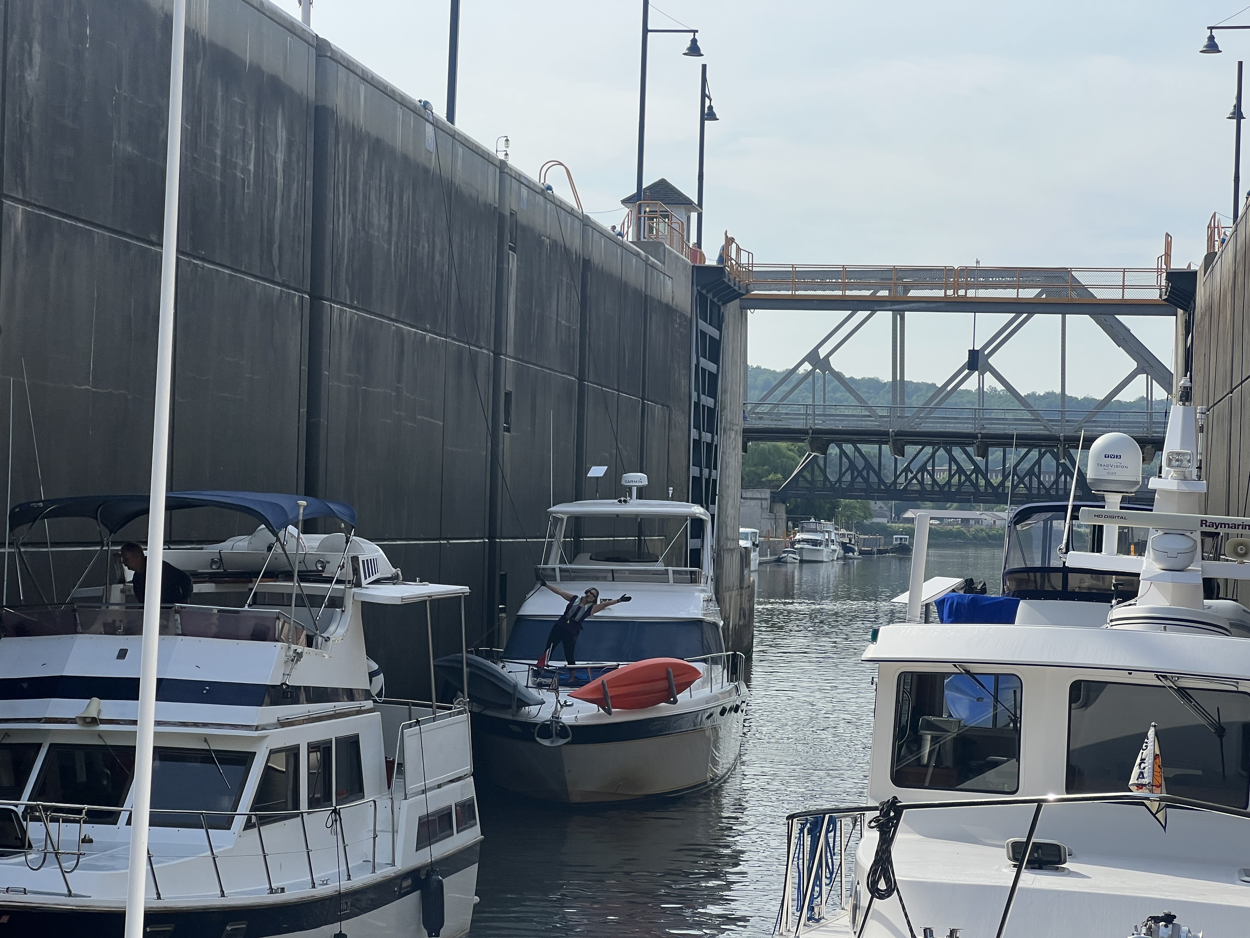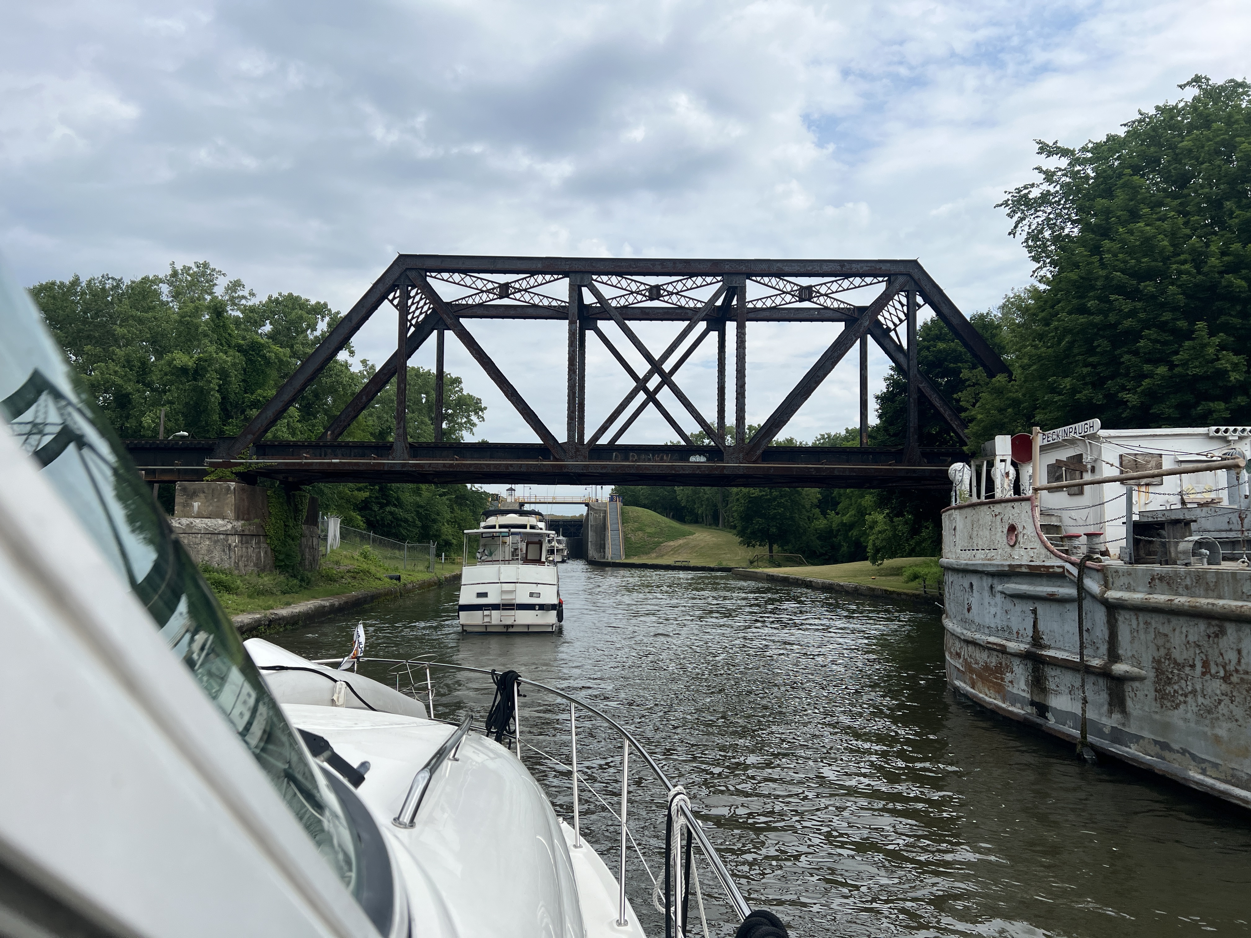 After the completing our segment on the Erie Canal we turned the boats north and into the Oswego Canal. The remainder of the day was transiting thru the O1 to O6 locks. We have tons of pictures, in part thanks to the great lock master at the O2 lock, Call J Metz. He takes lots of pictures and keeps the Great Loop group updated on river conditions and closures.