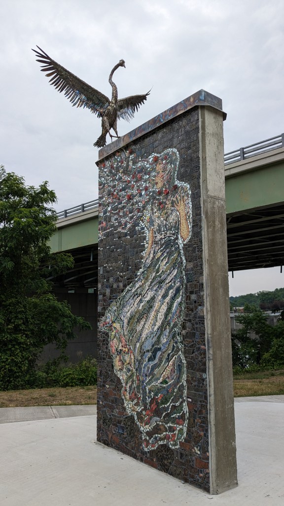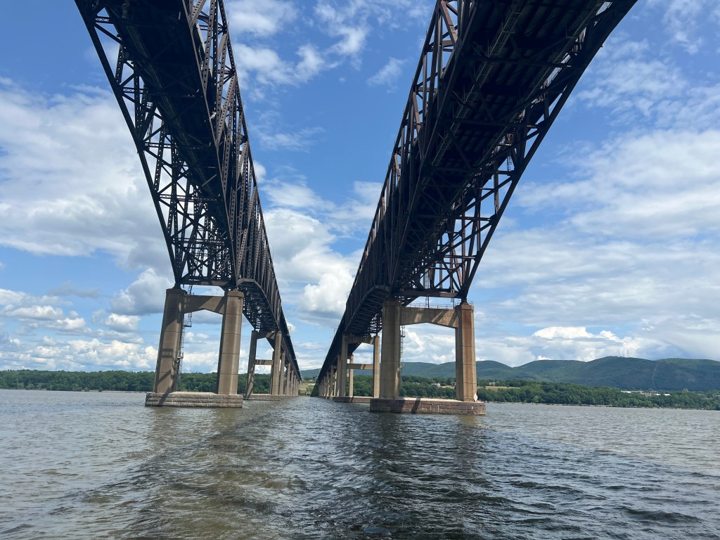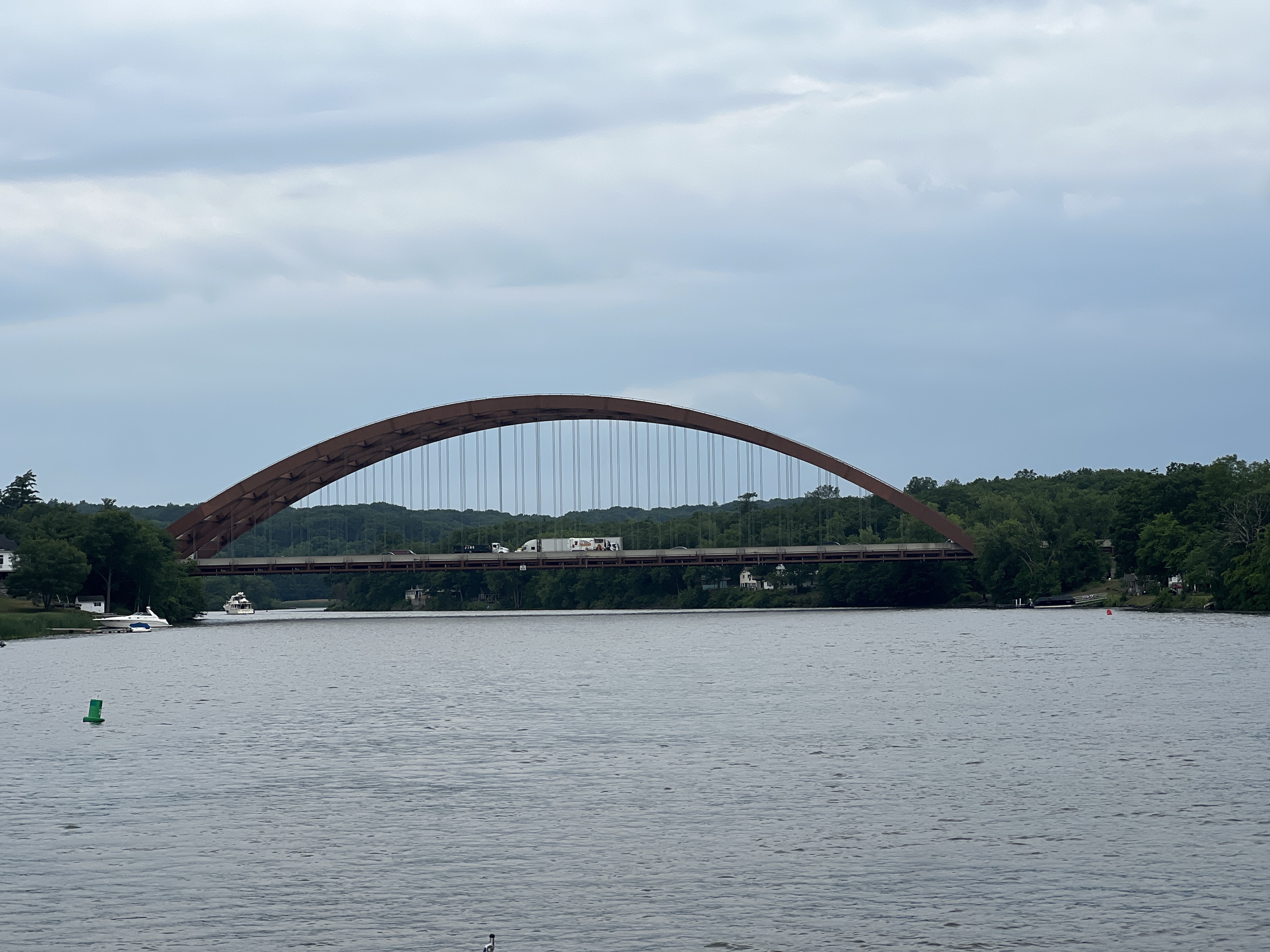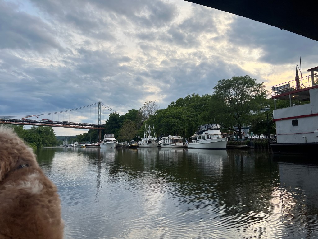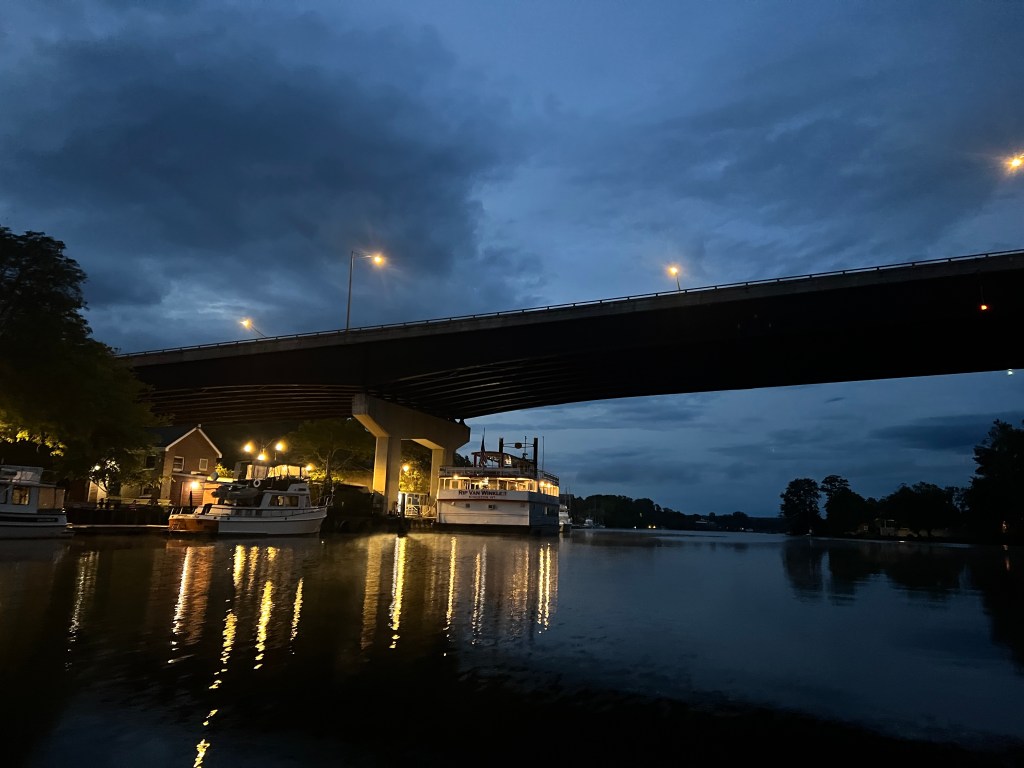 When we arrived, we were able to get on the free wall. The wall itself was a bit questionable with the cement crumbling away though suppose you pay for what you get and that’s just a place to tie up. There was a little gathering area so we had an impromptu docktails with the other boats that were already there. Later, we took the Harbor Rail Trail, which was a railway bridge converted to a walking trail, to the downtown area for their evening market.