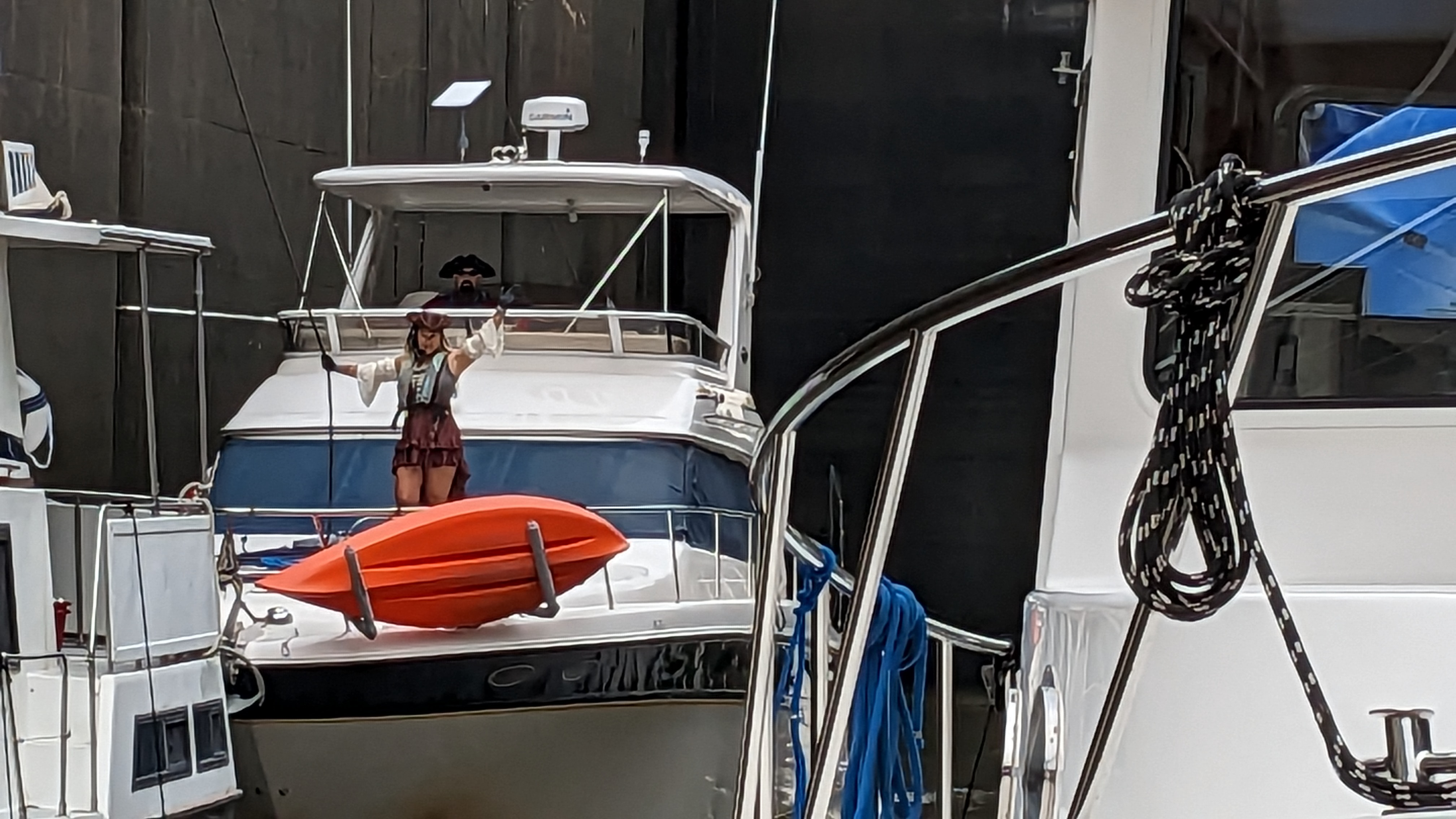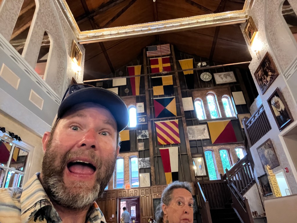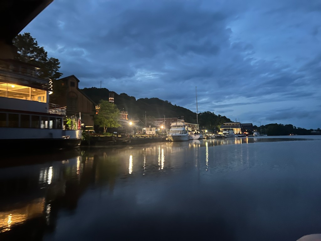 After that we started heading towards back to the boat. However, there was another bar so why not? We headed in for a last nightcap and this place turned out to be the local college dive bar, though college was out for summer so sparser than usual. Tonia decided to try the Sunny D she’d seen at the previous couple bars. It tastes pretty much how you’d expect a Sunny D to taste. Then, about 10 minutes later, a girl pops in and under the end of the bar. It was the bartender from the previous bar. Appears she works at both establishments. She commented that the other one will never miss her.