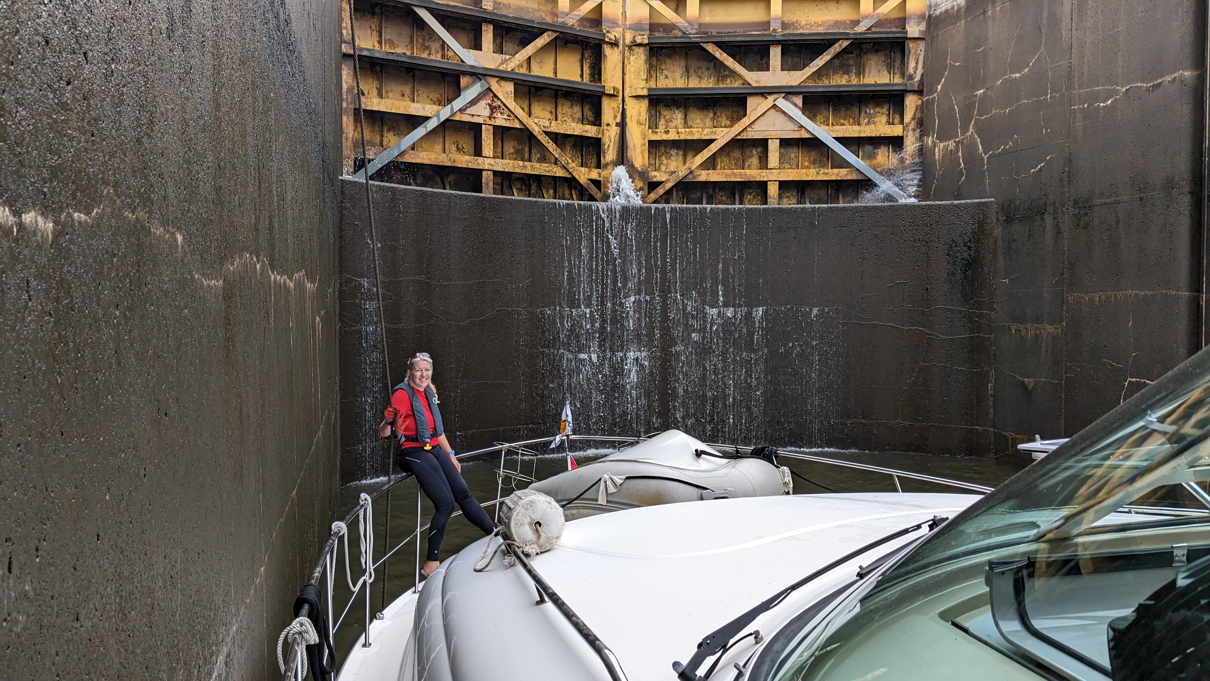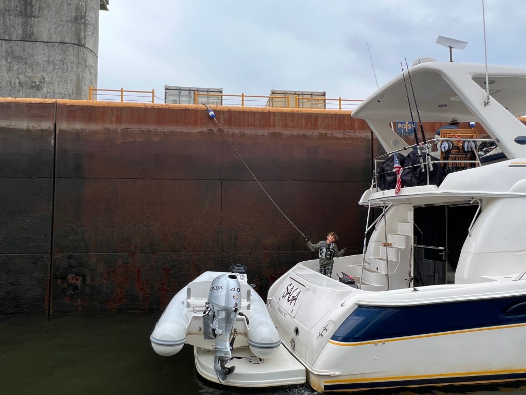 As we left the lock O5, we increased the RPMs and the port engine died. It restarted fine but then had issues again at higher RPMs. It led to a little anxiety when arriving at lock O6 and then docking on the wall at Oswego.