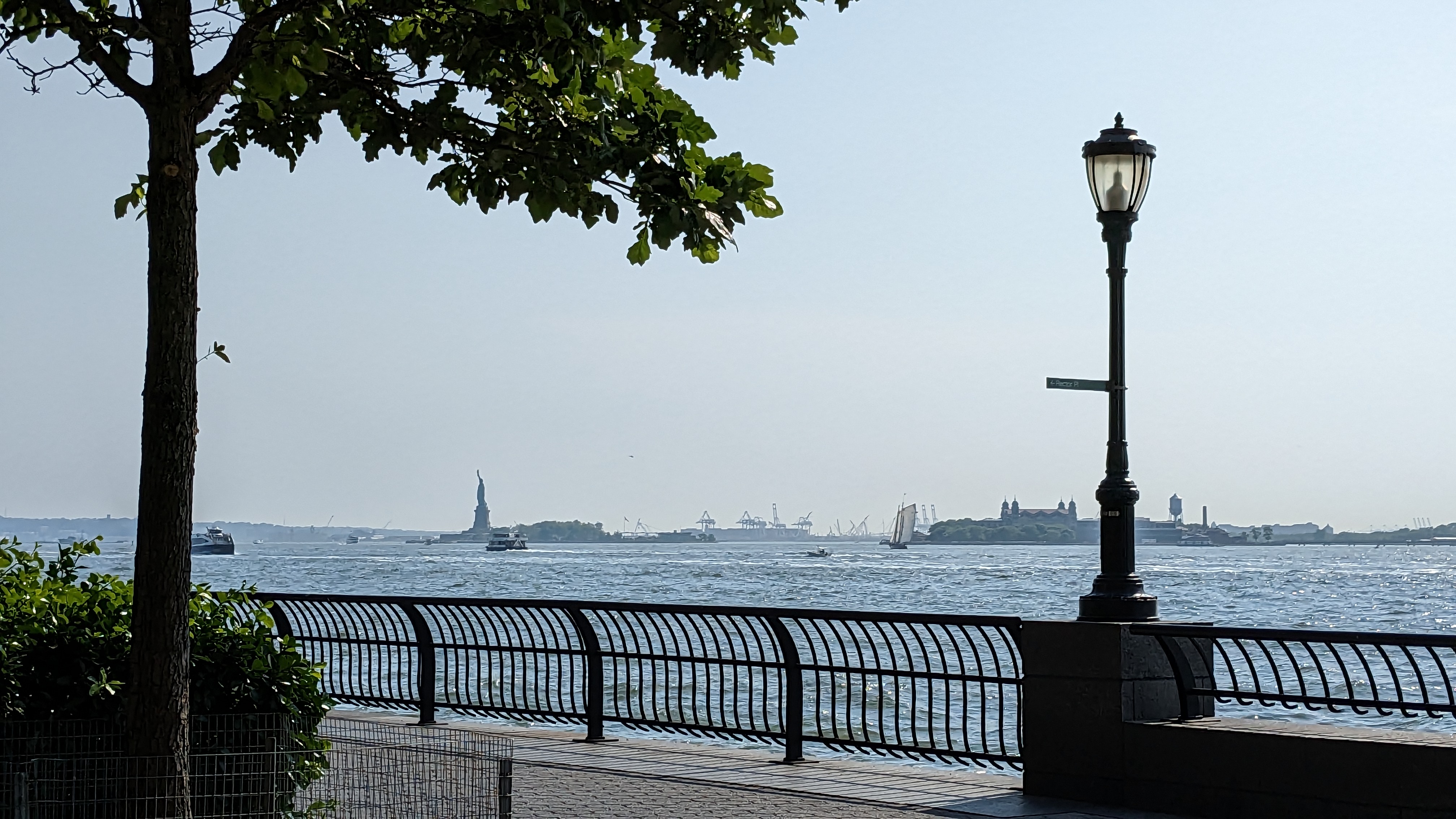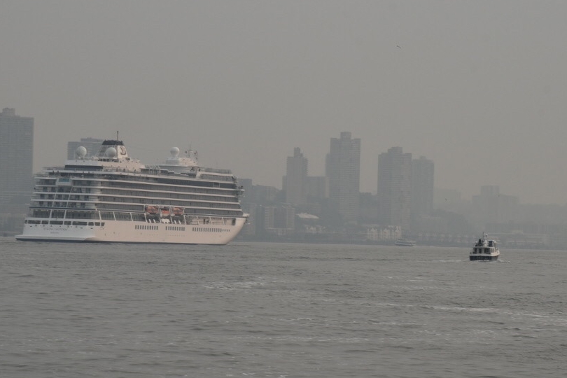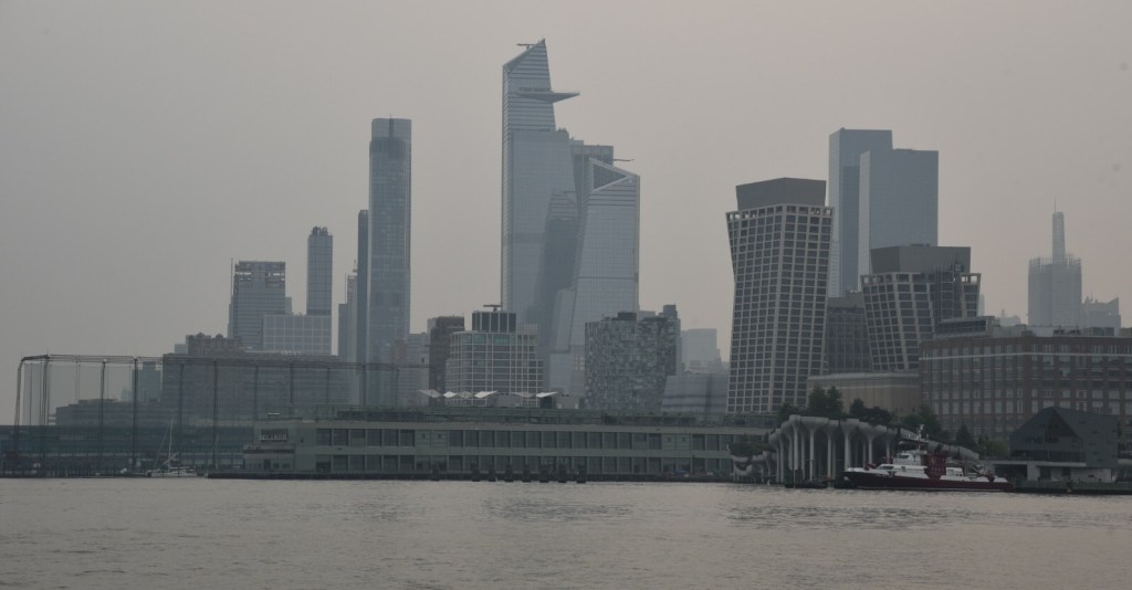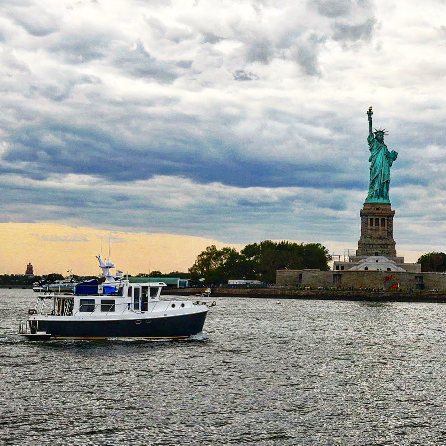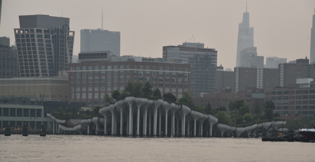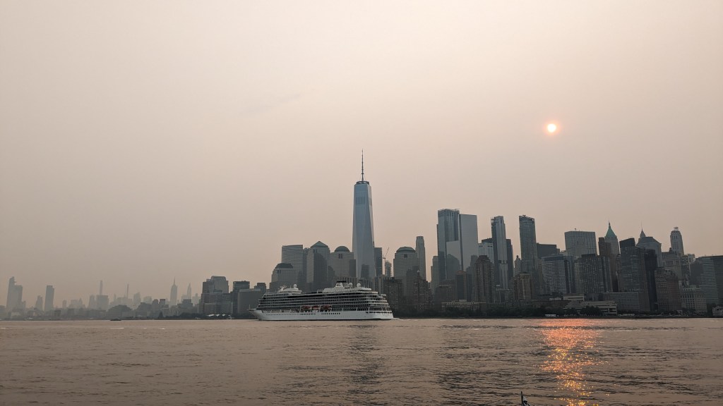 We left our mooring balls and made the trek up to take the obligatory pictures as we passed Ms. Liberty and anchored on the side of Ellis Island. It was a bit rocky there though we managed by anchoring separately. Overnight the smoke from northern wildfires started coming in and, in the morning, we were in full-on haze.