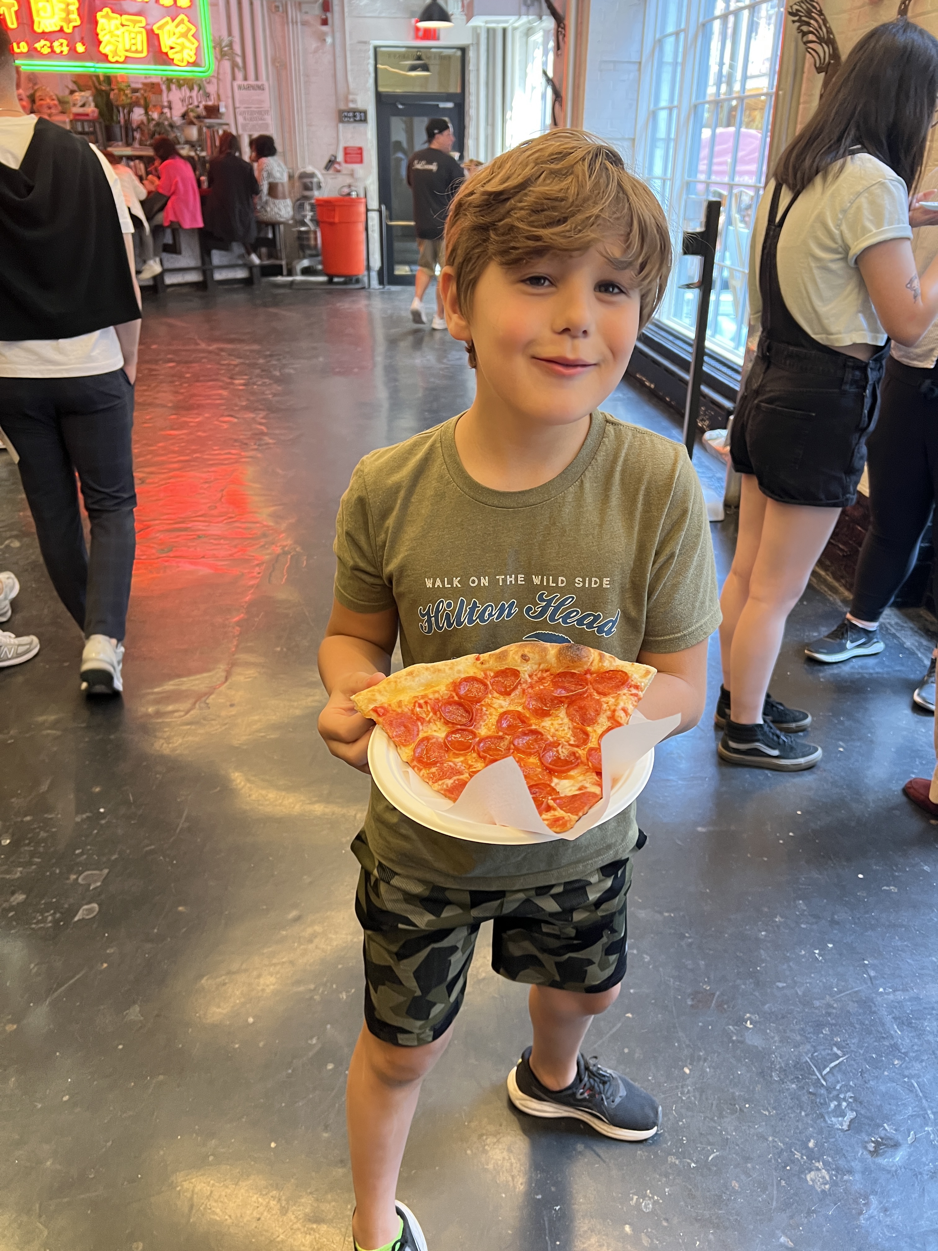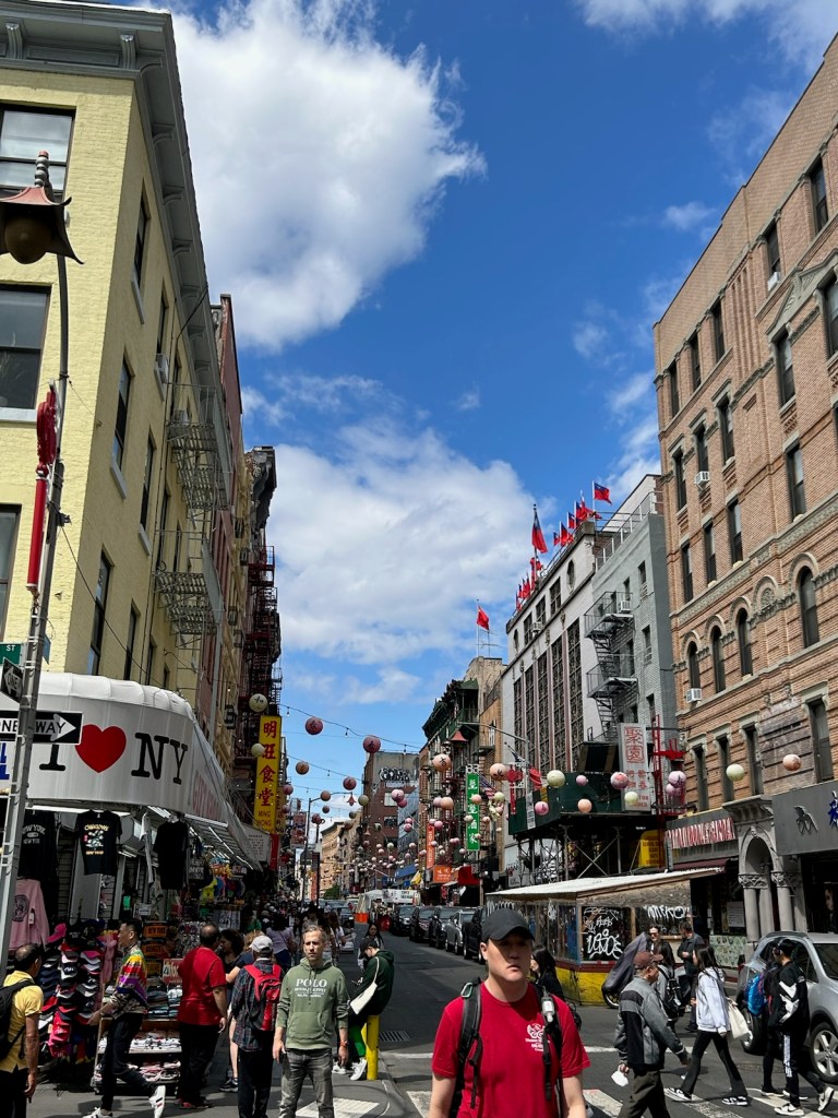 We made our way to Chinatown to take in the shops, markets, and restaurants. We decided to hit up a couple options that overlapped on Boris and Holly’s suggested lists. The first stop was Tonii’s Fresh Rice Noodle for a selection of dishes to share. Next up was Wo Hop, which had a bit of a line though we got in relatively quickly considering our group of seven. Wo Hop is a third-generation restaurant open since 1938, the second oldest in Manhattan, and 2022 James Beard award winner — plus featured on The Marvelous Mrs. Maisel TV show and visited by countless celebrities who have signed their headshots or dollar bills posted on their walls. We were seated in the downstairs area near the kitchen and shared family style so we could all try the dishes. We’d say best Chinese food restaurant outside of China! Then, to appease the kids (and satisfy the ice cream obsessed adults), we stopped at the Chinatown Ice Cream Factory. They offered some flavors we hadn’t seen before. Michael even tried the durian ice cream (side note, durian is a foul-smelling fruit) and said it was actually good.