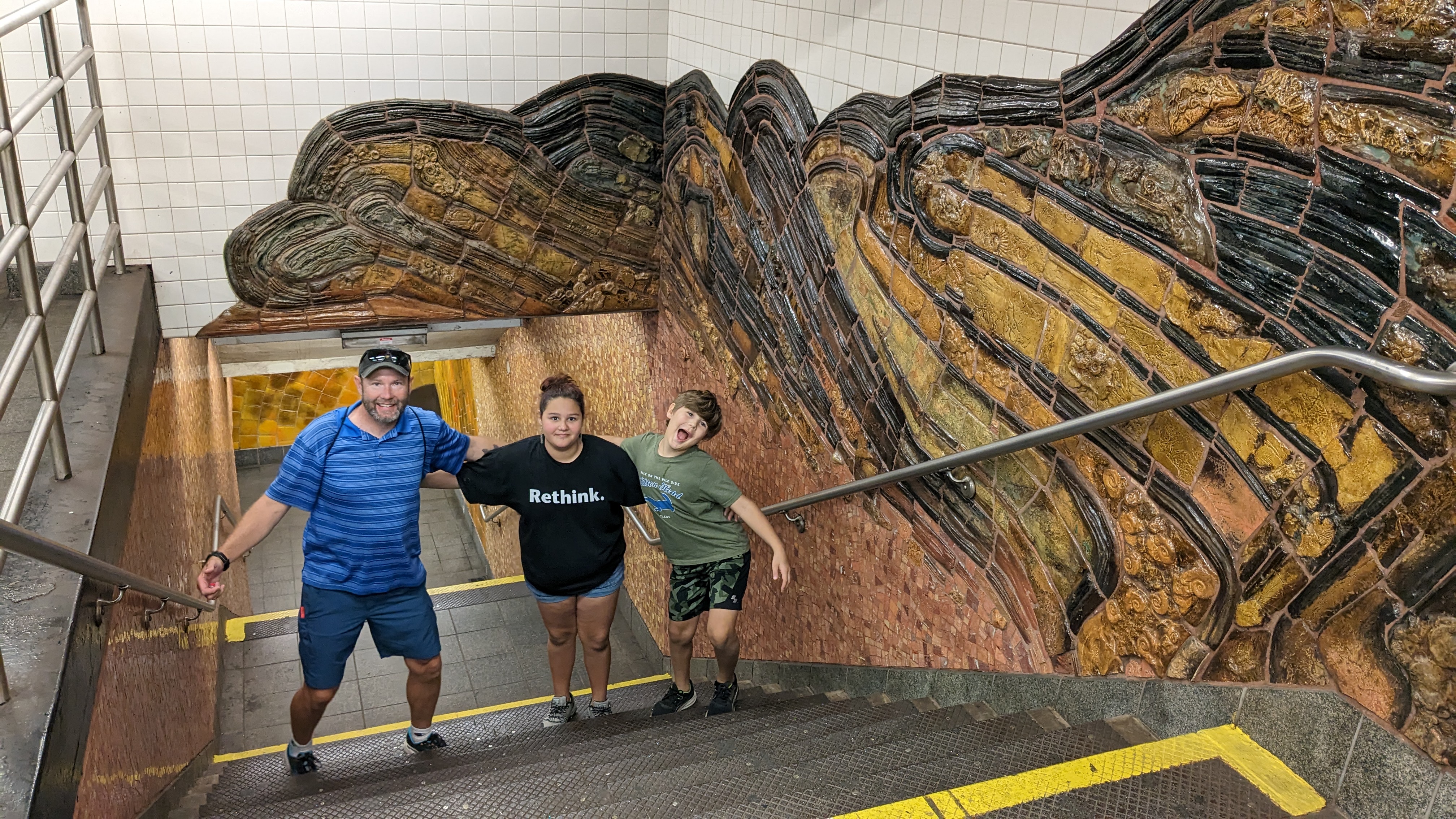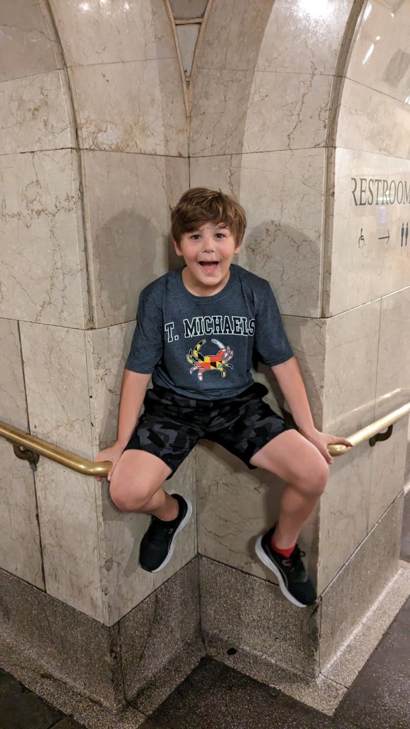 The next stop was Grand Central Station. It was fun to see all the cool areas and try out the whispering wall, which the kids loved. To clarify, the “whispering wall” is located with corners next to the bathroom signs so makes for some odd-looking whisperers!