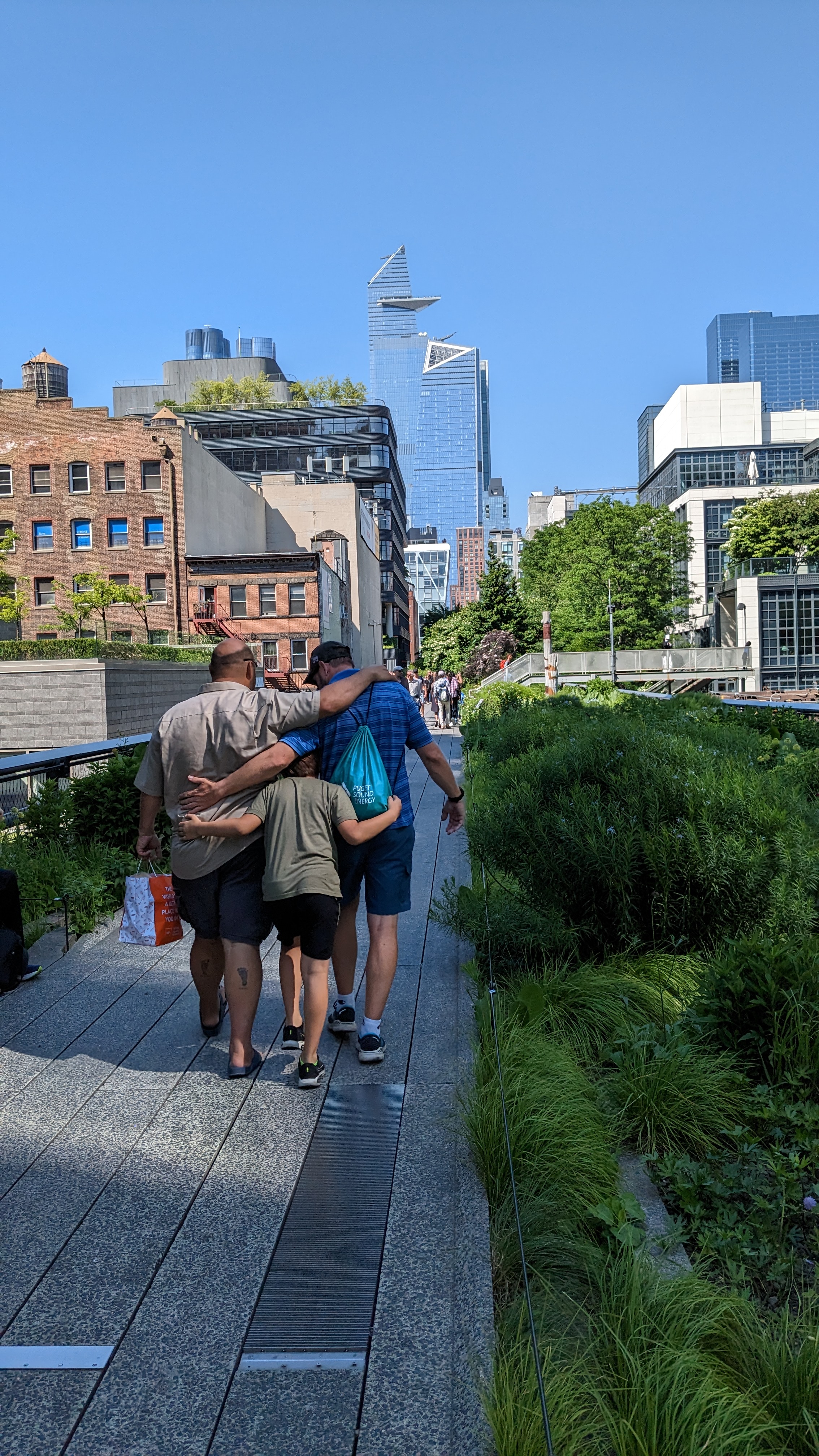 After the park it was time to meet up with Boris. We decided we’d head for The High Line, which was recommended by our friend Suzanne who’s currently boating in Alaska. The High Line is an old, elevated train line that’s no longer in use and has been converted to a park and walking path with lots of artwork.