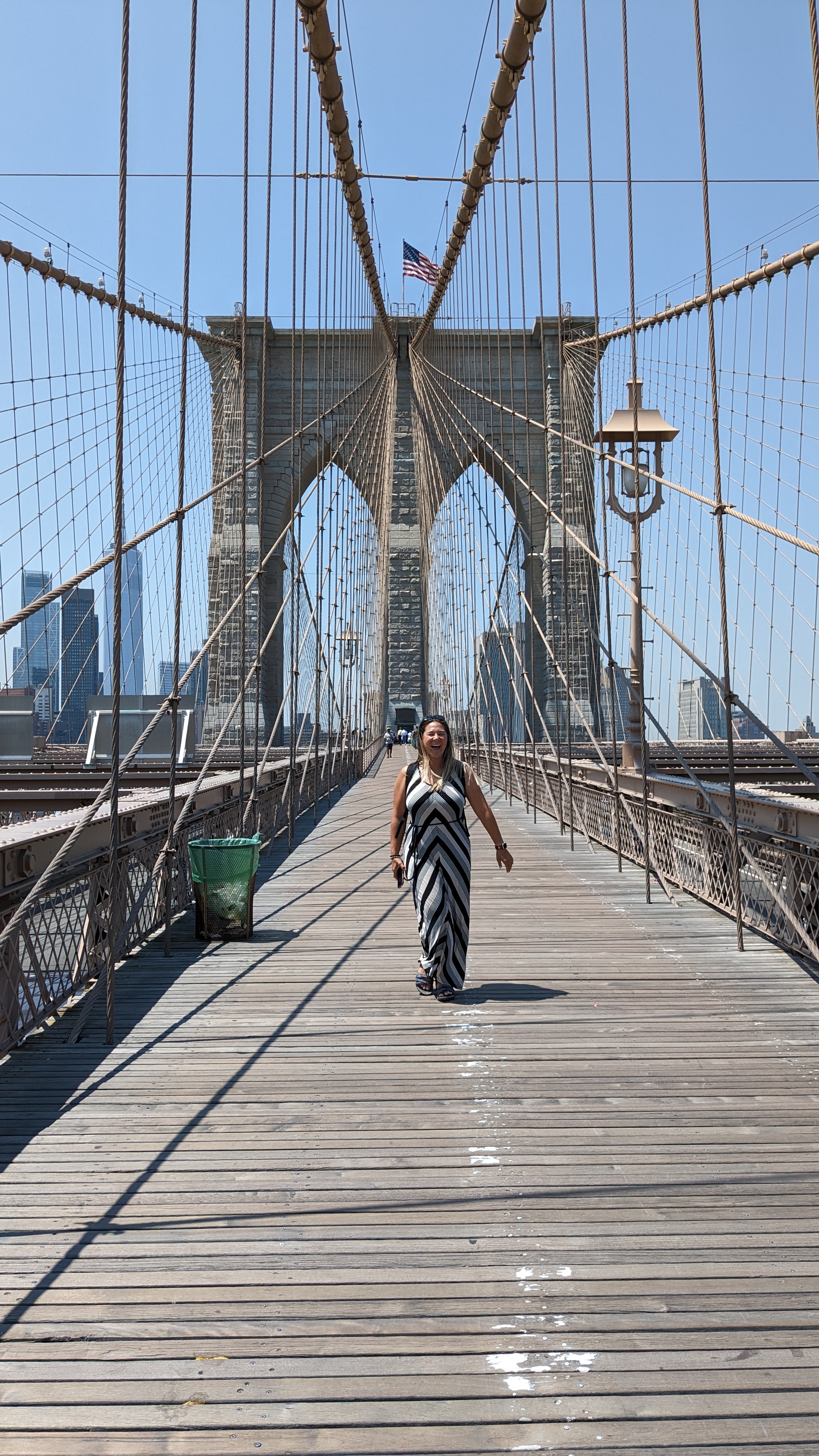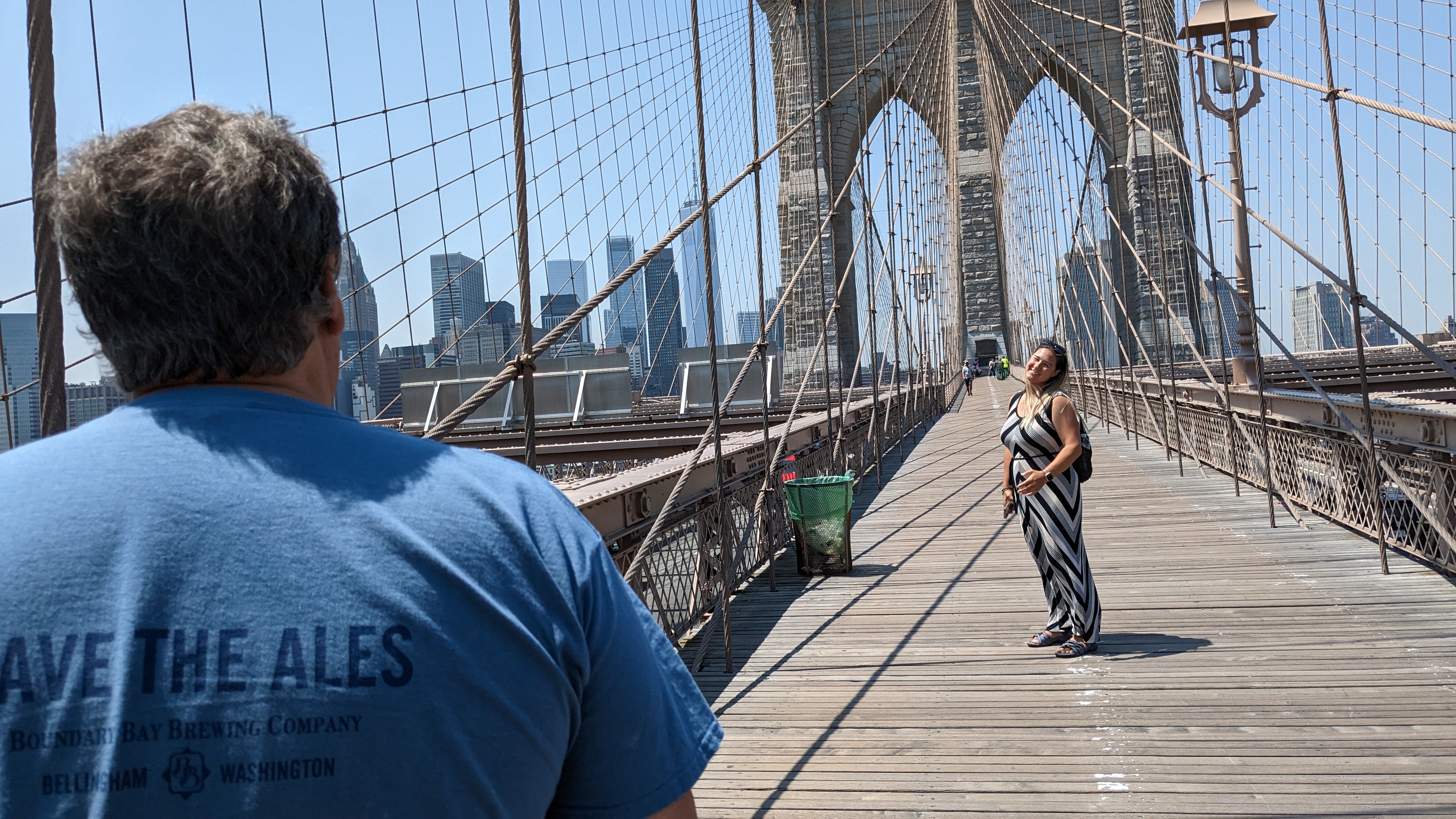 Next, it was time to venture to the Brooklyn Bridge and take a walk over. The Manhattan side is packed with venders and many more tourists. The Brooklyn side of the bridge had far less people and Steve could even do a photo shoot of Mayli. It was a nice stroll with a frosty beer and ice cream at the end.