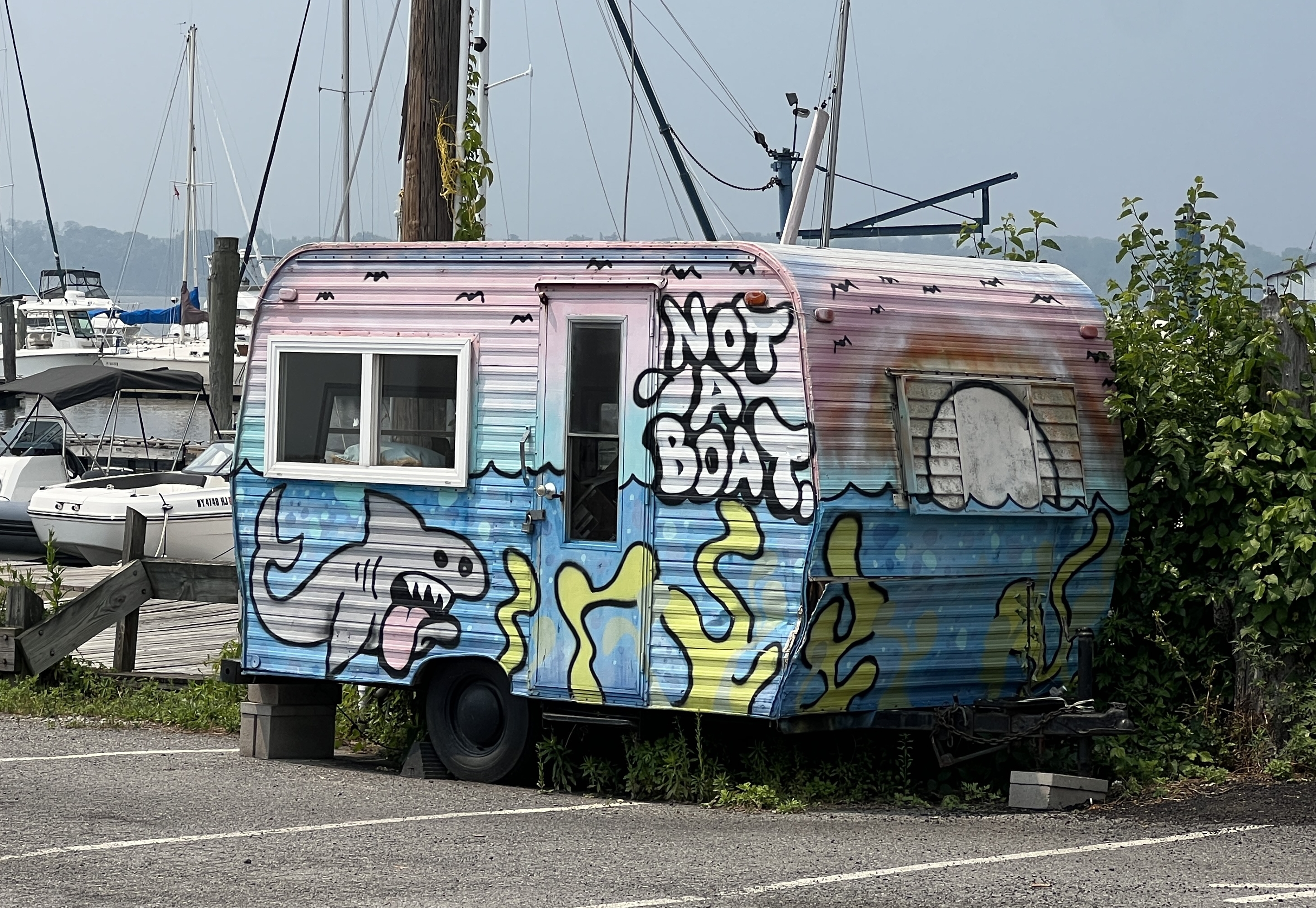 We spent a couple days wandering around Ossining. The wildfire smoke was very heavy and thus we only did short stints outside the filtered air of our boats. Our K99 masks came in handy again, unfortunately.