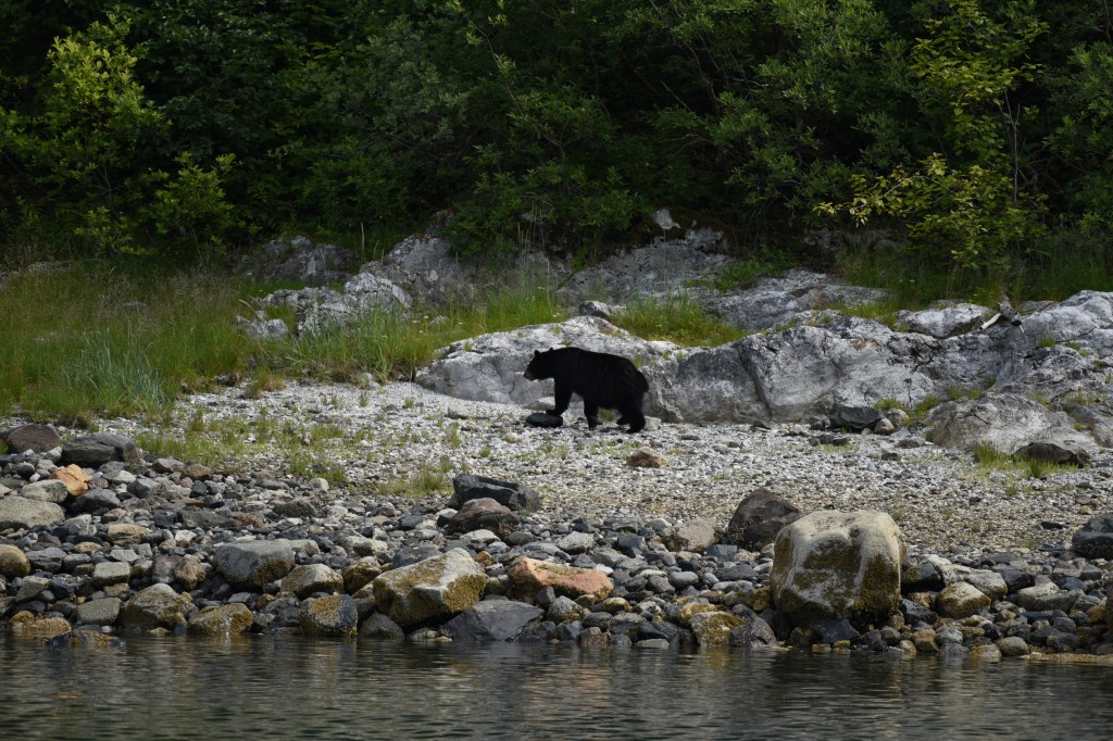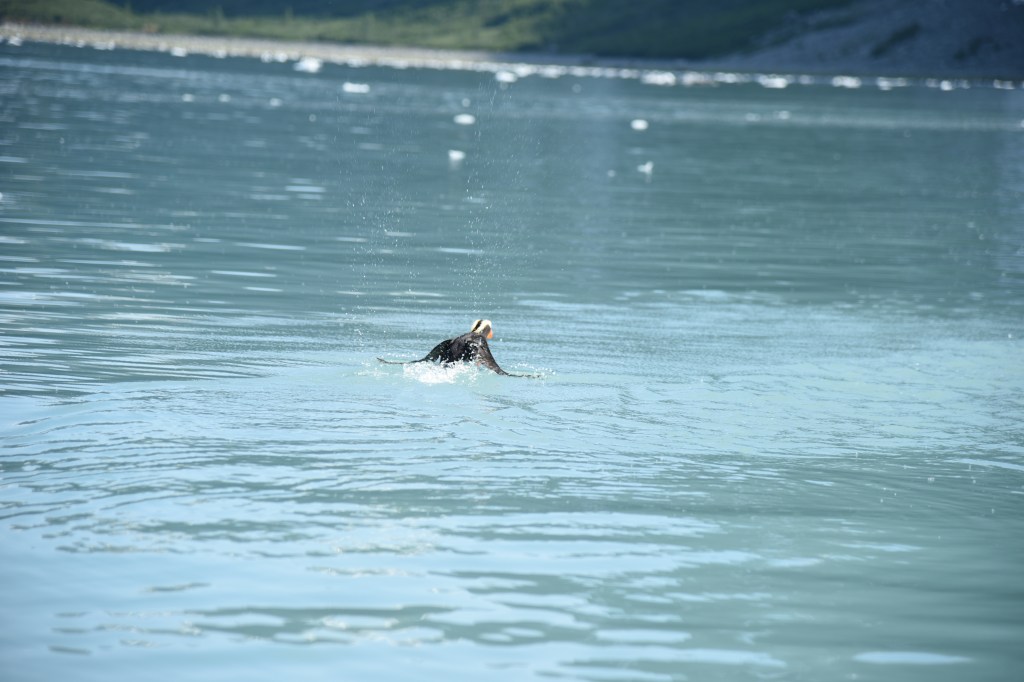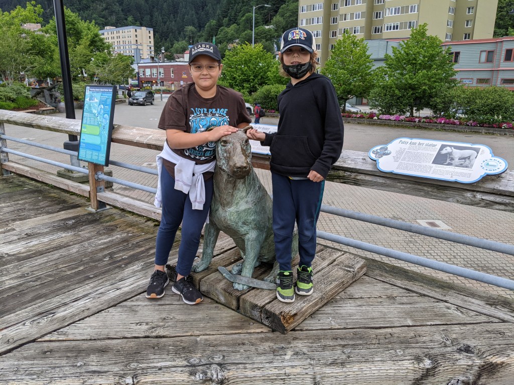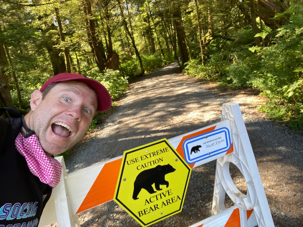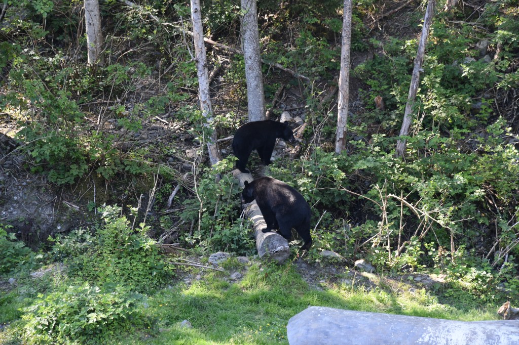 We were a bit beat after walking the park and trail, even with parts closed to bear sighting 5 days ago (see pic above), so hailed the Toad Taxi for a ride to the Fortress of the Bear, a rescue facility for cubs five miles outside of town. While a bit odd to view them in the converted waste-water treatment facility, the Alaska brown bears seemed to be having quite the good time playing in the water on this warmer day. There were three black bears ambling around too, one of which seemed to get on another’s nerves quite a bit!
