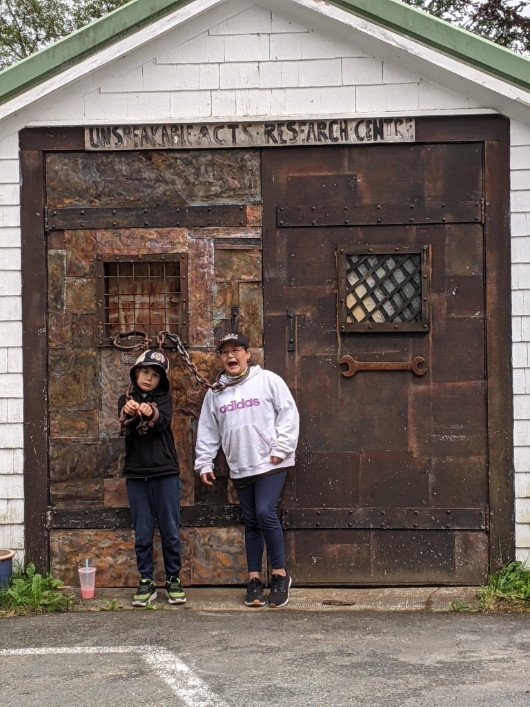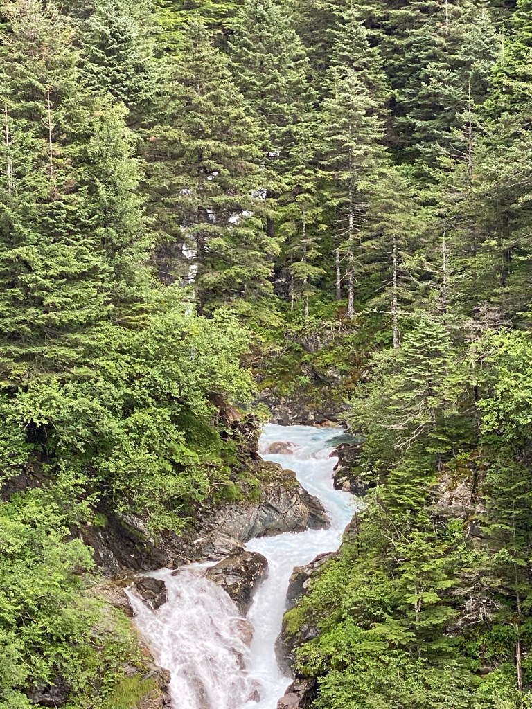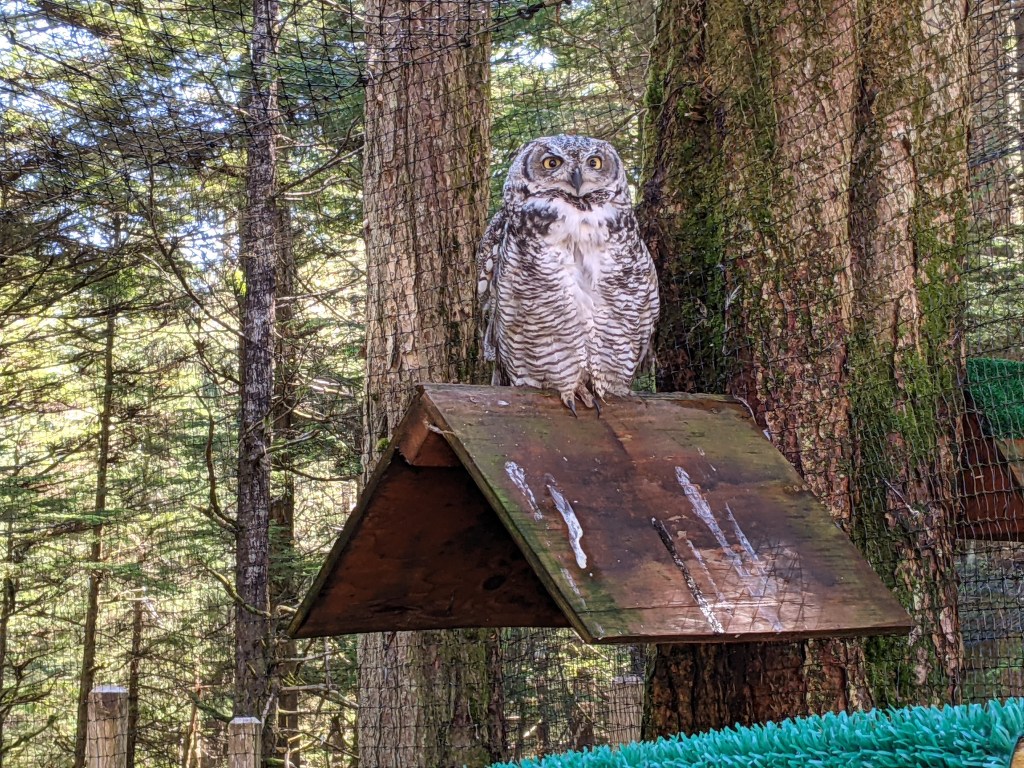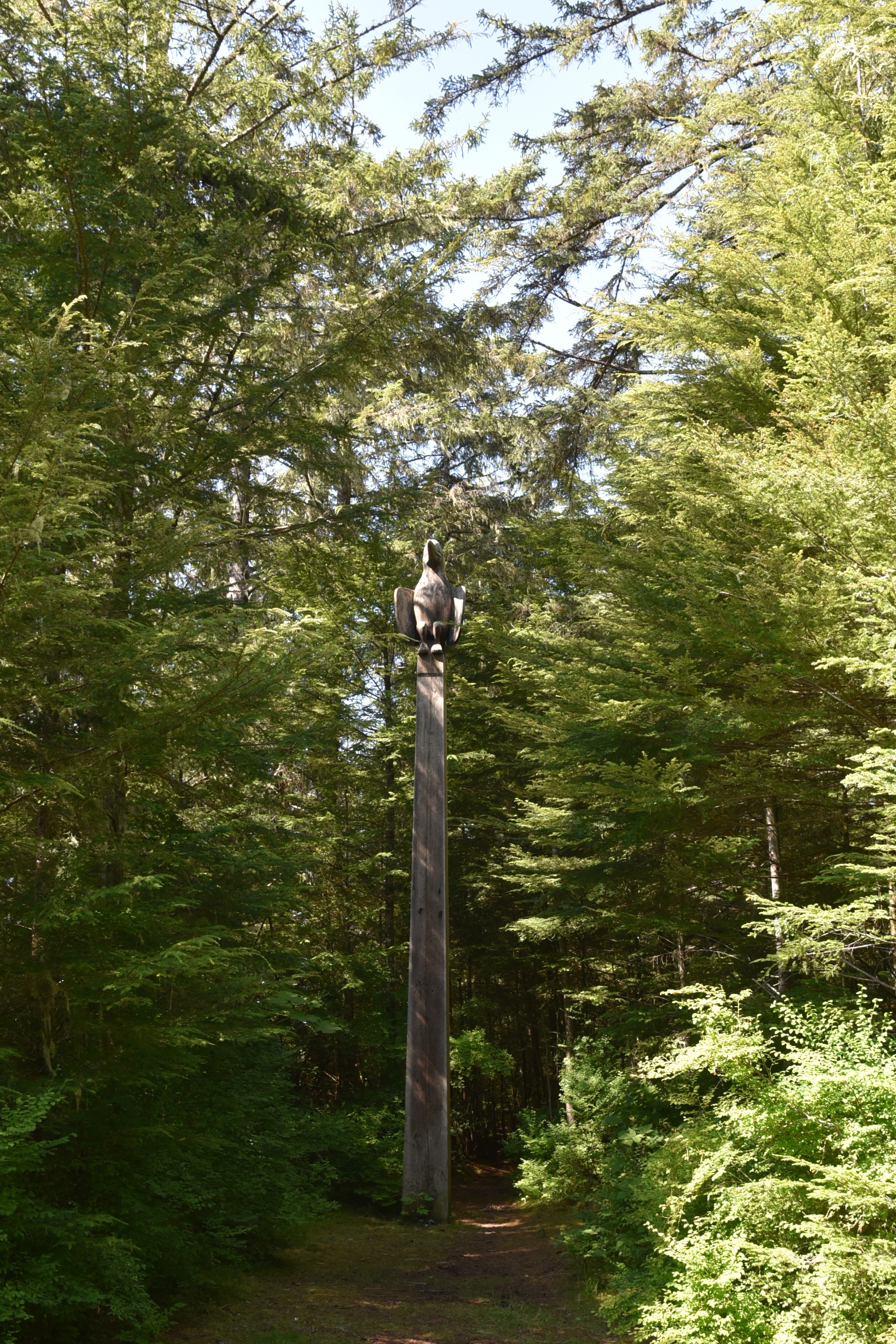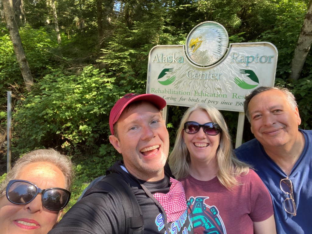 There we saw eagles – both bald and golden, owls, hawks, and ravens. Most eagles were there for rehab due to injuries typically sustained due to human interference (whether directly or indirectly with manmade obstacles, like powerlines). There were four permanent resident eagles that had injuries preventing them from release, like wing damage that would not heal. It was interesting to read up on them and hear them chatter with each other. We hiked a small trail there where it was likely a large river otter that crossed the trail in front of Matt giving quite the momentary scare! At least it wasn’t a bear!