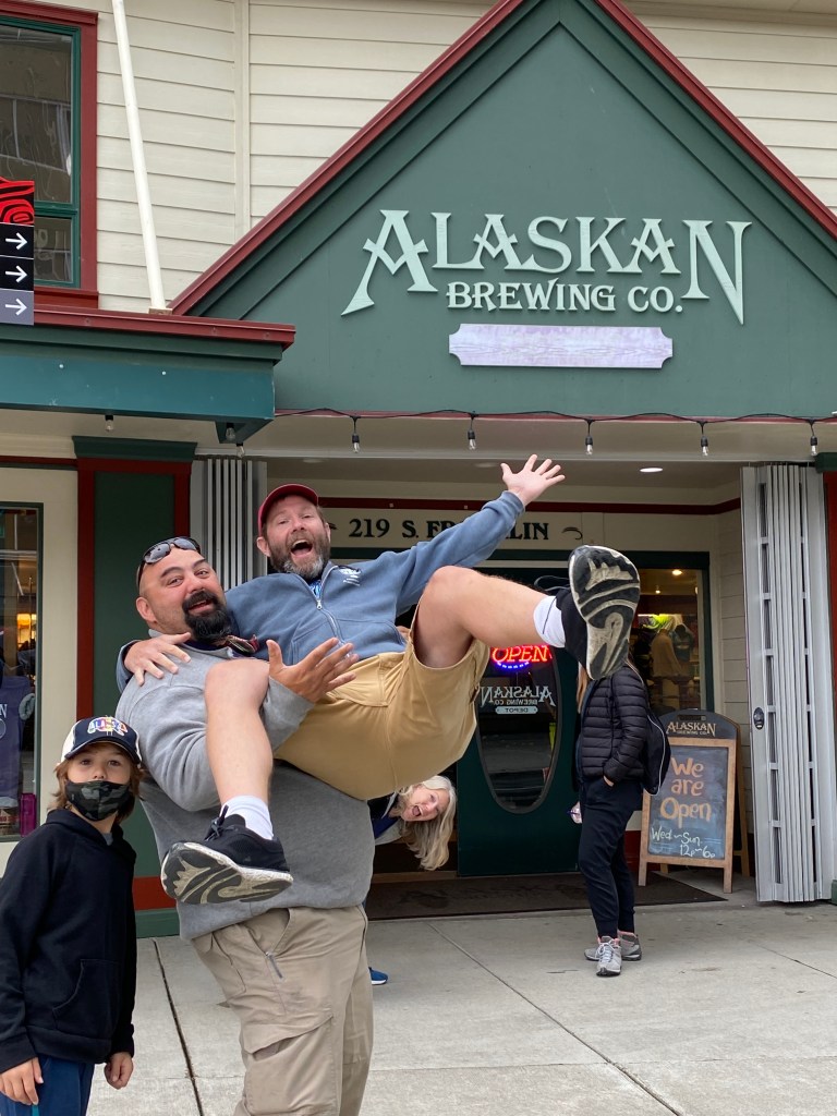 After all of this excitement, we were ready for some food. Thankfully the Toad Taxi driver set up a pick-up time from the bear observatory and took us back to Sitka. We ate at Beak Restaurant, which turned out excellent. At first, all four of us were perhaps a bit skeptical of the menu but we all enjoyed our meals and even ordered all four desserts on the menu! (Oh the beer travesty! –>)