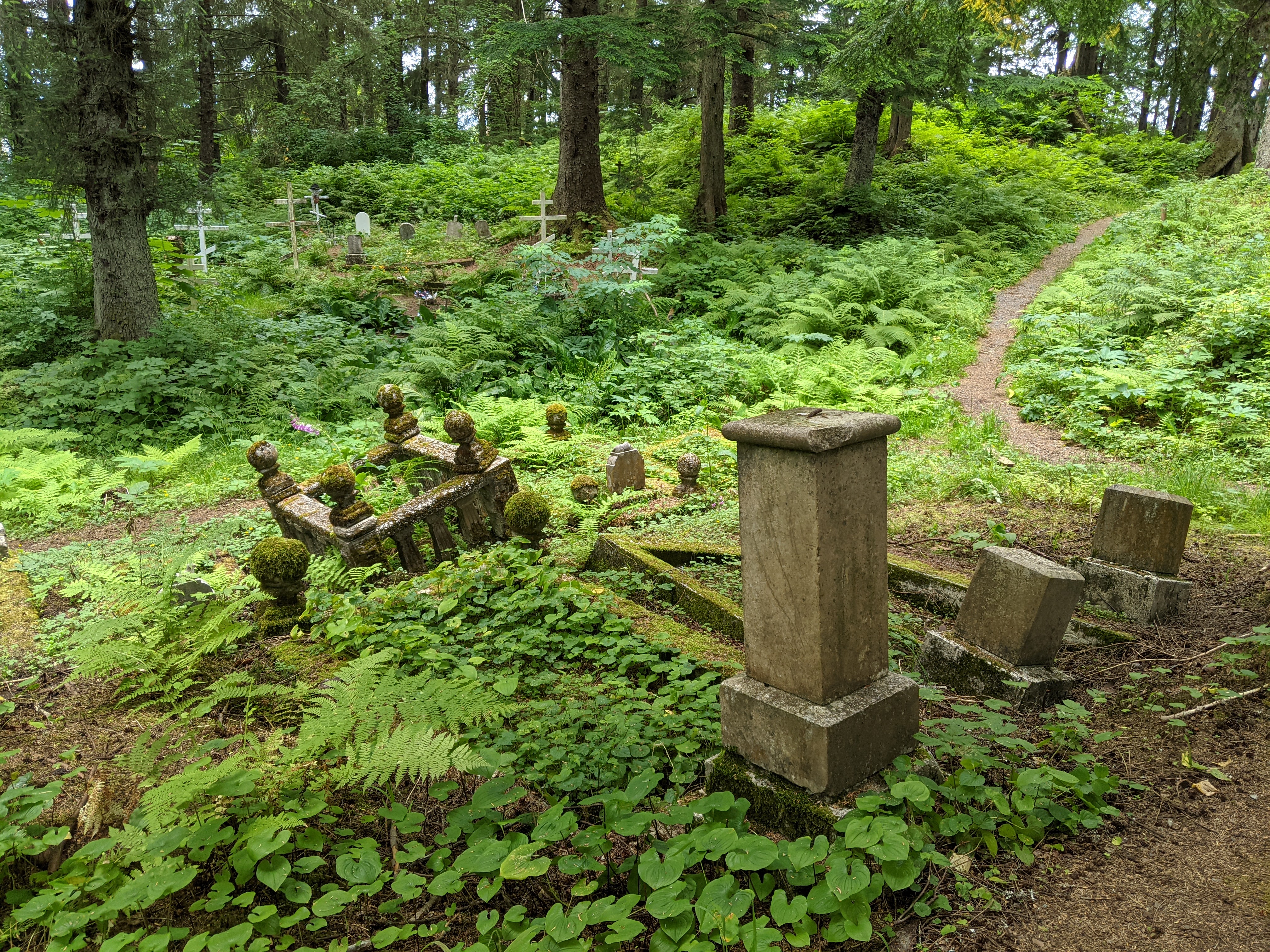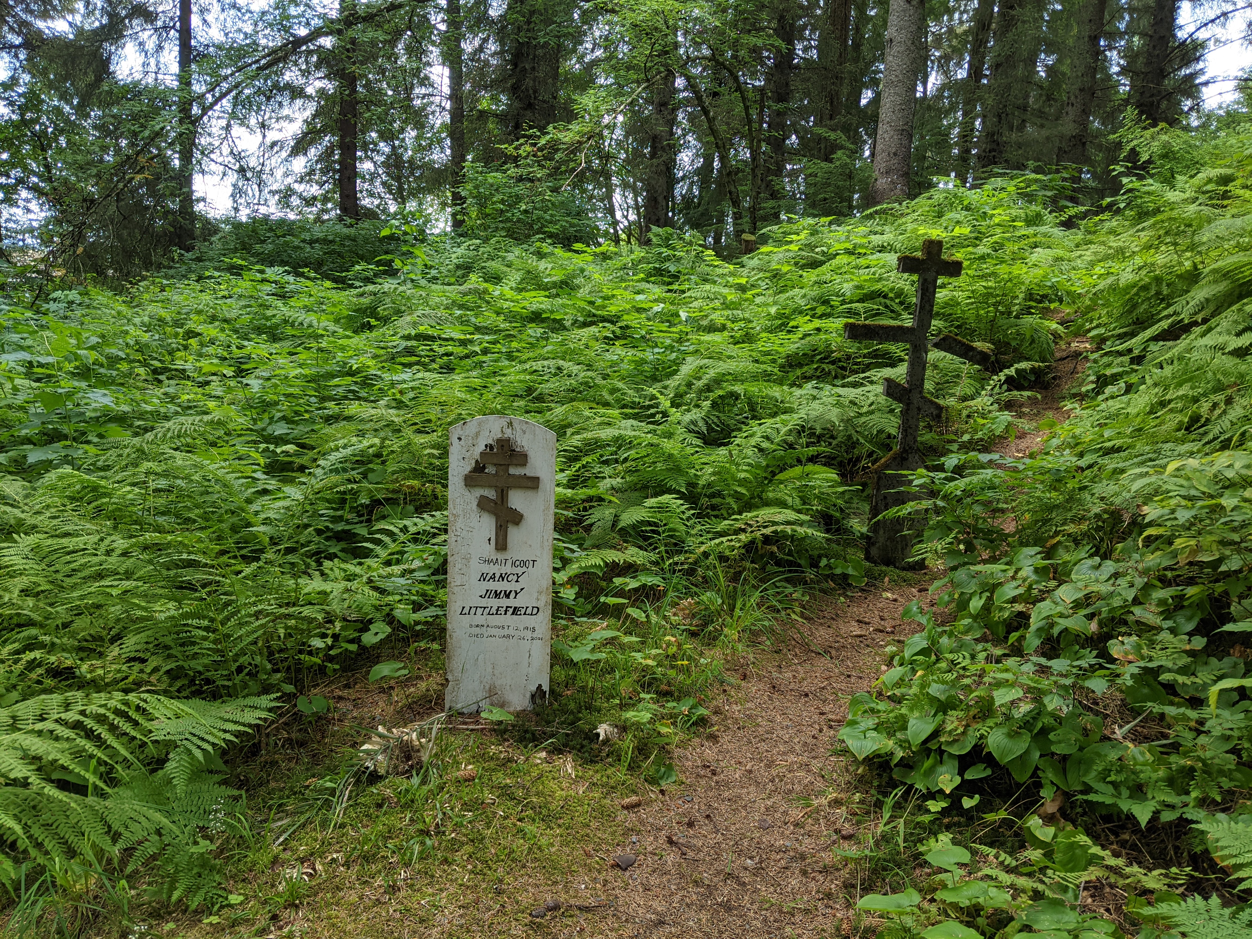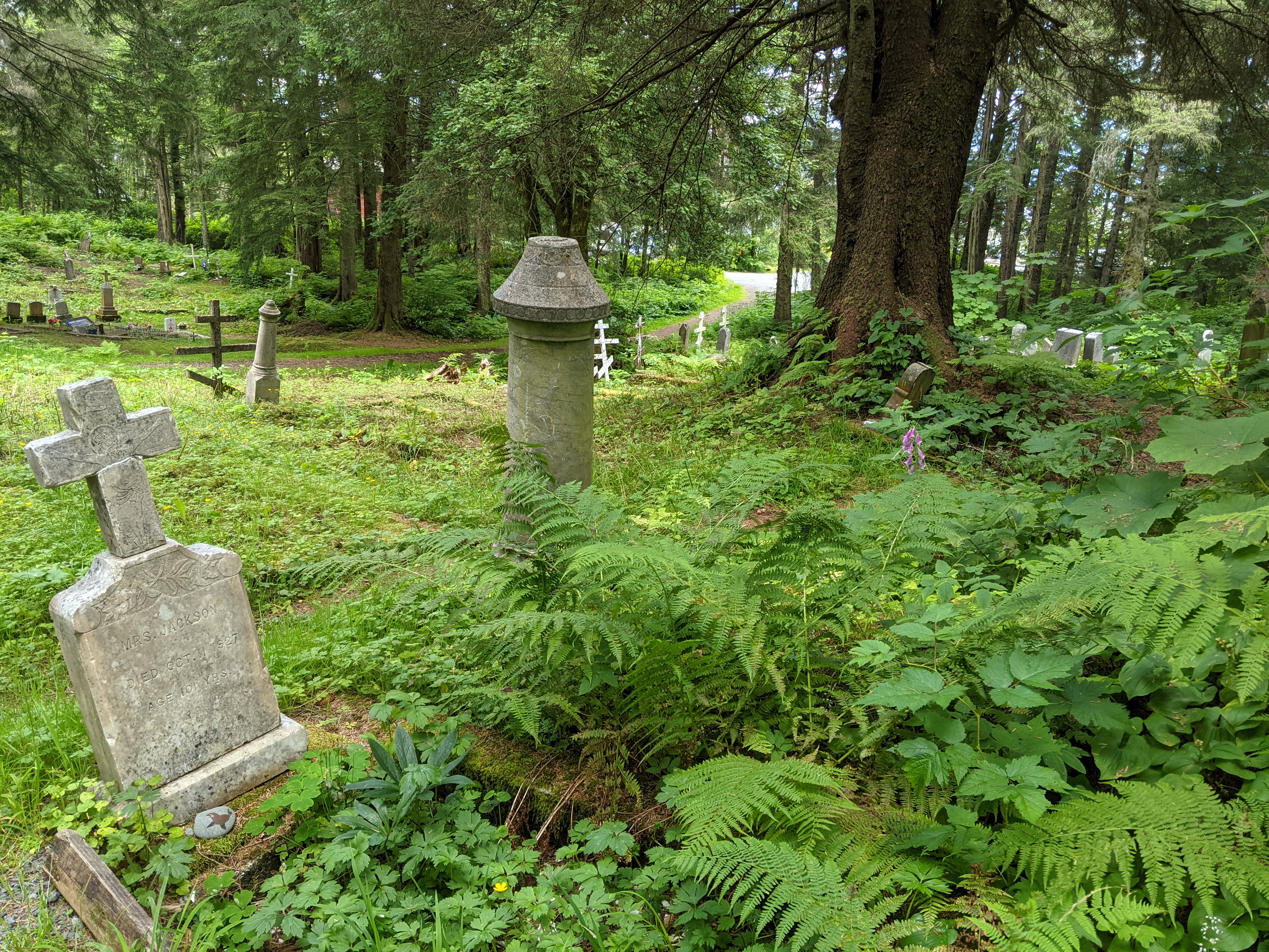 Today, Matt tackled some boat projects and Tonia tagged along with Steve and Barbara on an errand and then they hit up Old Harbor Books and Back Door Café for a bit of lunch. The café was in the back of the bookstore and also had a door out the back to the alley side of the building. Steve and Barbara headed back to their boat so Tonia toured the Russian Bishop’s House for a bit of local history and then walked around Sitka and visited the old Russian Cemetery. The cemetery was pretty dilapidated with many headstones and markers dating back over a century, though there were some new markers within the last decade or so.