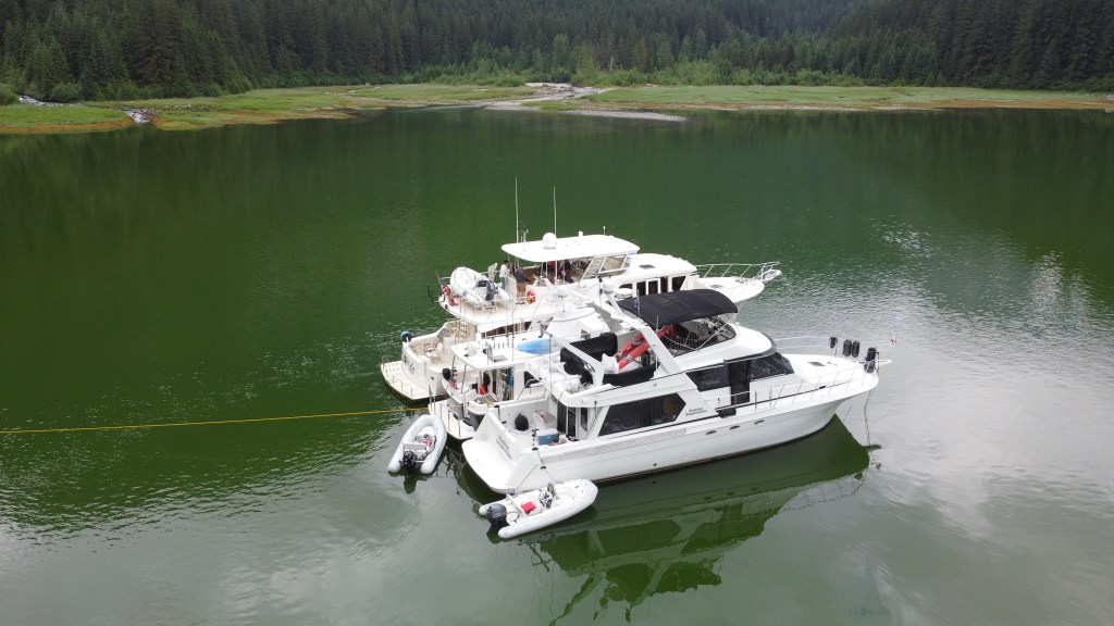 Todayβs float plan included heading towards the Anan Wildlife Observatory to see some bears. Since the anchorage there is tight, we decided to anchor in Fools Inlet. It is just across the Bradfield Canal from the observatory and will be a quick dinghy ride over tomorrow.