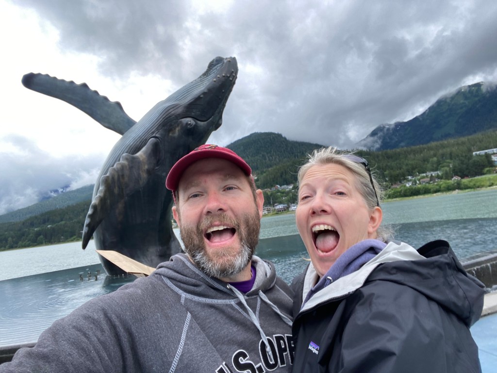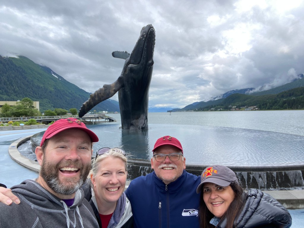 The next day we spent the morning reprovisioning and then in the afternoon took the sky tram up Mount Roberts to take in the view of Juneau and more. Norma treated us to beverages and fish and chips while we took in the sights. We checked out the large gift shop and visitor center. On the walk back, we took a pic with the Juneau sign thanks to some friendly Wisconsinites (tell your folks I says hi!) and walked the boardwalk to Roma upon a recommendation for some tasty pizza and lasagna.