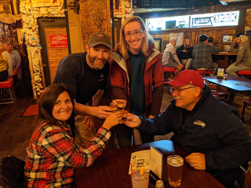 We found a slip in Harris Harbor near downtown, got settled in, and then headed to town. We found Norma & Jeff on the way to the first stop, Red Dog Saloon, for duck fart shots and some quick bites.