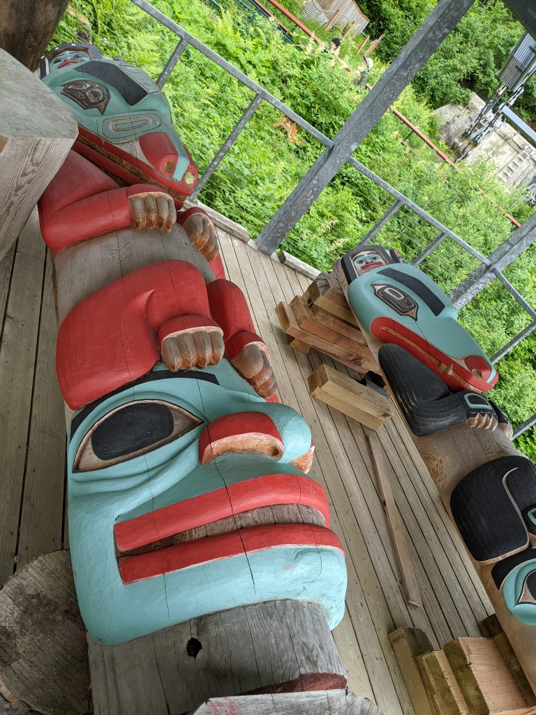 Next we ambled through town and settled at Stikine Inn for drinks and apps. We had great outdoor seating overlooking the water to watch kids jumping off the pier. After that, Liz, Barbara and Tonia walked to the Petroglyph Beach Park and then we settled in for a movie and watching fireworks from the boat. The start time was slated for 11pm but the real show didnβt start until 11:40 β it was good but a late night!