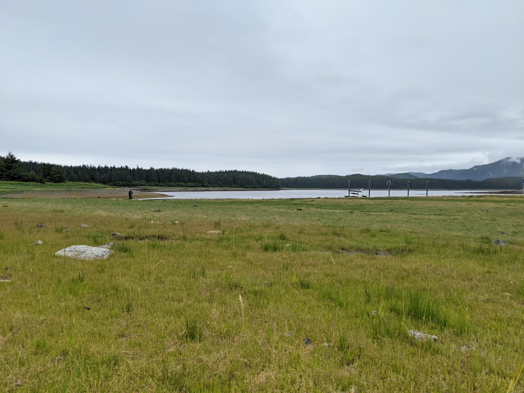 The tides looked favorable for launching and we headed to the Anan Wildlife Observatory around noonish. The guide info said to enter the lagoon β bad idea! The tide was such that we got in but quickly realized the tide was out fast. We decided to abandon the lagoon though not before the current launched us in the wrong direction getting us stuck on rocks! Christian and Tonia hopped out to lighten the load and help maneuver. Matt also got out and realized his Alaskan sneakers (aka Xtratuf boots) were not quite high enough. We did manage to get free and Tonia and Christian rock climbed up to the trail, which was thankfully not too far overhead.