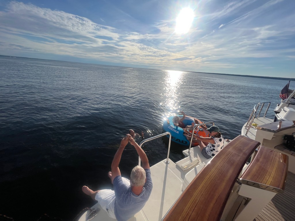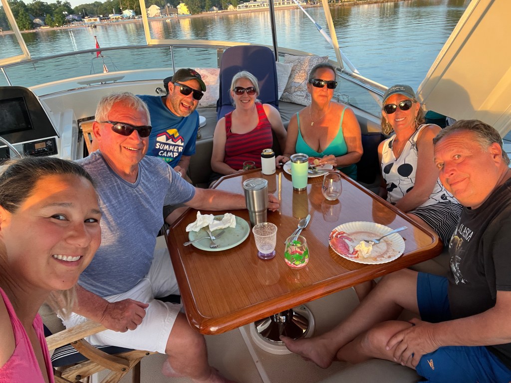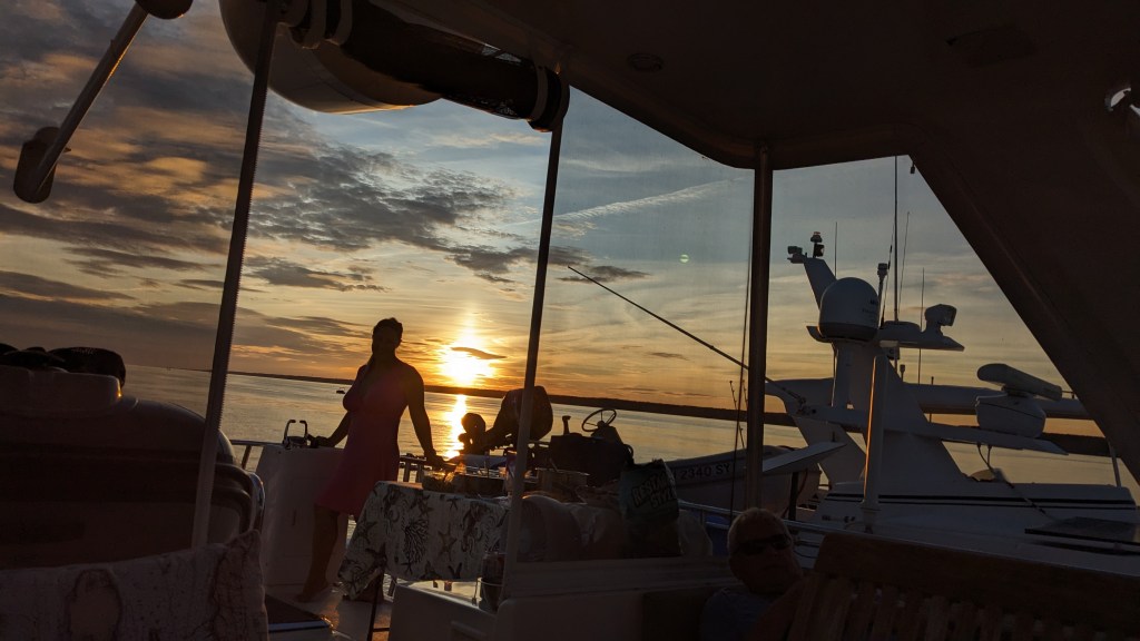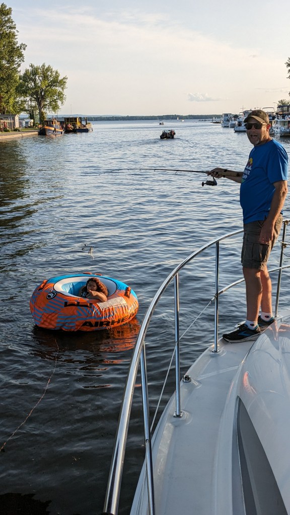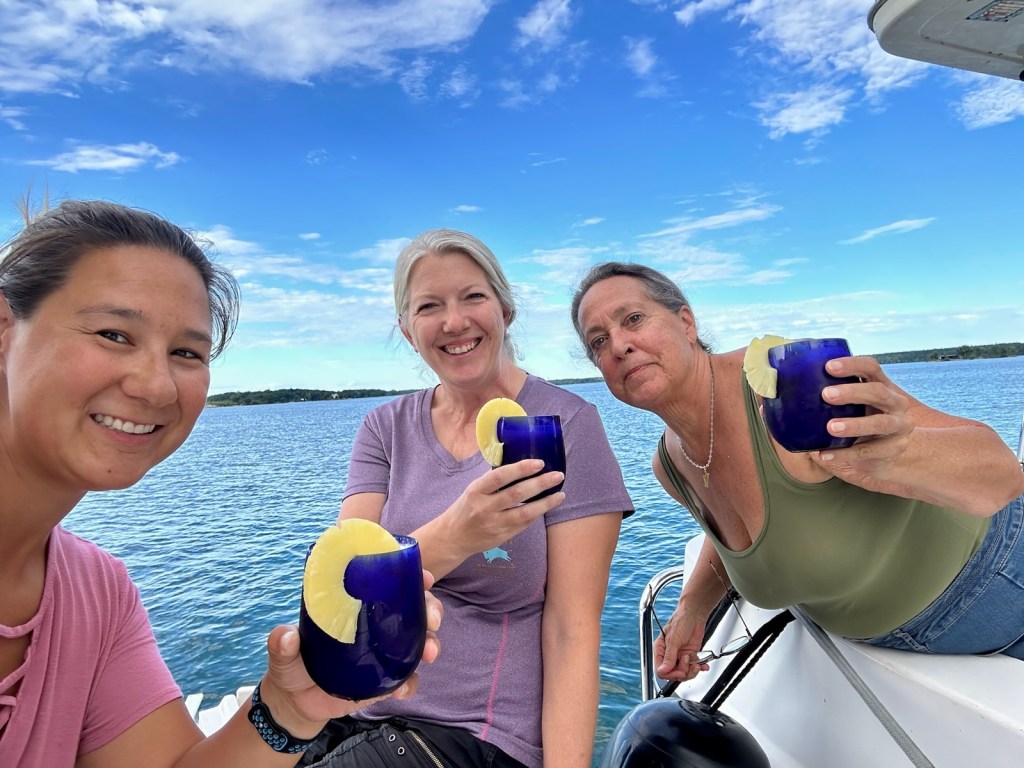 We had some last fun at anchorage before we left, with the boys getting some fishing in and sparkly fruity drinks courtesy of Barbara.
