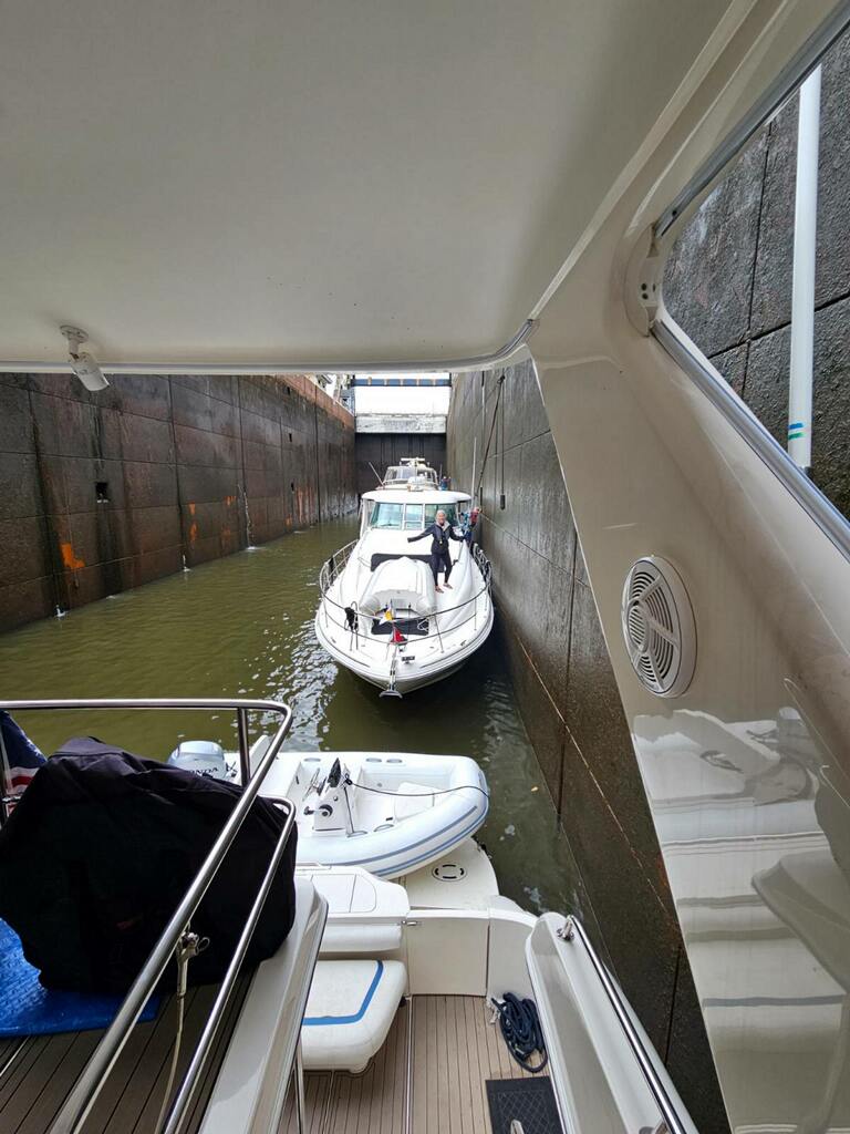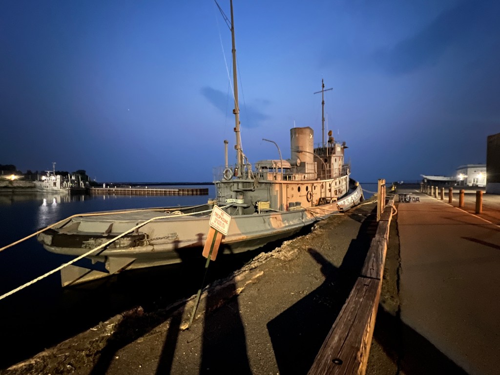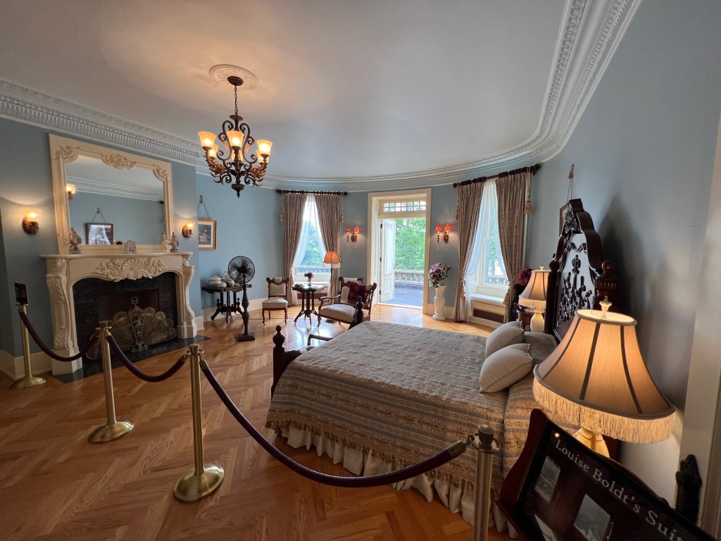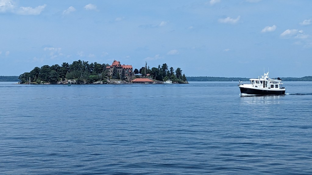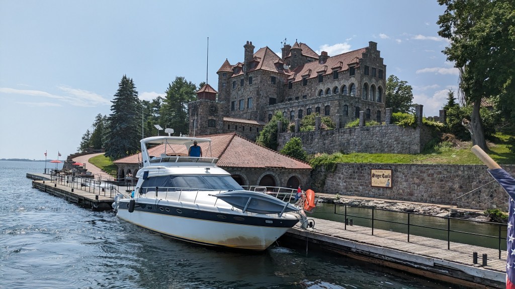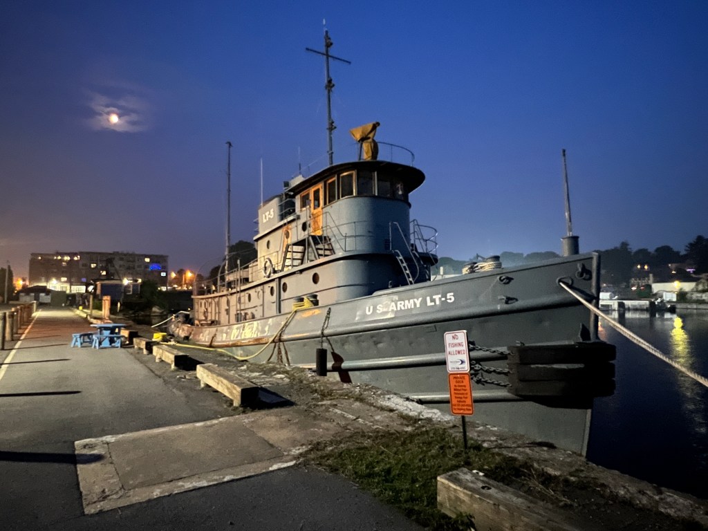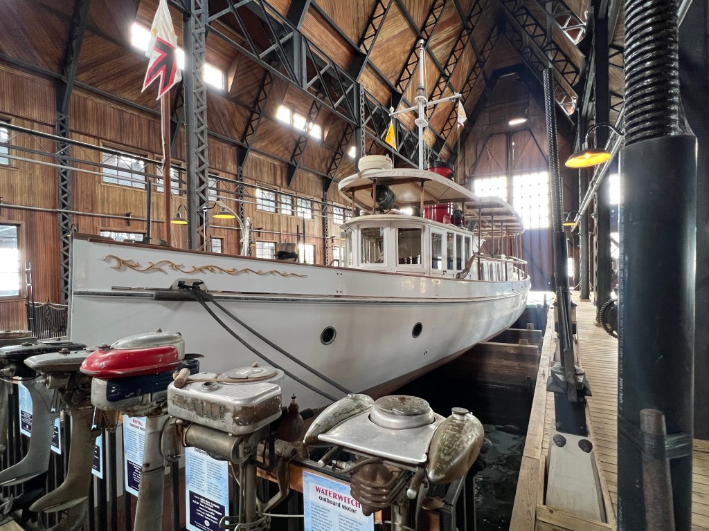 We got a nice sunset walk in through town all the way to the Antique Boat Museum, which has the Boldt family’s 106′ houseboat La Duchesse. It was built in 1903, when Mrs. Boldt was still alive, and was donated by the last owners to the museum.