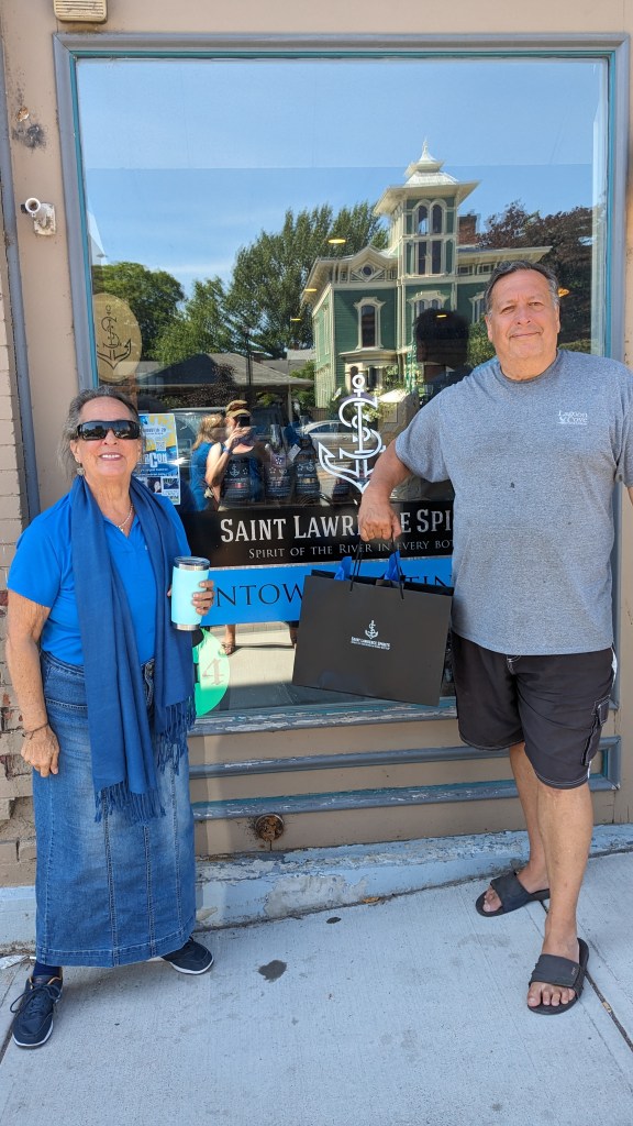 Clayton was a busy little town that had many cool things to see. When we arrived, the Saga crew met up with Mayli’s parents to spend time with them so Steve, Barbara, and us set out to get a bite to eat and ended up sidetracked at the Saint Lawrence Spirits Tasting room, which Steve really enjoyed, so Barbara bought him a beverage souvenir.
