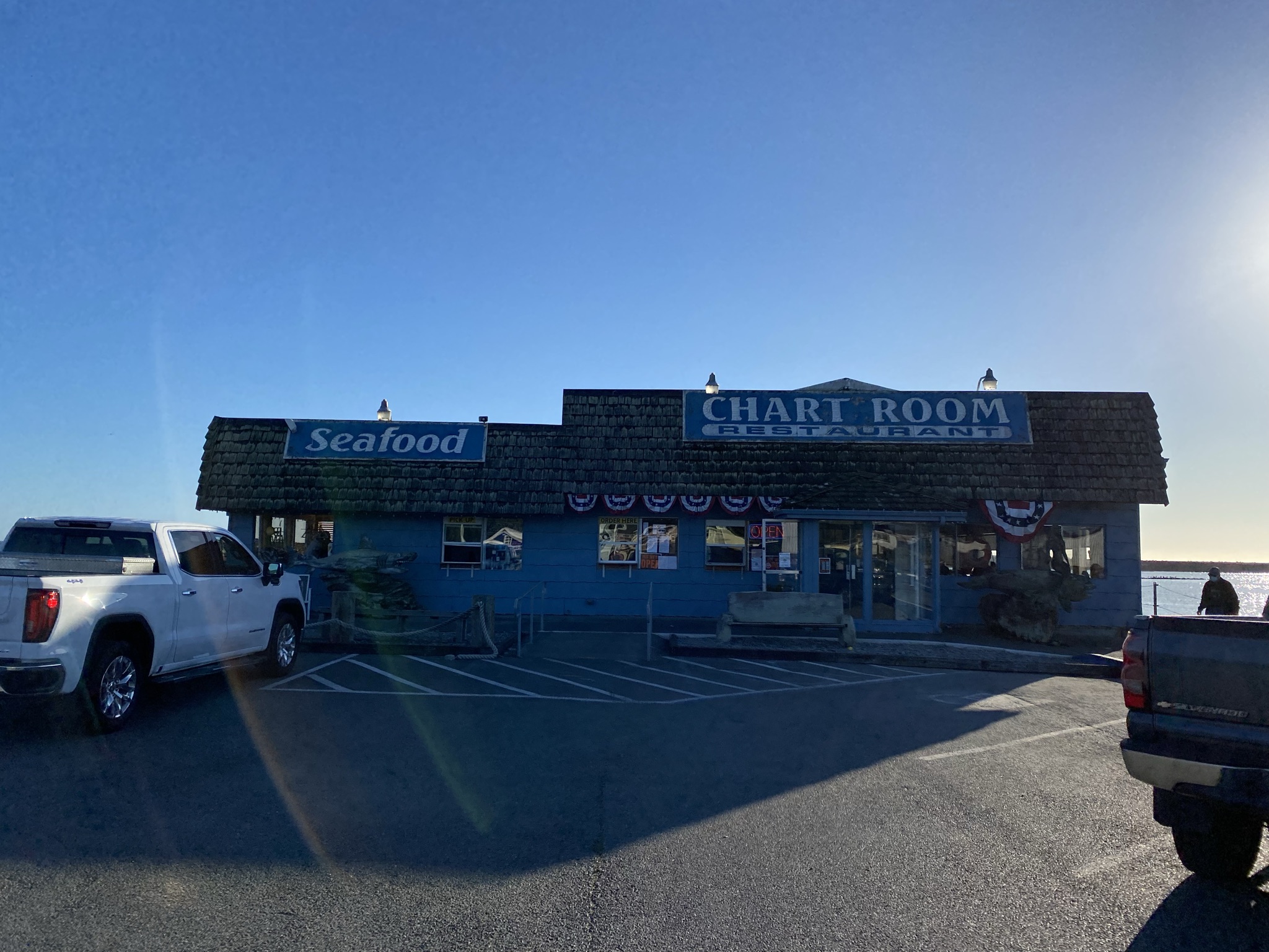 The rest of the trip down was relatively calm and we arrived in Crescent City shortly after 2 PM. We met up with Gary and Noelle from S/V Illimite and they said we should join them for dinner. After a nice relaxing afternoon, we headed out to the local restaurant the Chart Room. More shrimp cocktail for me!