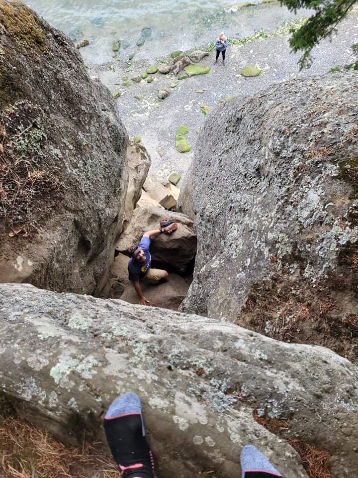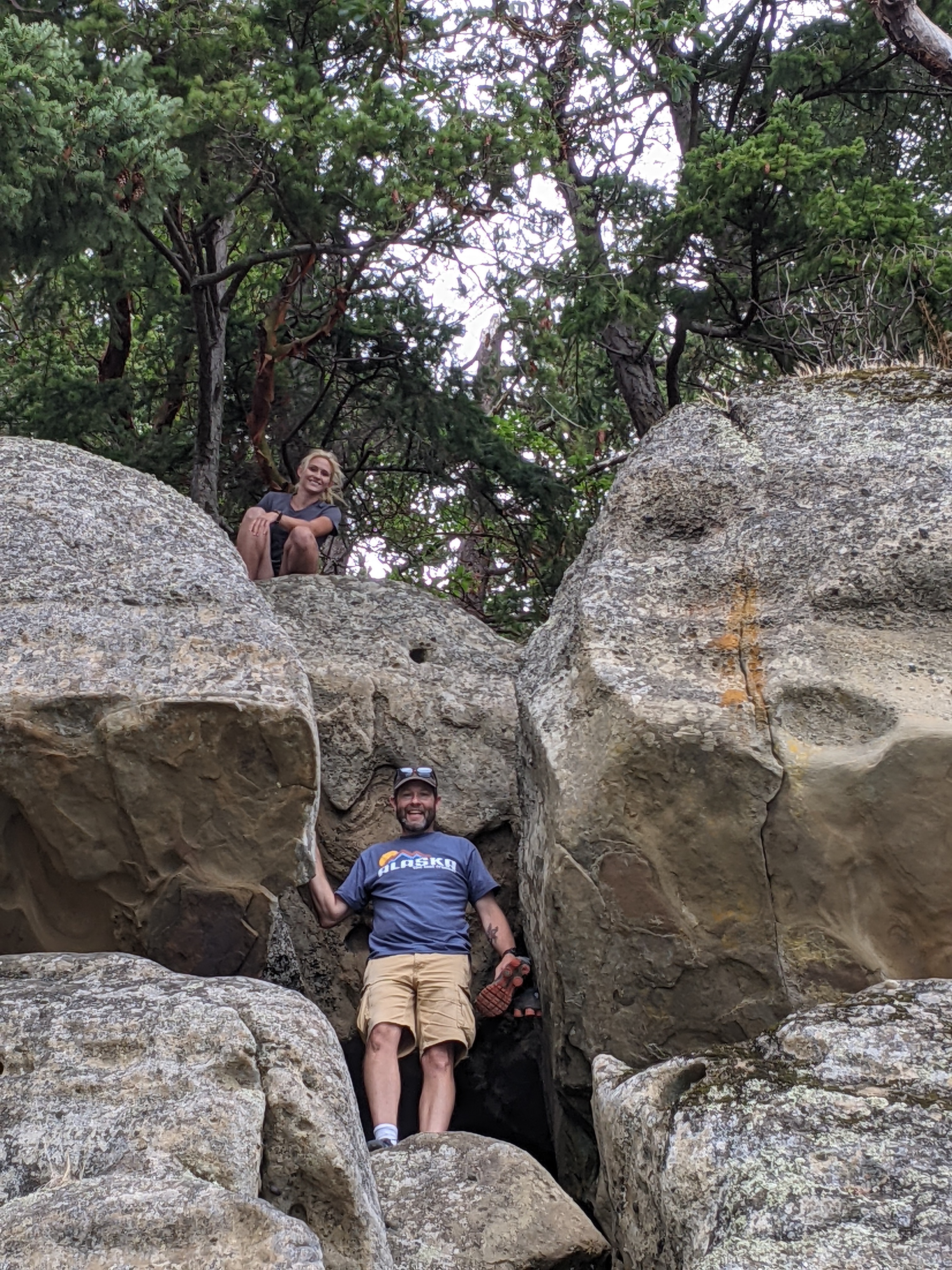 The previous day we promised Mayli & Boris’ son Michael that we would hike with him to explore the China Caves. This is something we had done with him a few years ago and it’s still his favorite thing in the San Juan Islands. We set of from Fossil Bay and hiked over to Shallow Bay. Once there, we traversed the shore rocks to the China Caves because it was low tide. We had a great time climbing around and squeezing thru all the areas.